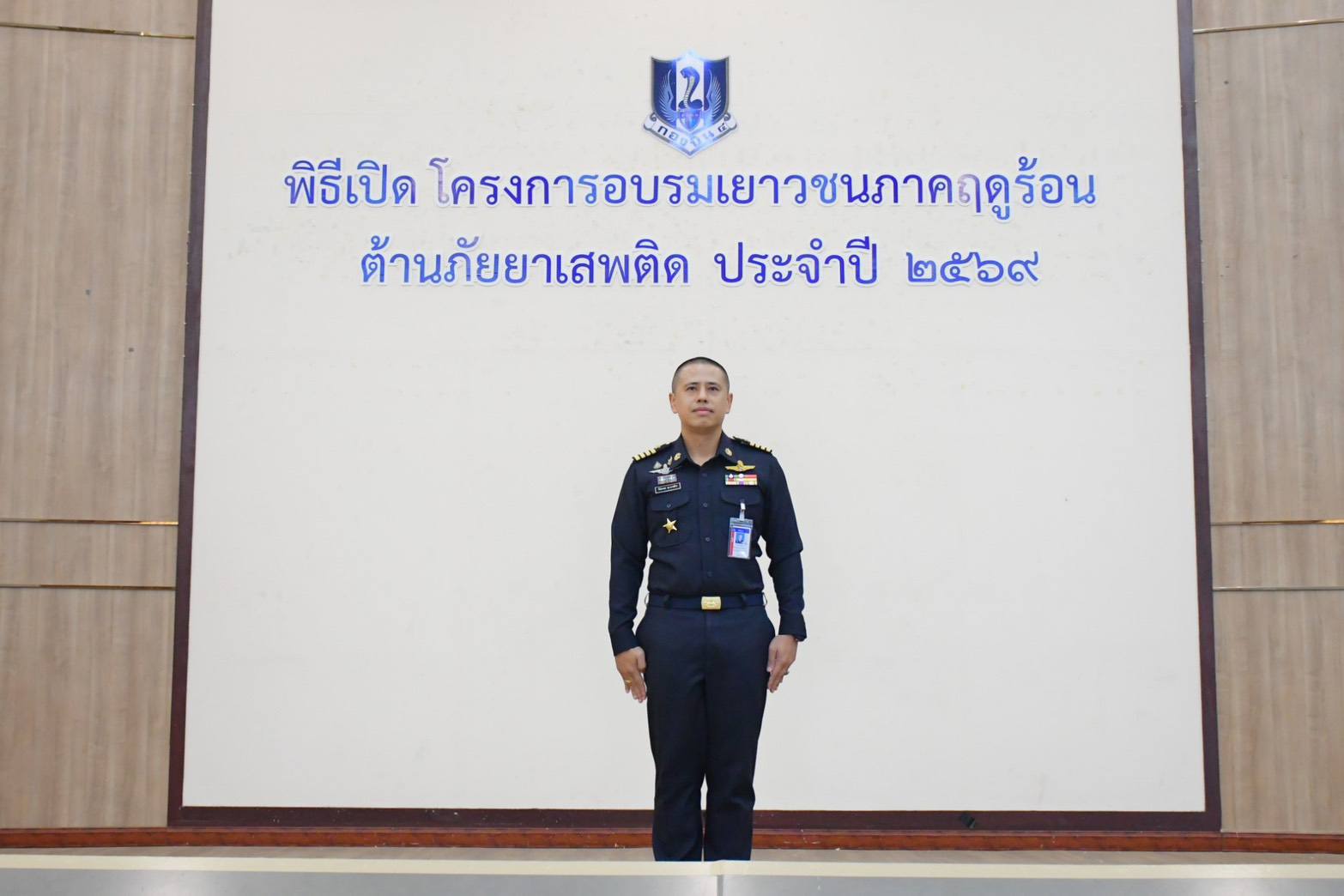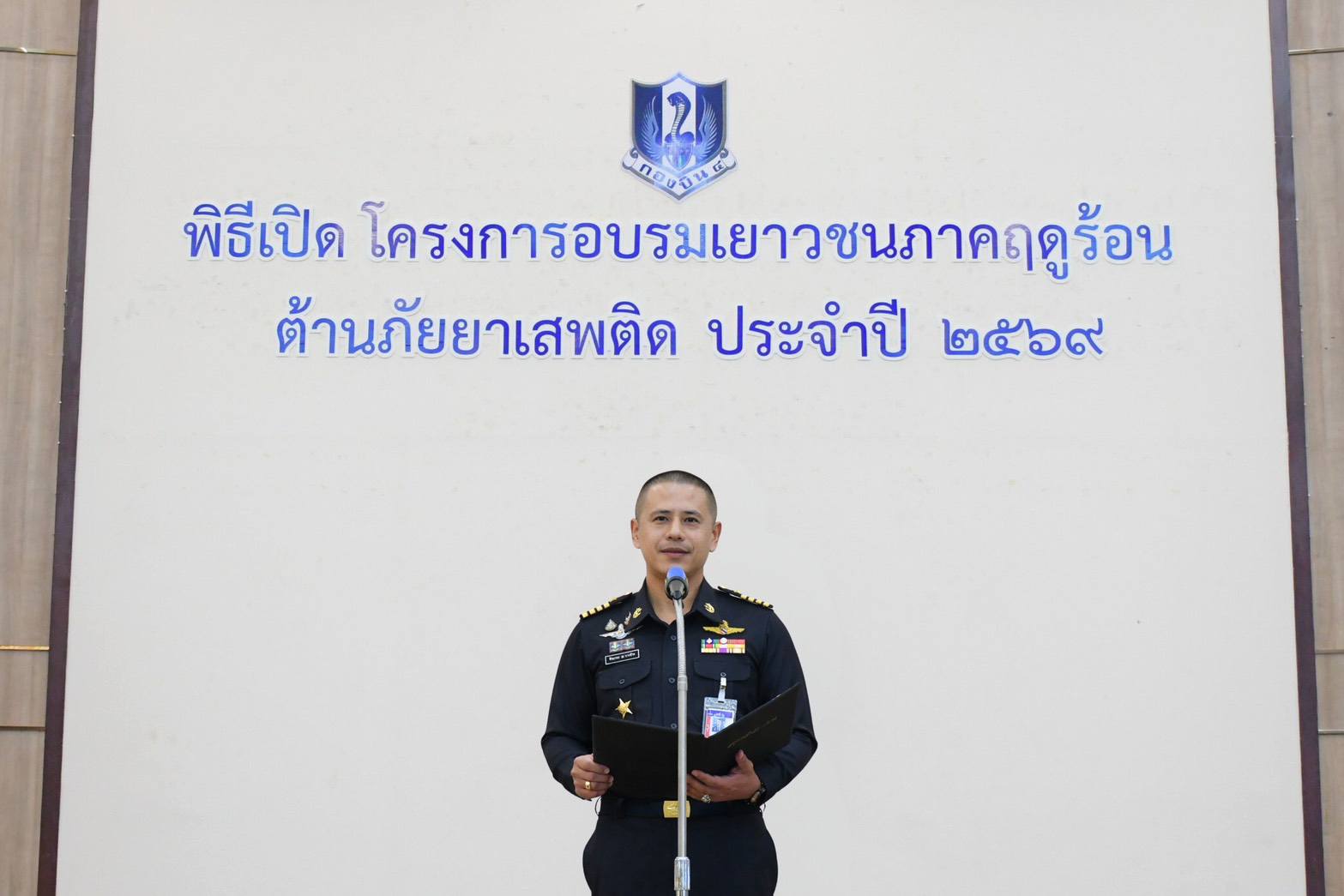 นาวาอากาศเอก วรพล ดิษฐ์แก้ว ผู้บังคับการกองบิน ๔ มอบหมายให้ นาวาอากาศเอก ธีรนารถ ณ บางช้าง รองผู้บังคับการกองบิน ๔ เป็นประธานในพิธีเปิดโครงการอบรมเยาวชนภาคฤดูร้อนต้านภัยยาเสพติด กองบิน ๔ ประจำปี ๒๕๖๙ ณ อาคารรณนภา กองบิน ๔ อำเภอตาคลี จังหวัดนครสวรรค์ เมื่อวันที่ ๑๒ มีนาคม ๒๕๖๙