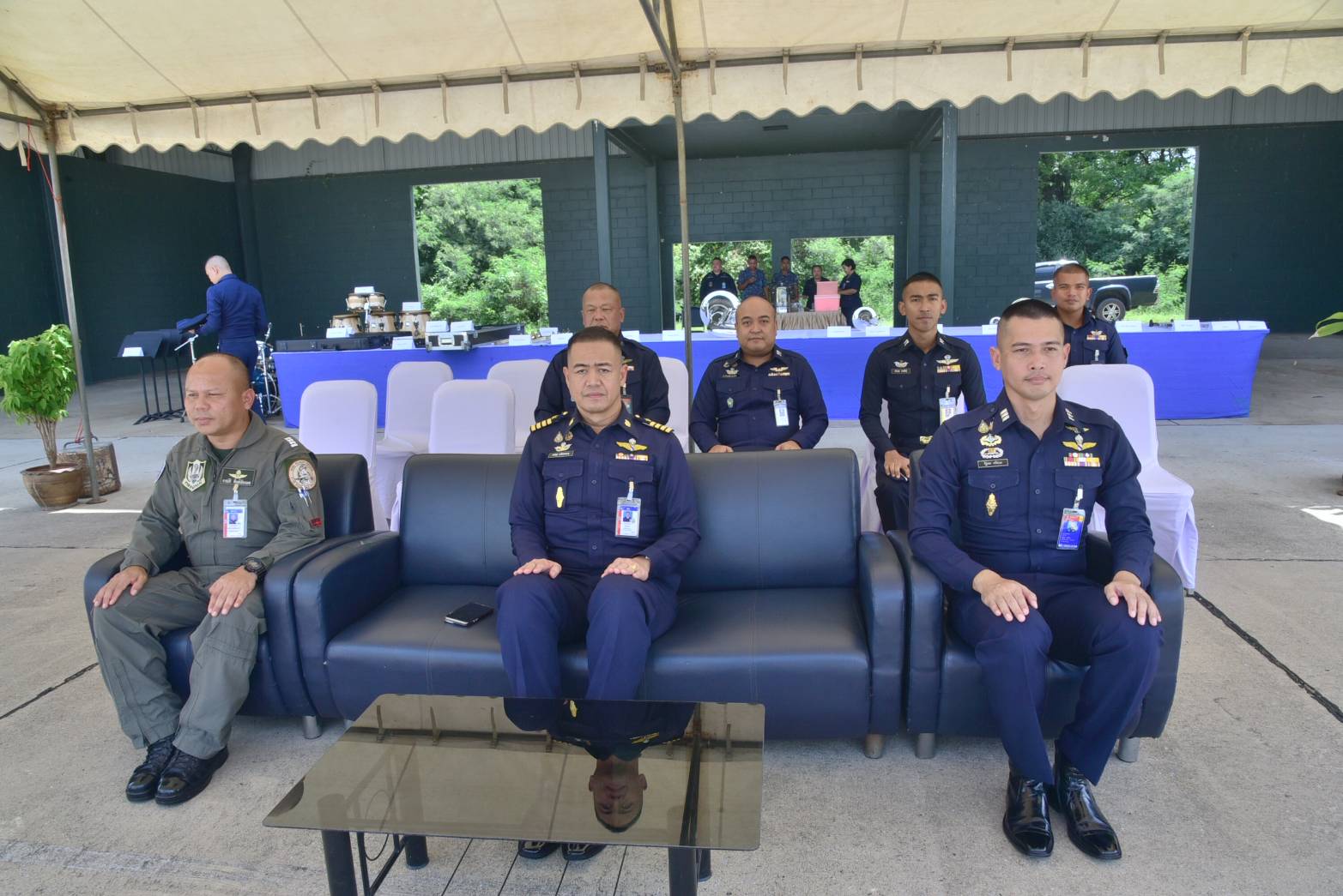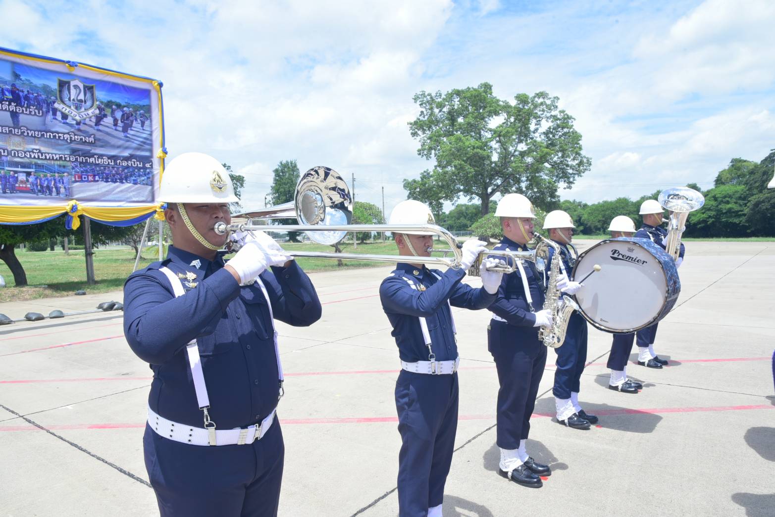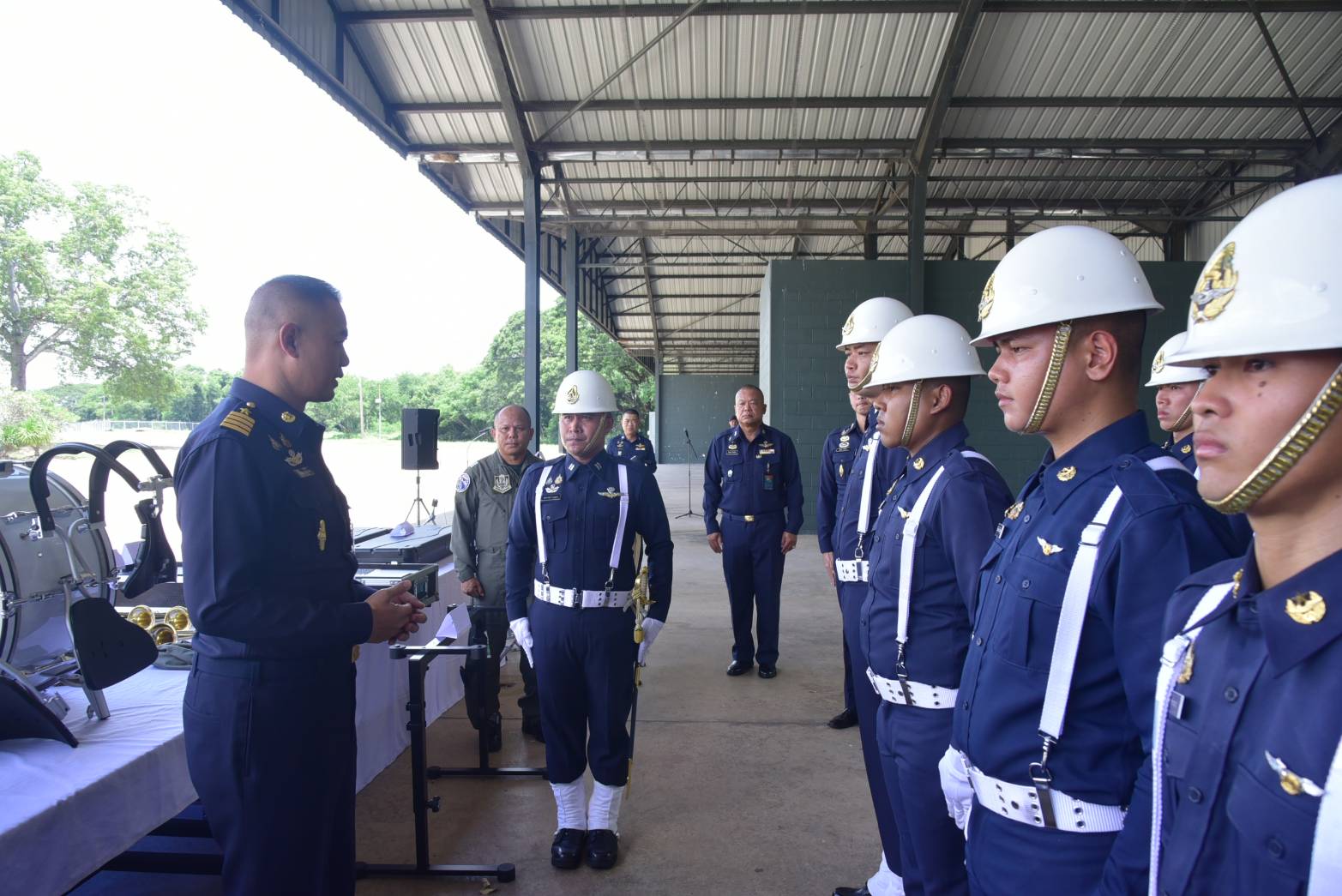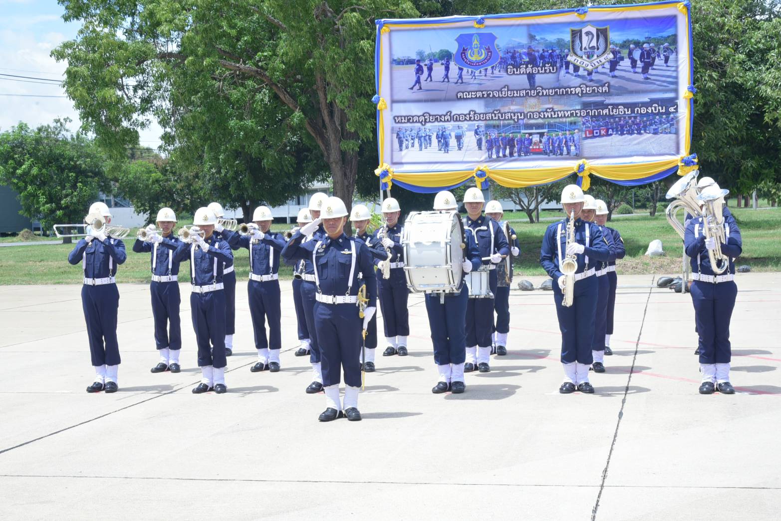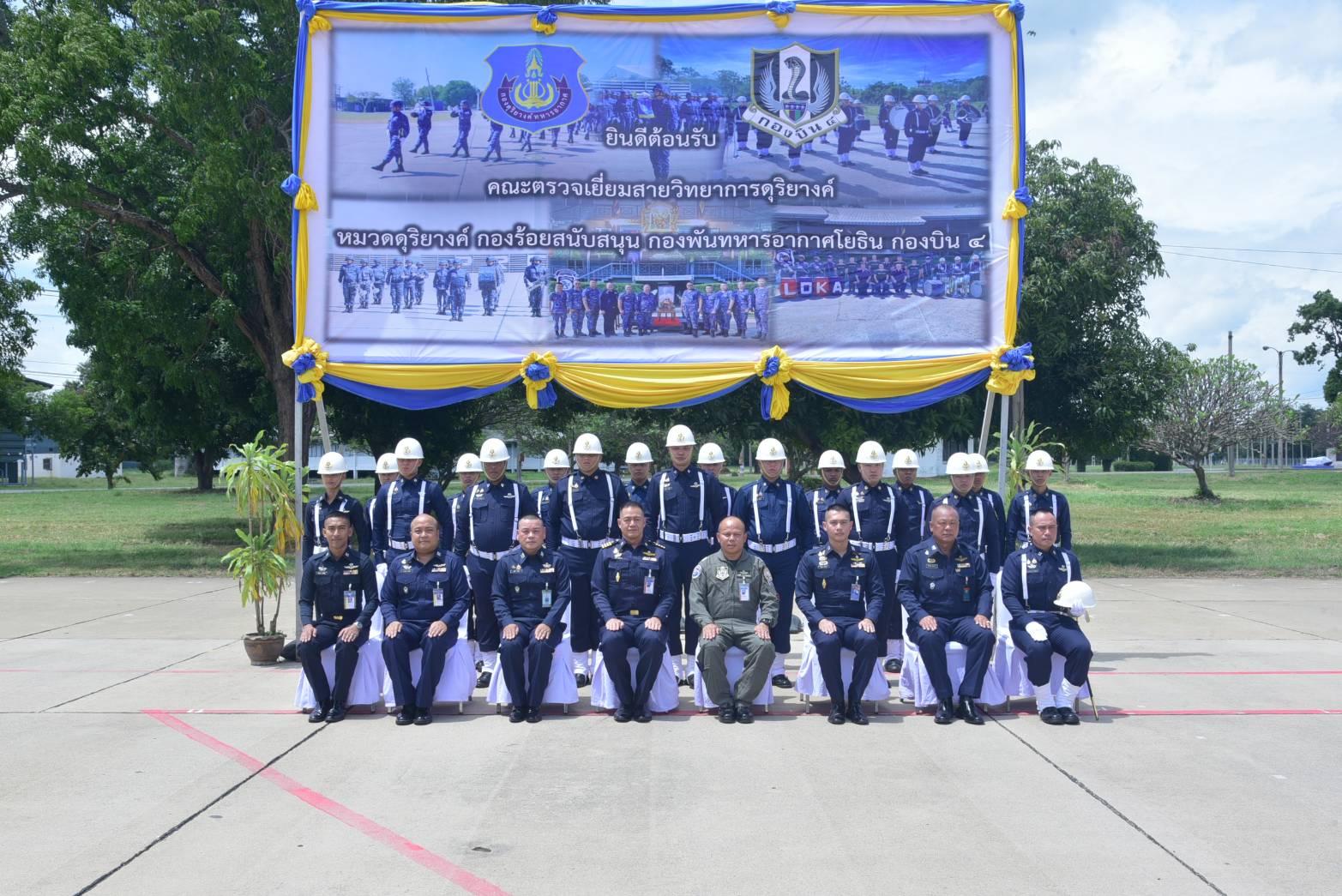 นาวาอากาศเอก อาณัติ สิงห์เมืองพล เสนาธิการกองบิน ๔ ให้การต้อนรับ นาวาอากาศเอก ธนศรุต ธงไชยธนเกตุ ผู้บังคับการกองดุริยางค์ทหารอากาศ หน่วยบัญชาการอากาศโยธิน และคณะ ในโอกาสเดินทางมาตรวจเยี่ยมสายวิทยาการดุริยางค์ ประจำปี ๒๕๖๘ ณ กองพันทหารอากาศโยธิน กองบิน ๔ อำเภอตาคลี จังหวัดนครสวรรค์ เมื่อวันที่ ๒๔ กันยายน ๒๕๖๘