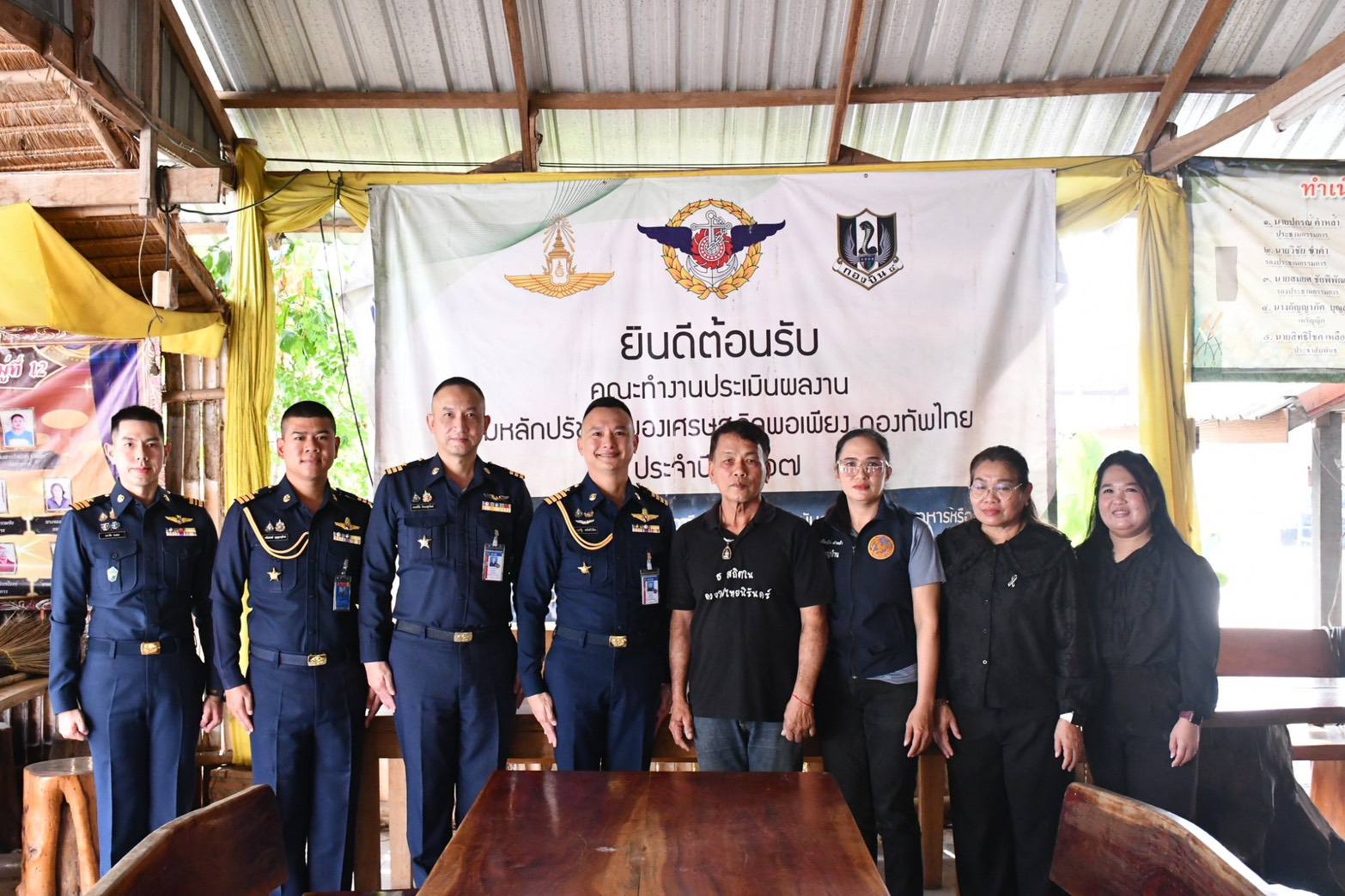 นาวาอากาศเอก วรพล ดิษฐ์แก้ว ผู้บังคับการกองบิน ๔ มอบหมายให้ นาวาอากาศโท คณิสสรณ์ บุญญานุรักษ์ หัวหน้าแผนกกิจการพลเรือน กองบังคับการกองบิน ๔ ให้การต้อนรับ นาวาอากาศเอก บุญธรัฐ พยัคฆ์วิเชียร รองผู้อำนวยการกองกิจการพลเรือน สำนักกิจการพลเรือนและประชาสัมพันธ์ กรมกิจการพลเรือนทหารอากาศ และคณะ ในโอกาสเดินทางมาให้คำแนะนำการส่งผลงานของศูนย์การเรียนรู้ตามหลักปรัชญาของเศรษฐกิจพอเพียงกองบิน ๔ อำเภอตาคลี จังหวัดนครสวรรค์ เข้าร่วมประกวดผลงานตามหลักปรัชญาของเศรษฐกิจพอเพียง ประจำปี ๒๕๖๙ เมื่อวันที่ ๒๑ มกราคม ๒๕๖๙