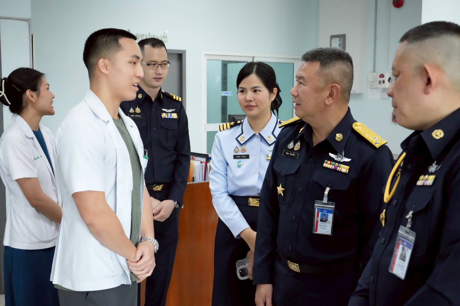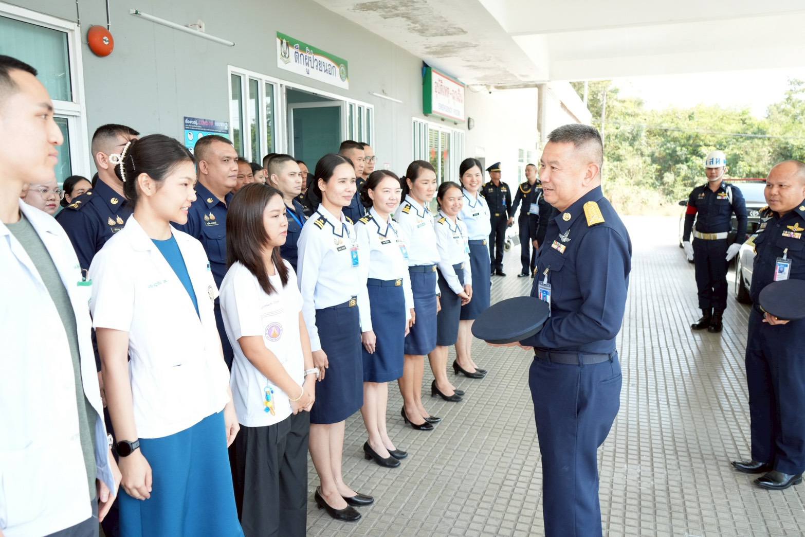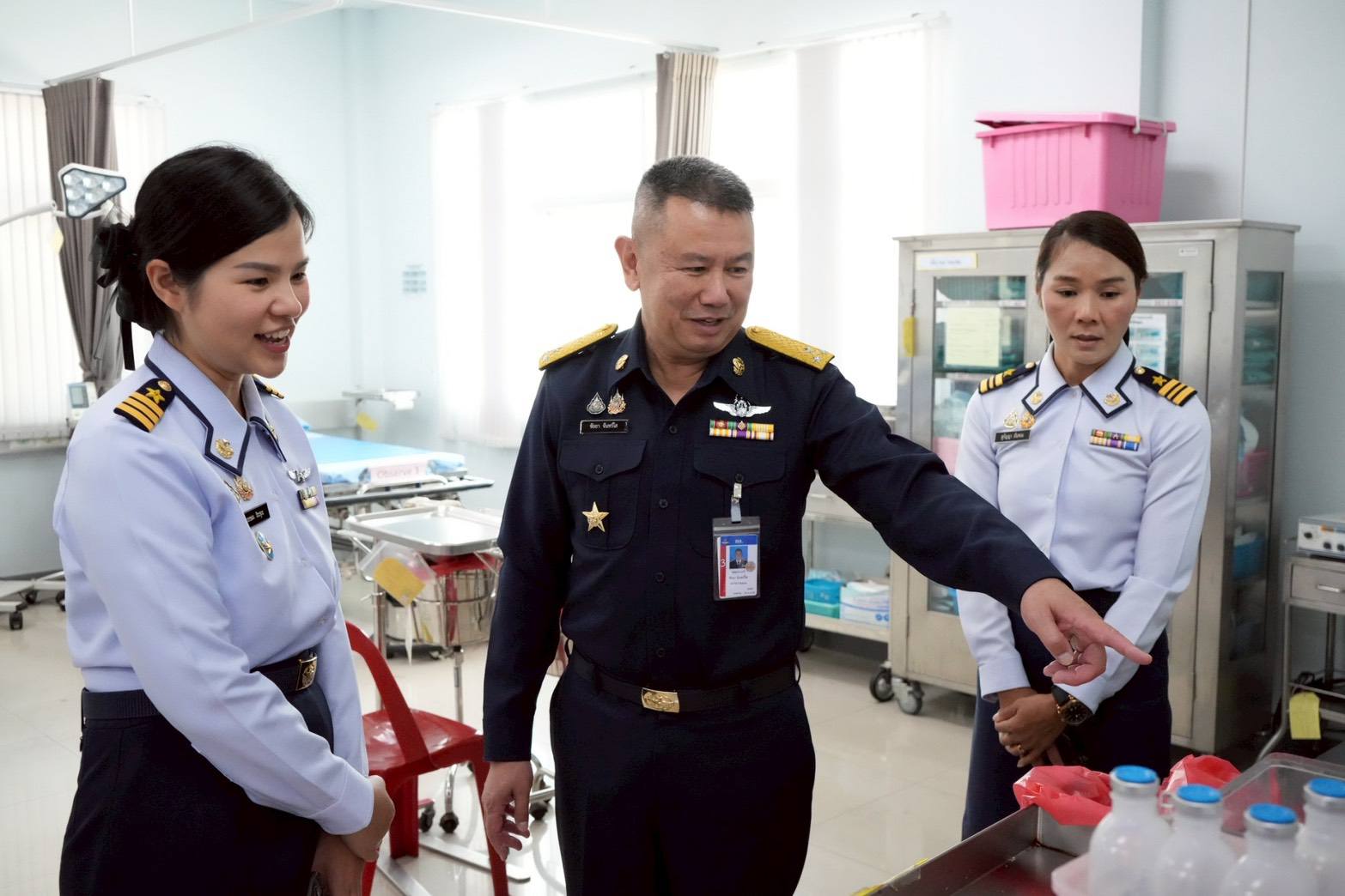 นาวาอากาศเอก วรพล ดิษฐ์แก้ว ผู้บังคับการกองบิน ๔ ให้การต้อนรับ พลอากาศโท ชัยยา จันทร์ใส เจ้ากรมแพทย์ทหารอากาศ และคณะ เนื่องในโอกาสเดินทางมาตรวจเยี่ยมสายวิทยาการแพทย์ ณ โรงพยาบาลกองบิน กองบิน ๔ อำเภอตาคลี จังหวัดนครสวรรค์ เมื่อวันที่ ๒๐ มกราคม ๒๕๖๙