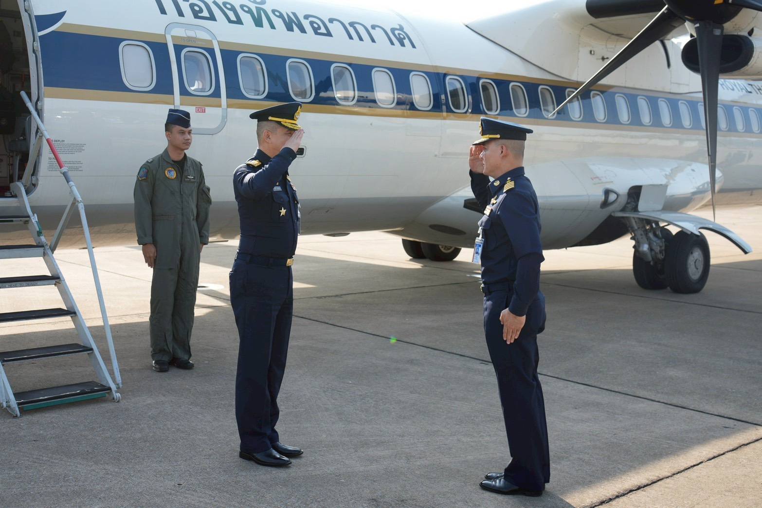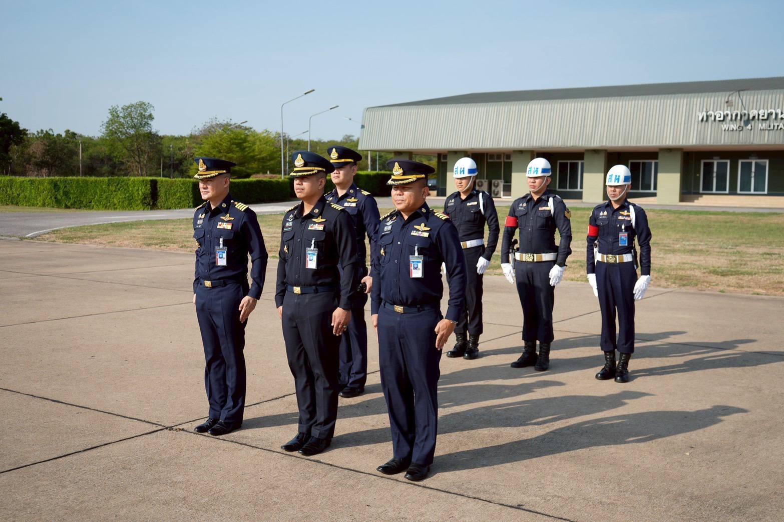 นาวาอากาศเอก วรพล ดิษฐ์แก้ว ผู้บังคับการกองบิน ๔ ให้การต้อนรับ พลอากาศโท วิโรช พยาน้อย เจ้ากรมกำลังพลทหารอากาศ และคณะ ในโอกาสเดินทางมาตรวจเยี่ยมสายวิทยาการกำลังพล ณ กองบิน ๔ อำเภอตาคลี จังหวัดนครสวรรค์ เมื่อวันที่ ๑๘ กุมภาพันธ์ ๒๕๖๙