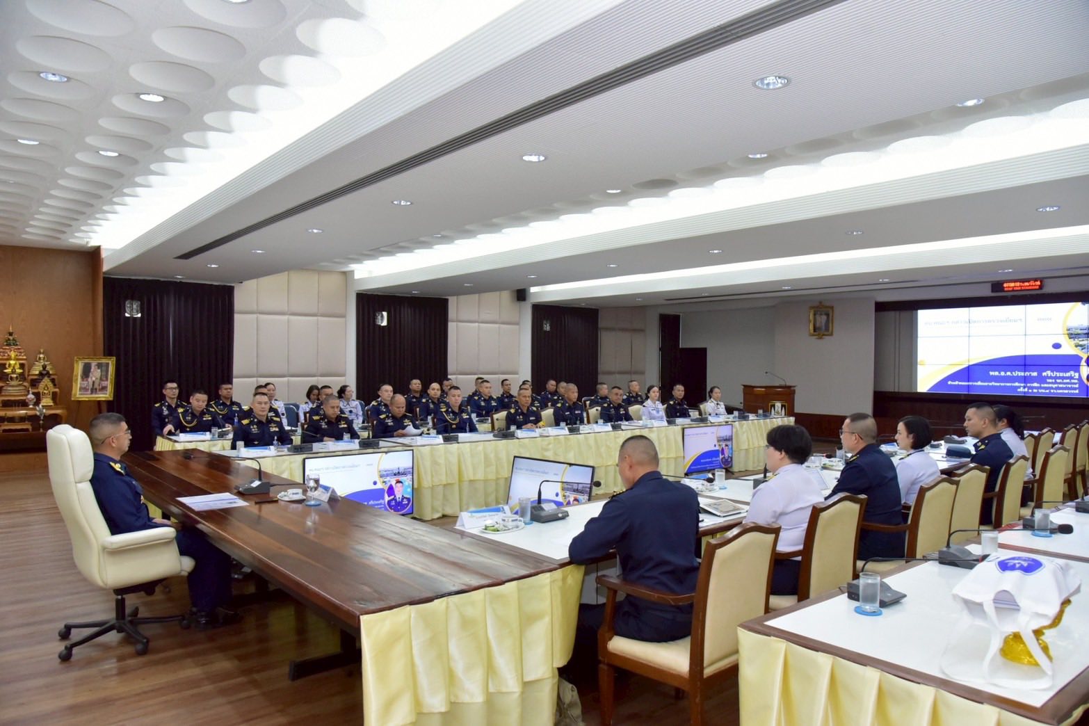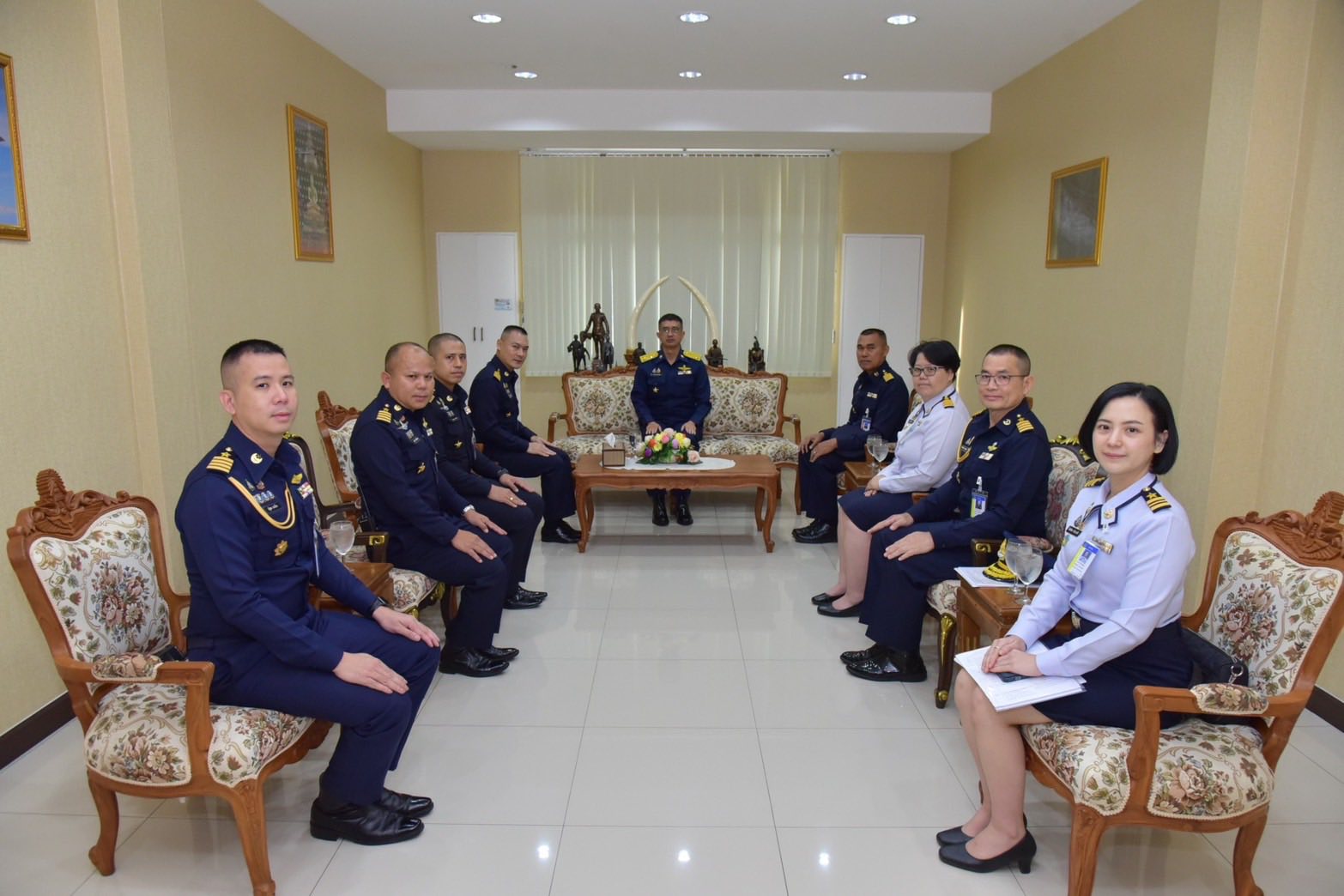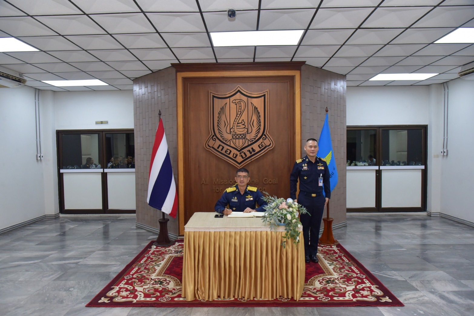 นาวาอากาศเอก วรพล ดิษฐ์แก้ว ผู้บังคับการกองบิน ๔ ให้การต้อนรับ พลอากาศตรี ประภาส ศรีประเสริฐ รองเจ้ากรมยุทธศึกษาทหารอากาศ และคณะ ในโอกาสเดินทางมาตรวจเยี่ยมสายวิทยาการด้านการศึกษา การฝึก และอนุศาสนาจารย์ ณ กองบิน ๔ อำเภอตาคลี จังหวัดนครสวรรค์ เมื่อวันที่ ๒๕ พฤศจิกายน ๒๕๖๘