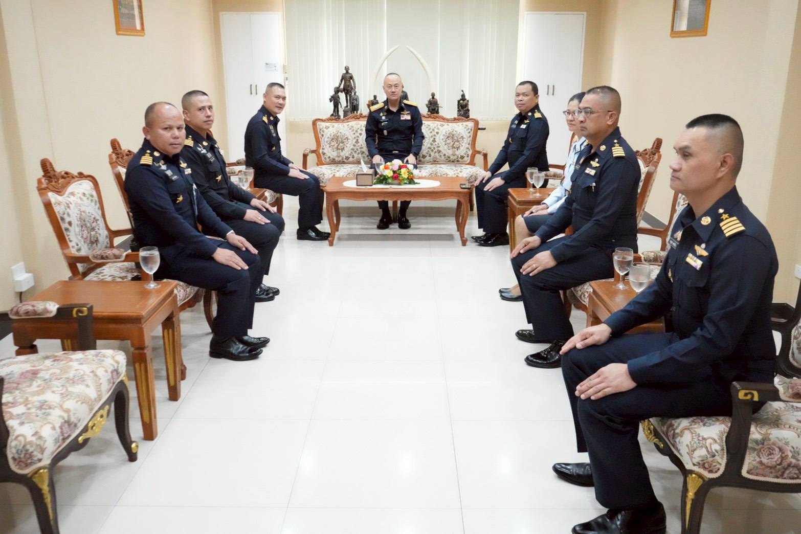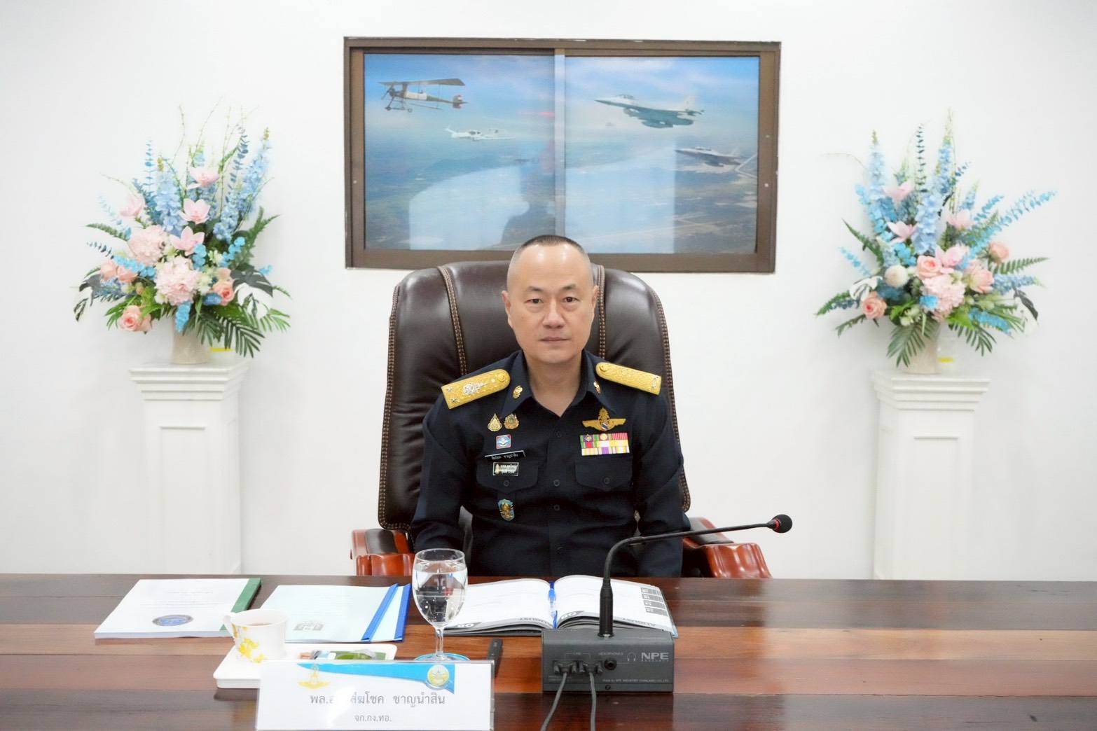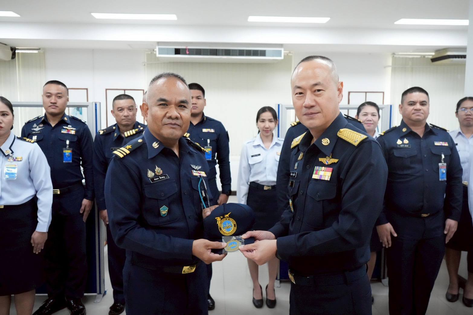 นาวาอากาศเอก วรพล ดิษฐ์แก้ว ผู้บังคับการกองบิน ๔ ให้การต้อนรับ พลอากาศตรี สีฆโชค ชาญนำสิน เจ้ากรมการเงินทหารอากาศ และคณะ ในโอกาสเดินทางมาตรวจเยี่ยมหน่วยสายวิทยาการการเงิน ณ กองบิน ๔ อำเภอตาคลี จังหวัดนครสวรรค์ เมื่อวันที่ ๑๗ มีนาคม ๒๕๖๙