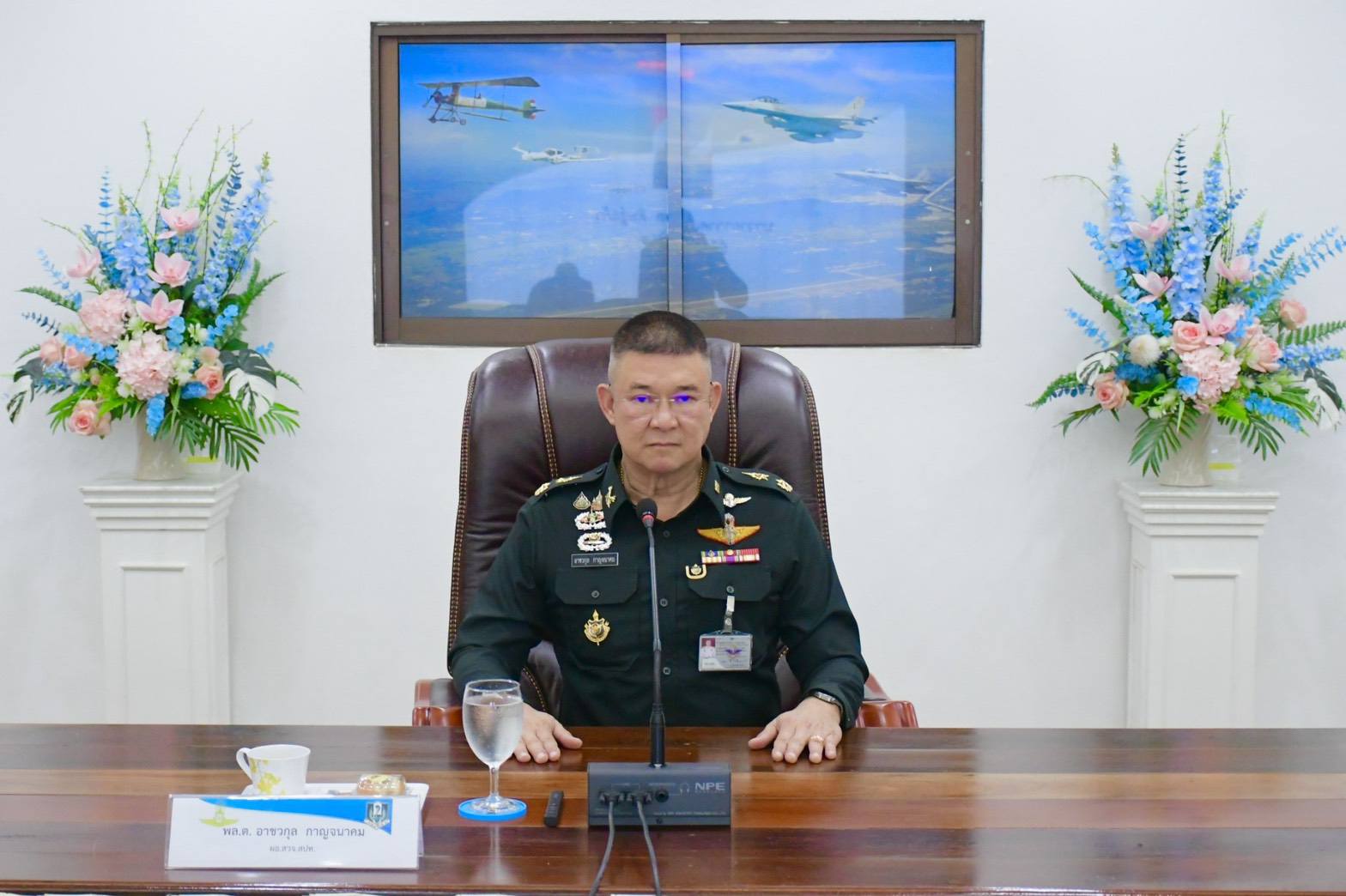นาวาอากาศเอก วรพล ดิษฐ์แก้ว ผู้บังคับการกองบิน ๔ ให้การต้อนรับ พลตรี อาชวกุล กาญจนาคม ผู้อำนวยการสถาบันจิตวิทยาความมั่นคง สถาบันวิชาการป้องกันประเทศ และคณะผู้เข้ารับการฝึกอบรมหลักสูตรจิตวิทยาความมั่นคง สำหรับผู้บริหารสถานศึกษา สำนักงานการศึกษาขั้นพื้นฐาน รุ่นที่ ๑๓ ในโอกาสเดินทางมาศึกษาและดูงาน ณ กองบิน ๔ อำเภอตาคลี จังหวัดนครสวรรค์ เมื่อวันที่ ๒๓ มีนาคม ๒๕๖๙