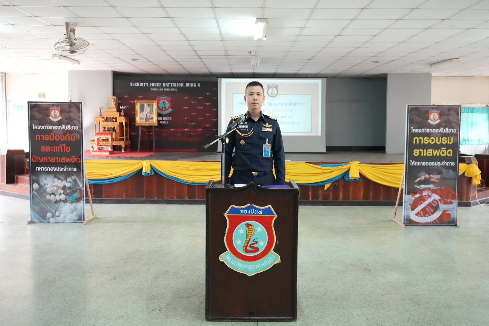 นาวาอากาศเอก วรรพล ดิษฐ์แก้ว ผู้บังคับการกองบิน ๔ มอบหมายให้ นาวาอากาศเอก ณัฐพล ม่วงเรือง เสนาธิการกองบิน ๔ เป็นประธานในพิธีเปิดการอบรมโครงการกองพันสีขาว กองบิน ๔ เพื่อให้ความรู้และปลูกฝังทัศนคติที่ดีในการต่อต้านยาเสพติดแก่ข้าราชการ และทหารกองประจำการ สังกัดกองพันทหารอากาศโยธิน กองบิน ๔ โดยมุ่งเน้นตามหลักยุทธศาสตร์การป้องกัน และแก้ไขปัญหายาเสพติดของกองทัพอากาศ ซึ่งภายในกิจกรรมจัดให้มีการอบรมให้ความรู้เกี่ยวกับโทษ พิษภัย และผลกระทบจากยาเสพติด ณ ห้องประชุมกองร้อยทหารอากาศโยธิน กองพันทหารอากาศโยธิน กองบิน ๔ เมื่อวันที่ ๒๒ มกราคม ๒๕๖๙
