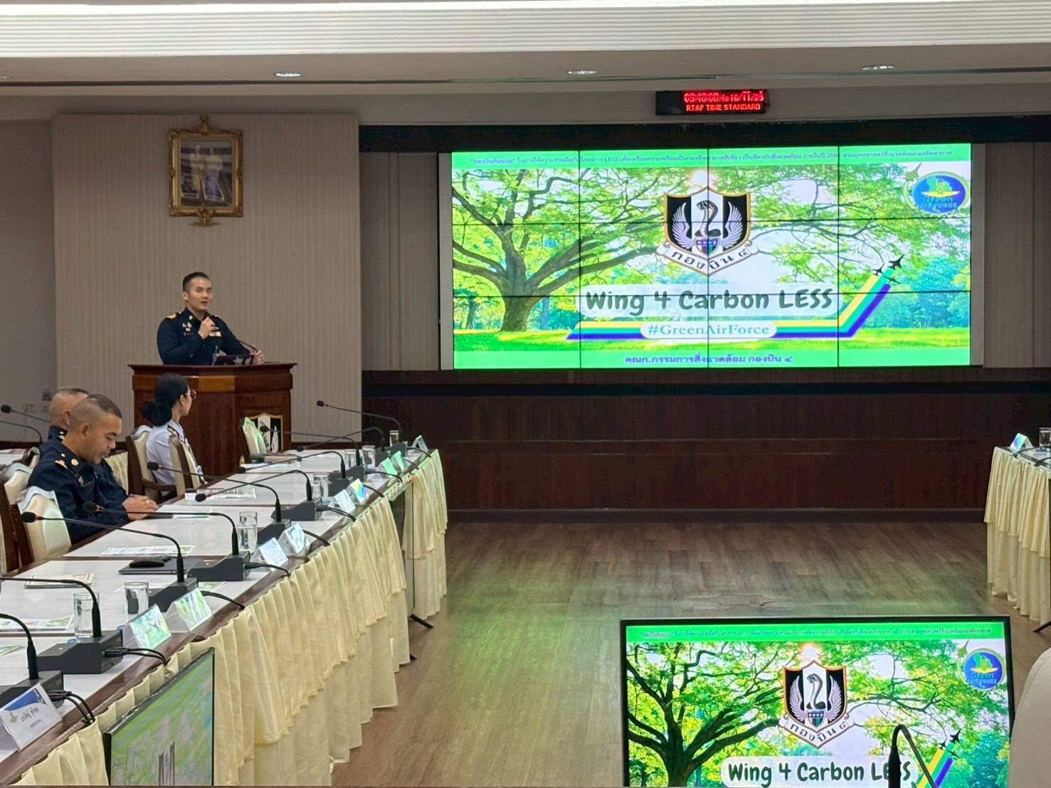 นาวาอากาศเอก วรพล ดิษฐ์แก้ว ผู้บังคับการกองบิน ๔ มอบหมายให้ นาวาอากาศเอก ธีรนารถ ณ บางช้าง รองผู้บังคับการกองบิน ๔ พร้อมด้วยคณะกรรมการสิ่งแวดล้อม กองบิน ๔ ดำเนินกิจกรรมโครงการ “Wing 4 Carbon LESS – กองทัพอากาศสีเขียว เป็นมิตรกับสิ่งแวดล้อม” ภายใต้แนวคิด “สิทธิในการมีโลกที่น่าอยู่ อนาคตของเด็กคือสิ่งสำคัญสูงสุด” เพื่อสนับสนุนนโยบาย “กองทัพอากาศสีเขียว” โดยมีวัตถุประสงค์หลักเพื่อให้กองบิน ๔ เป็นต้นแบบหน่วยงานสีเขียวของกองทัพอากาศ สนับสนุนเป้าหมาย NET ZERO ต่อต้านการฟอกเขียว (Greenwashing) และส่งเสริมความร่วมมือในโครงการ LESS (Low Emission Support Scheme)