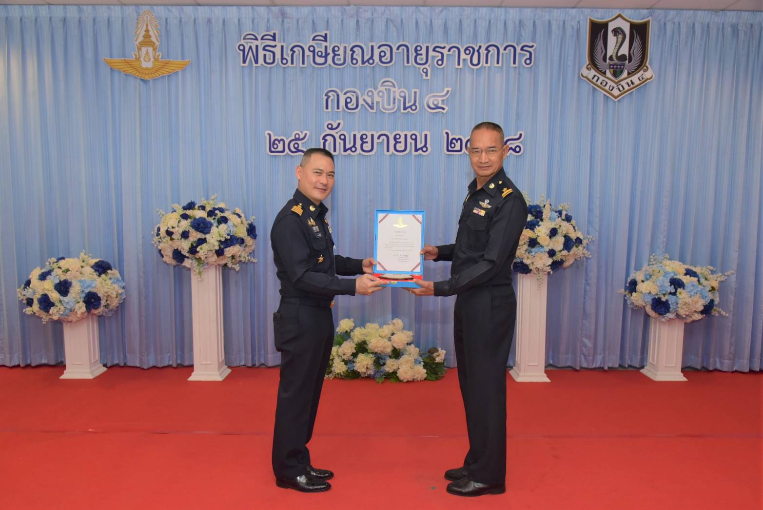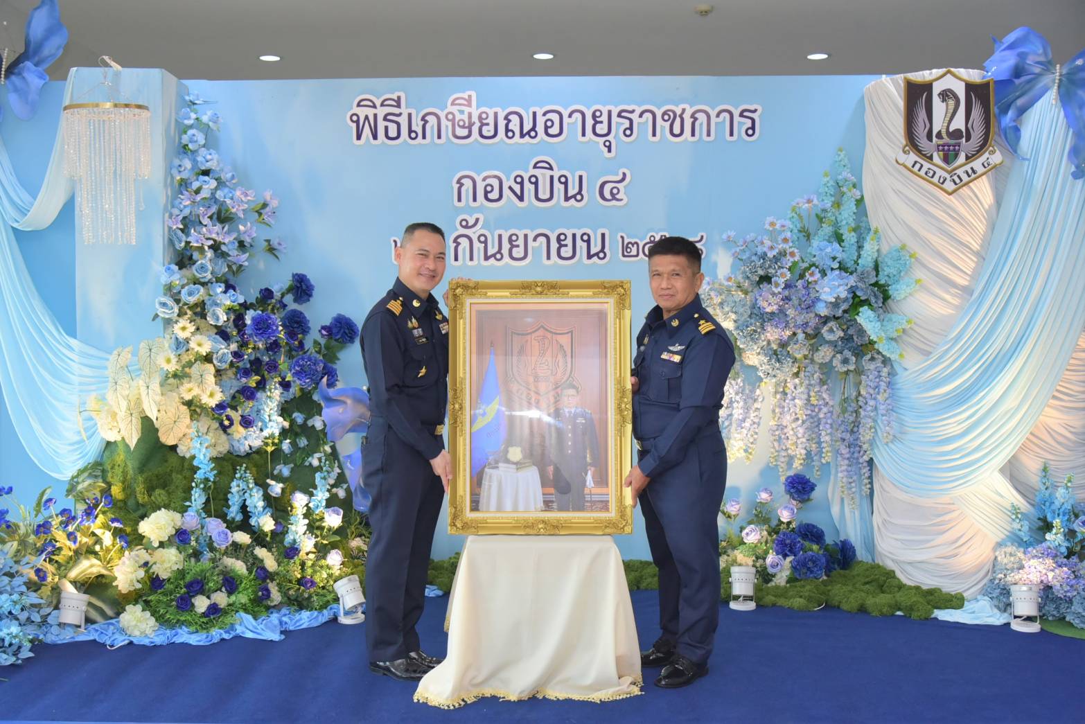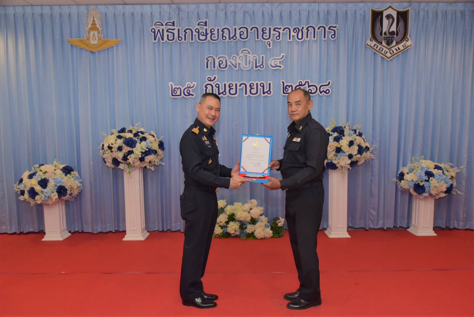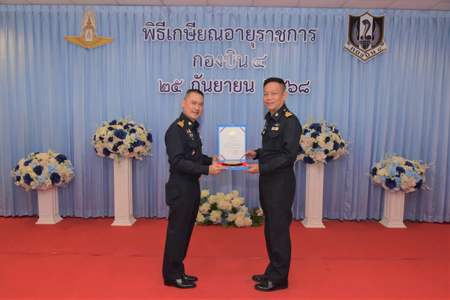นาวาอากาศเอก วรพล ดิษฐ์แก้ว ผู้บังคับการกองบิน ๔ เป็นประธานในพิธีเกษียณอายุราชการ ประจำปี ๒๕๖๘ พร้อมกับอ่านสารแสดงความรู้สึกจากผู้บัญชาการทหารอากาศ ต่อผู้ที่ปฏิบัติหน้าที่ราชการจนครบเกษียณอายุราชการ เป็นผู้ที่ได้อุทิศตน เสียสละแรงกาย แรงใจ และความรู้ความสามารถในการรับใช้กองทัพอากาศและประเทศชาติด้วยความวิริยะอุตสาหะ สมควรได้รับการยกย่องเชิดชูเกียรติ อีกทั้งยังได้มอบโล่เกียรติคุณ และของที่ระลึกแก่ผู้เกษียณอายุราชการ เพื่อเป็นเครื่องหมายแห่งความภาคภูมิใจ และเป็นแบบอย่างที่ดีแก่กำลังพลกองทัพอากาศต่อไป ณ ท่าอากาศยานทหาร กองบิน ๔ อำเภอตาคลี จังหวัดนครสวรรค์ เมื่อวันที่ ๒๕ กันยายน ๒๕๖๘
