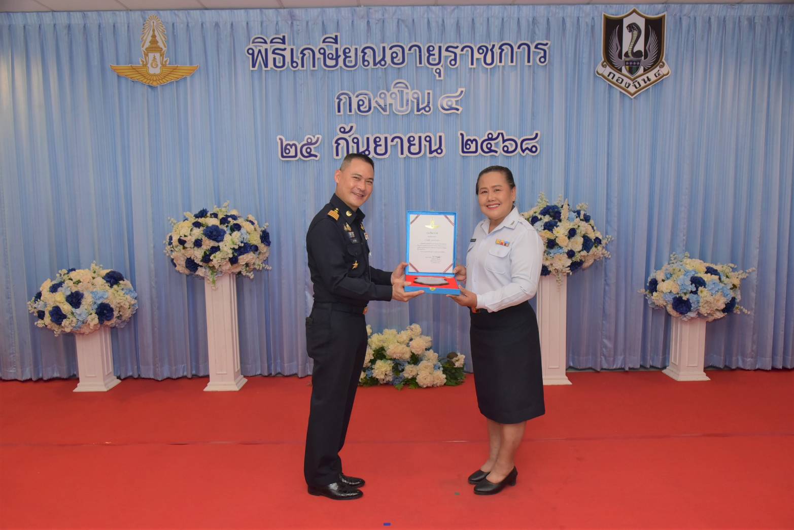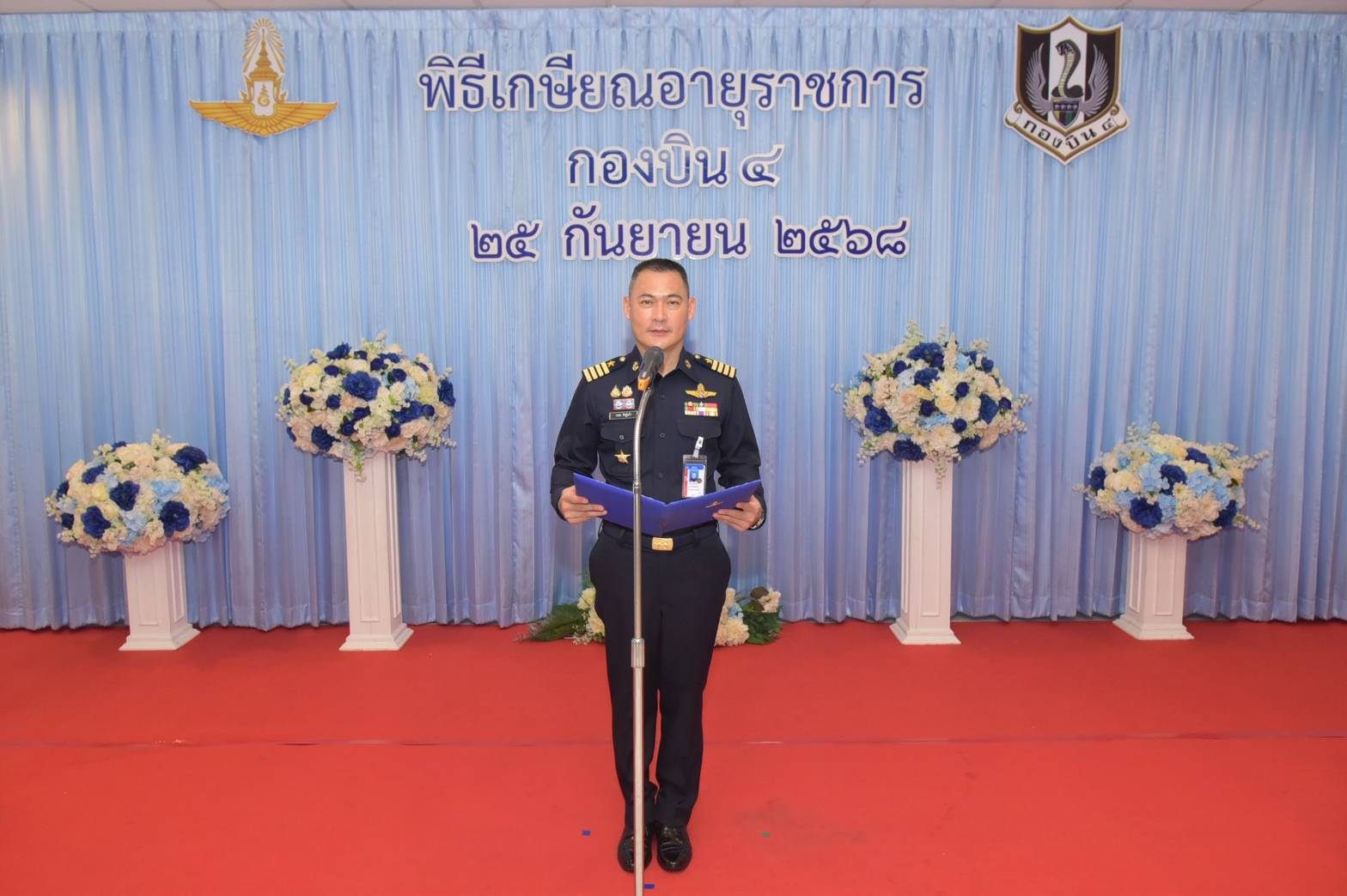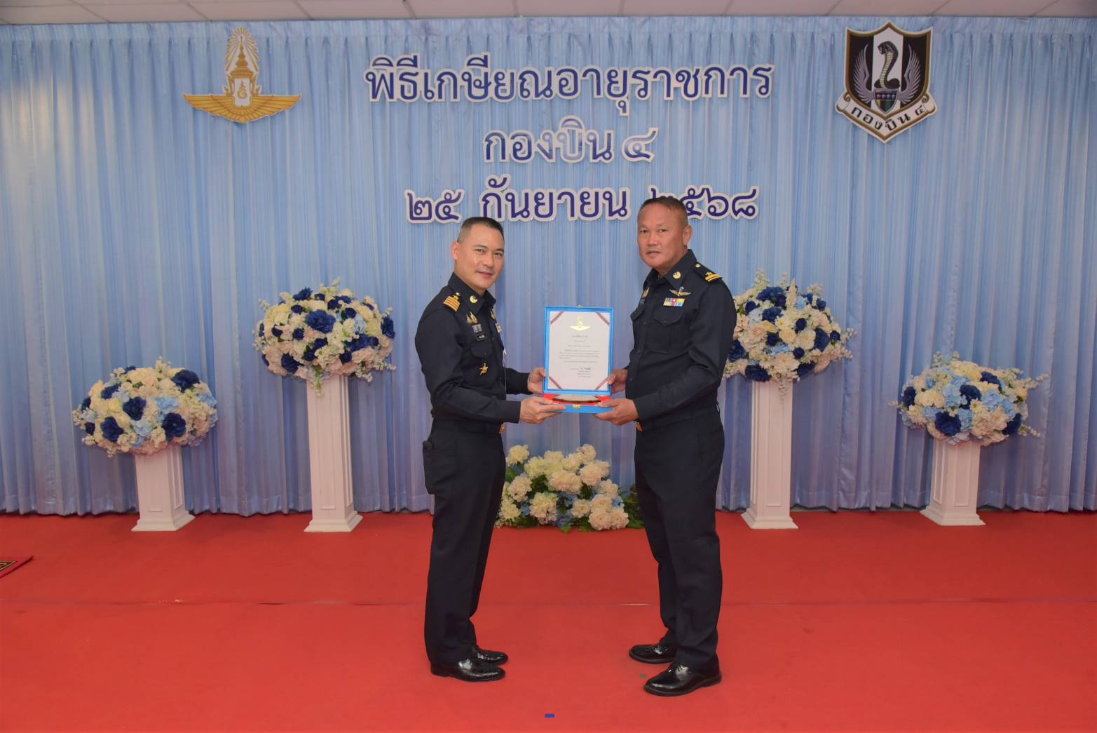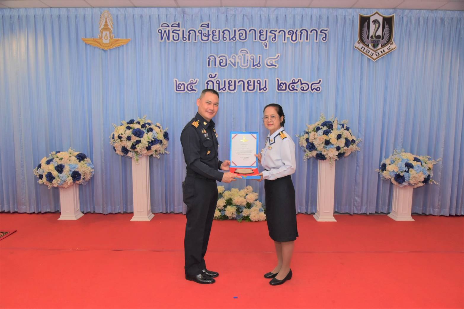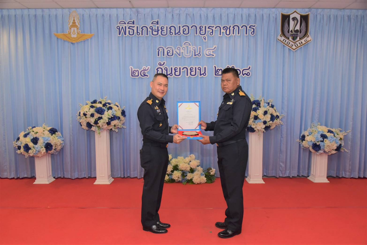 นาวาอากาศเอก วรพล ดิษฐ์แก้ว ผู้บังคับการกองบิน ๔ เป็นประธานในพิธีเกษียณอายุราชการ ประจำปี ๒๕๖๘ พร้อมกับอ่านสารแสดงความรู้สึกจากผู้บัญชาการทหารอากาศ ต่อผู้ที่ปฏิบัติหน้าที่ราชการจนครบเกษียณอายุราชการ เป็นผู้ที่ได้อุทิศตน เสียสละแรงกาย แรงใจ และความรู้ความสามารถในการรับใช้กองทัพอากาศและประเทศชาติด้วยความวิริยะอุตสาหะ สมควรได้รับการยกย่องเชิดชูเกียรติ อีกทั้งยังได้มอบโล่เกียรติคุณ และของที่ระลึกแก่ผู้เกษียณอายุราชการ เพื่อเป็นเครื่องหมายแห่งความภาคภูมิใจ และเป็นแบบอย่างที่ดีแก่กำลังพลกองทัพอากาศต่อไป ณ ท่าอากาศยานทหาร กองบิน ๔ อำเภอตาคลี จังหวัดนครสวรรค์ เมื่อวันที่ ๒๕ กันยายน ๒๕๖๘