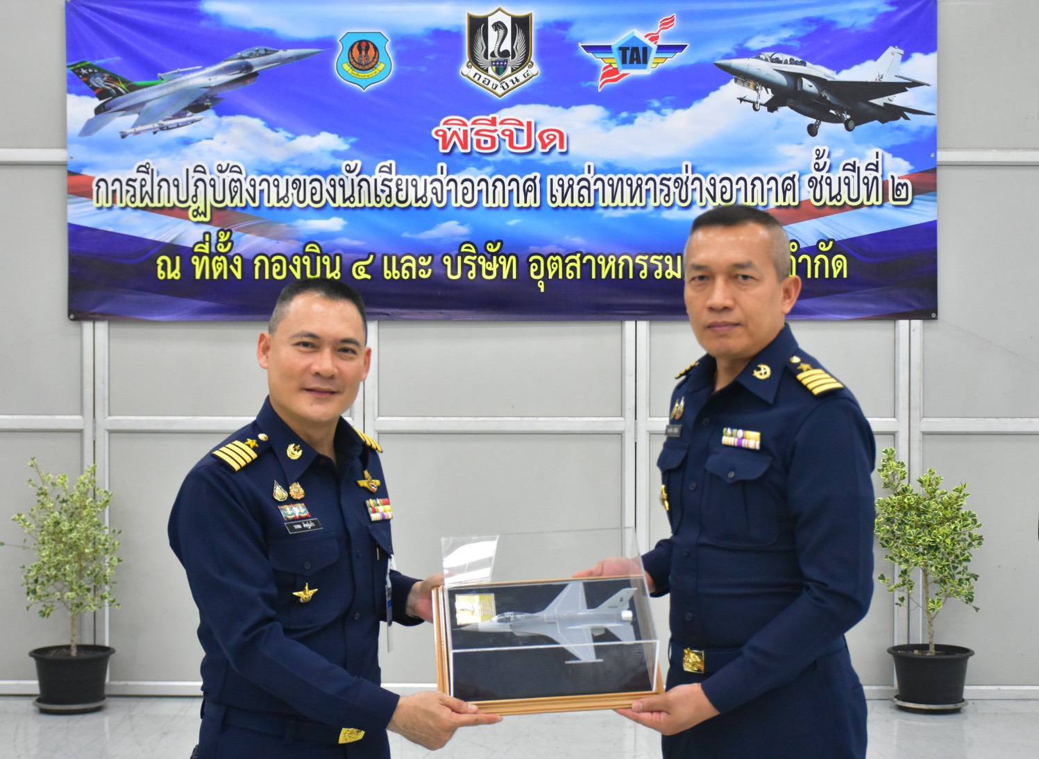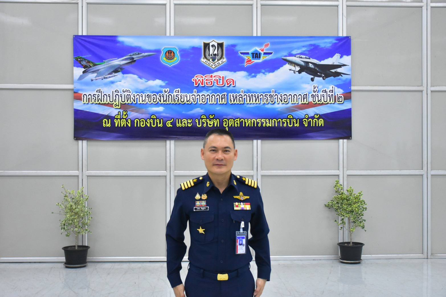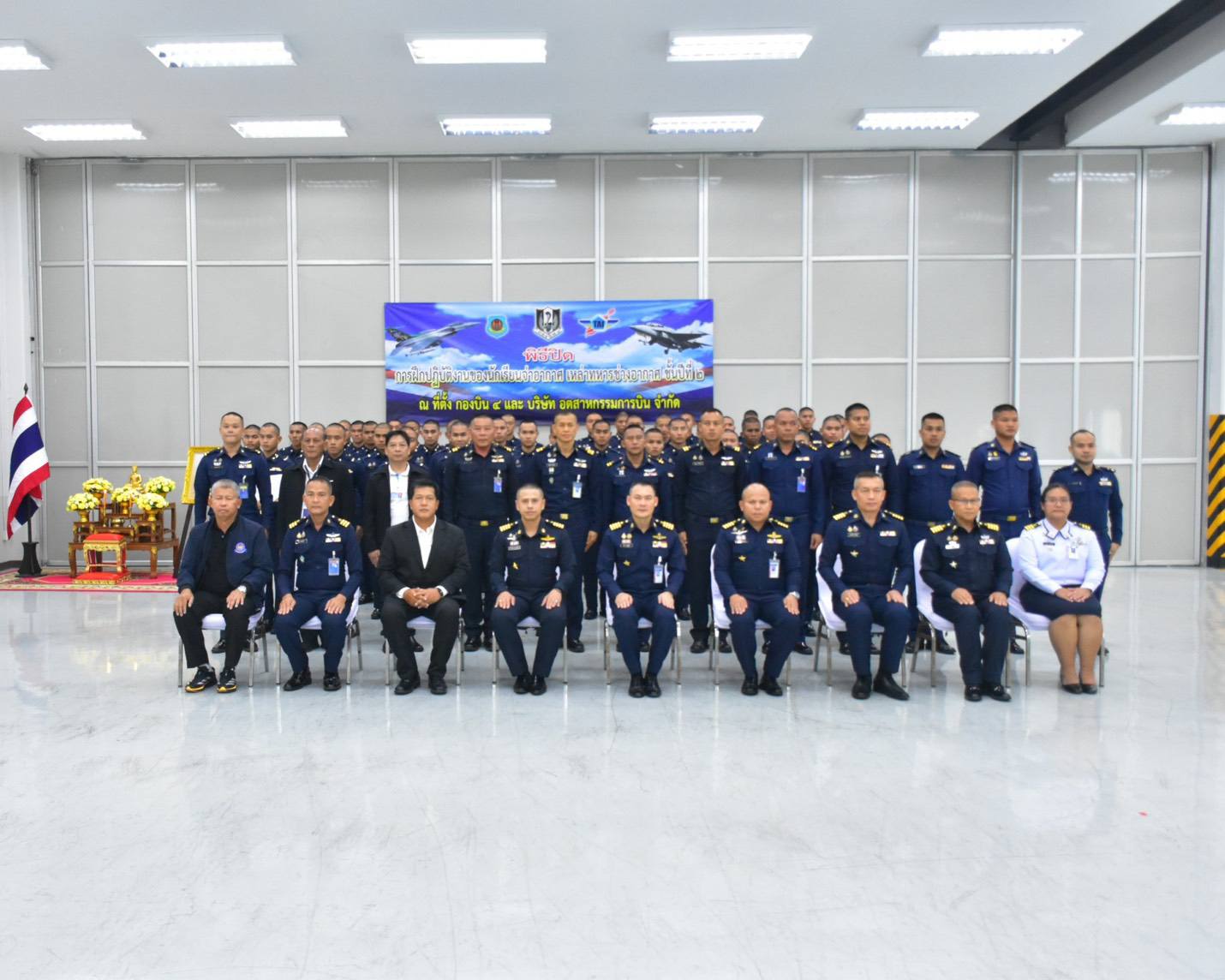 นาวาอากาศเอก วรพล ดิษฐ์แก้ว ผู้บังคับการกองบิน ๔ เป็นประธานในพิธีปิดการฝึกปฏิบัติงานของนักเรียนจ่าอากาศ ชั้นปีที่ ๒ เหล่าทหารช่างอากาศ ซึ่งจัดขึ้น ณ แผนกช่างอากาศ กองเทคนิค กองบิน ๔ อำเภอตาคลี จังหวัดนครสวรรค์ เมื่อวันที่ ๒๕ กุมภาพันธ์ ๒๕๖๙
