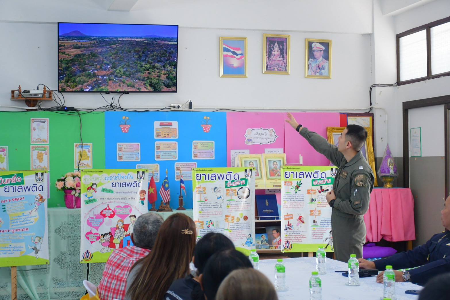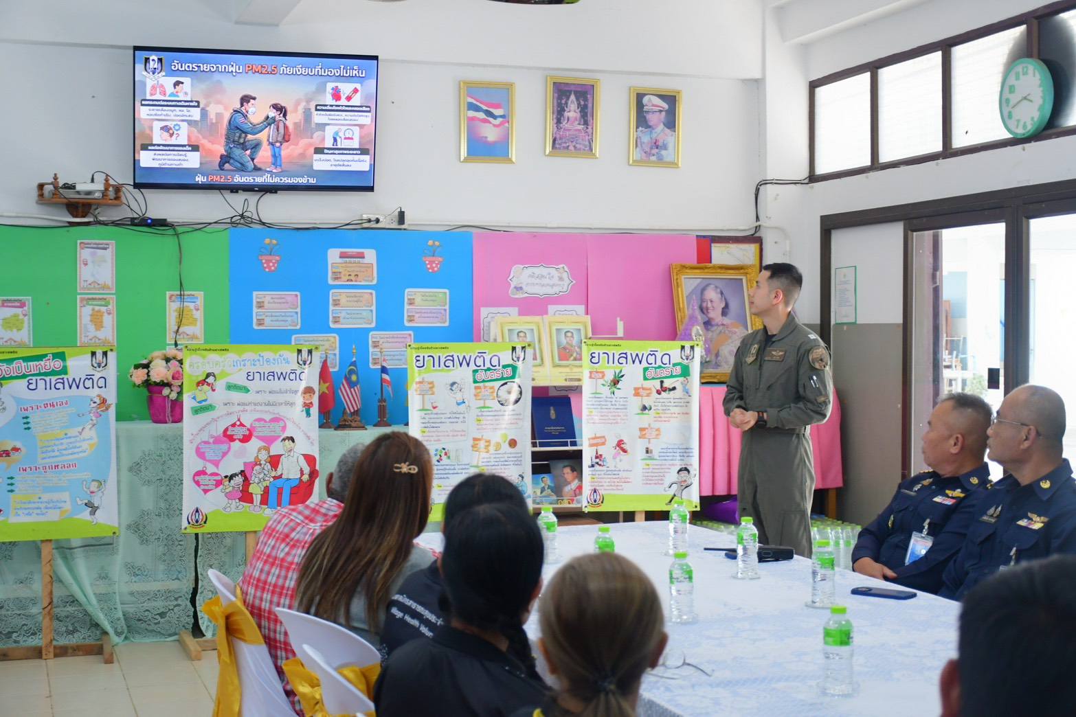 นาวาอากาศเอก วรพล ดิษฐ์แก้ว ผู้บังคับการกองบิน ๔ มอบหมายให้ ศูนย์บรรเทาสาธารณภัยกองบิน ๔ และ ศูนย์ปฏิบัติการป้องกันและปราบปรามยาเสพติดกองบิน ๔ ลงพื้นที่ประชาสัมพันธ์ งดเผาพื้นที่ทางการเกษตร พร้อมทั้งสนับสนุนหน้ากากอนามัยเพื่อป้องกันฝุ่นควัน PM 2.5 การสนับสนุนน้ำดื่มเพื่อช่วยบรรเทาปัญหาภัยแล้ง และประชาสัมพันธ์แนวทางการป้องกันและแก้ไขปัญหายาเสพติดในพื้นที่ชุมชน พร้อมกับรับฟังความคิดเห็นแนวทางการช่วยเหลือประชาชนรอบที่ตั้ง กองบิน ๔