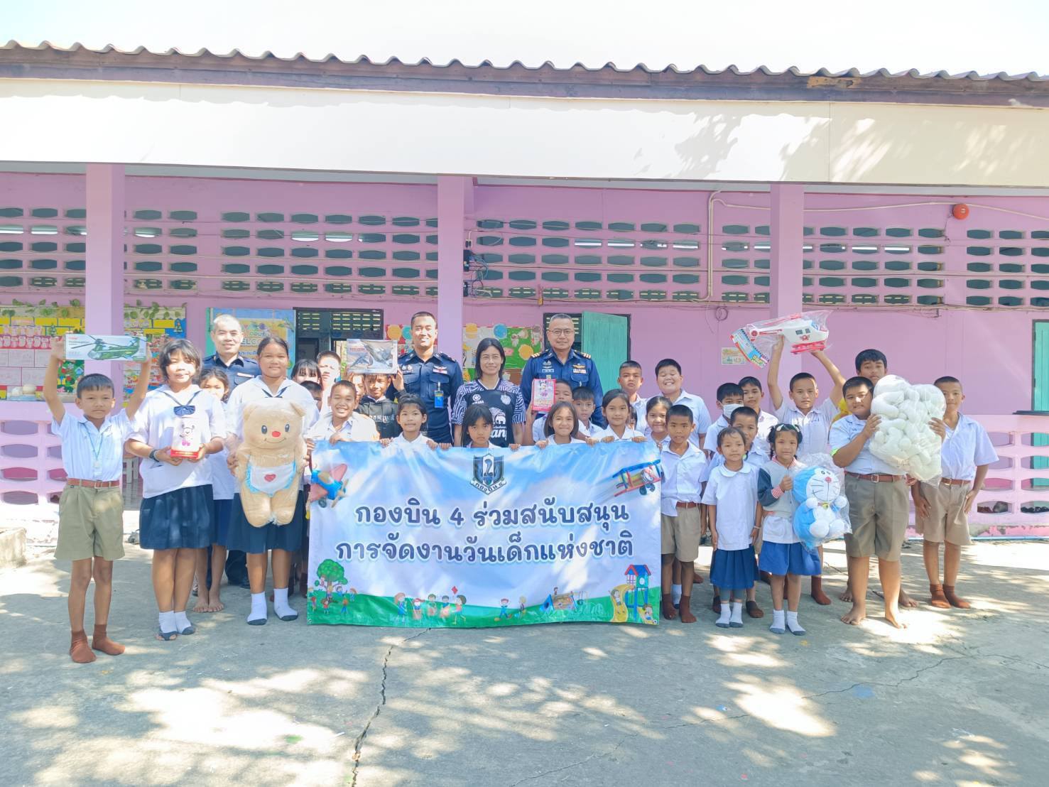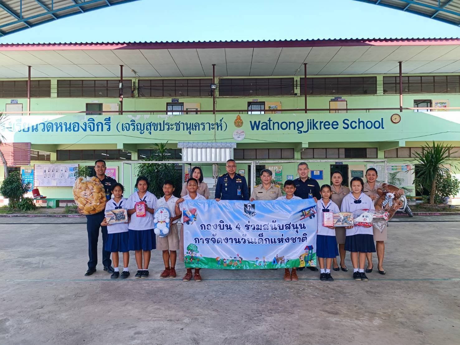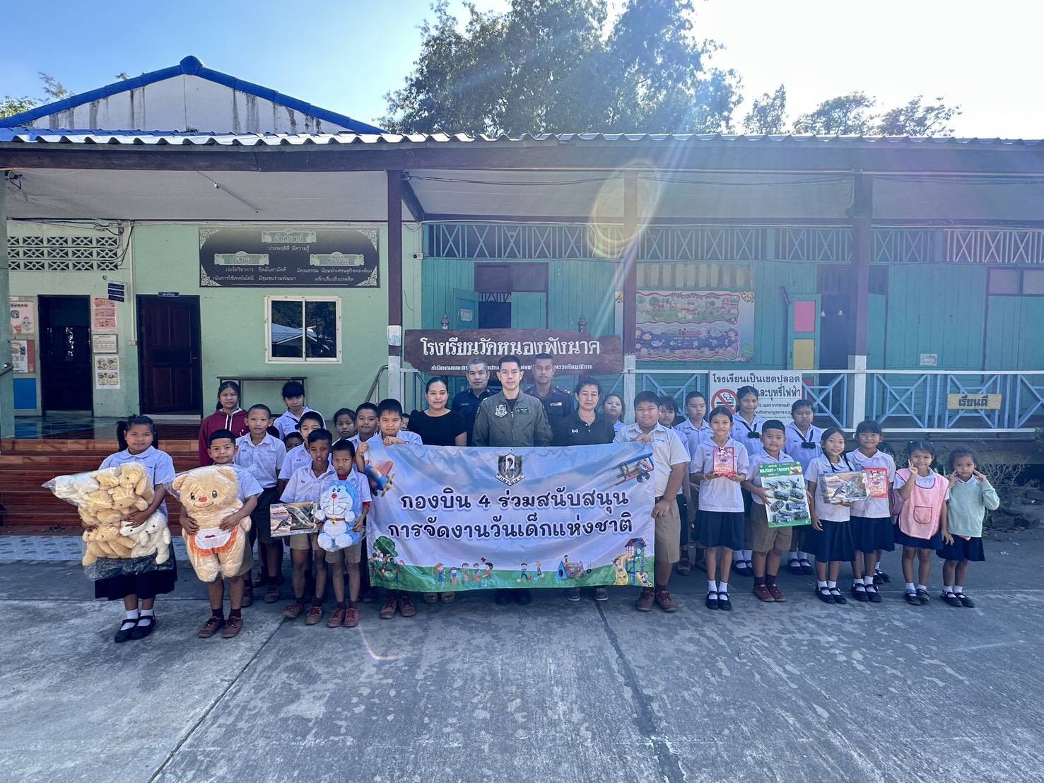 นาวาอากาศเอก วรพล ดิษฐ์แก้ว ผู้บังคับการกองบิน ๔ มอบของขวัญวันเด็ก เพื่อสนับสนุนการจัดงานวันเด็กแห่งชาติ ประจำปี ๒๕๖๙ ให้กับเทศบาลเมืองตาคลี โรงเรียนต่าง ๆ ในพื้นที่อำเภอตาคลี จังหวัดนครสวรรค์ และในพื้นที่อำเภอเมือง จังหวัดชัยนาท เมื่อวันที่ ๗ มกราคม ๒๕๖๙ เพื่อส่งเสริมการเรียนรู้และสร้างขวัญกำลังใจให้แก่เด็กและเยาวชน ตามคำขวัญวันเด็กประจำปี ๒๕๖๙ "รักชาติไทย ใส่ใจโลก”