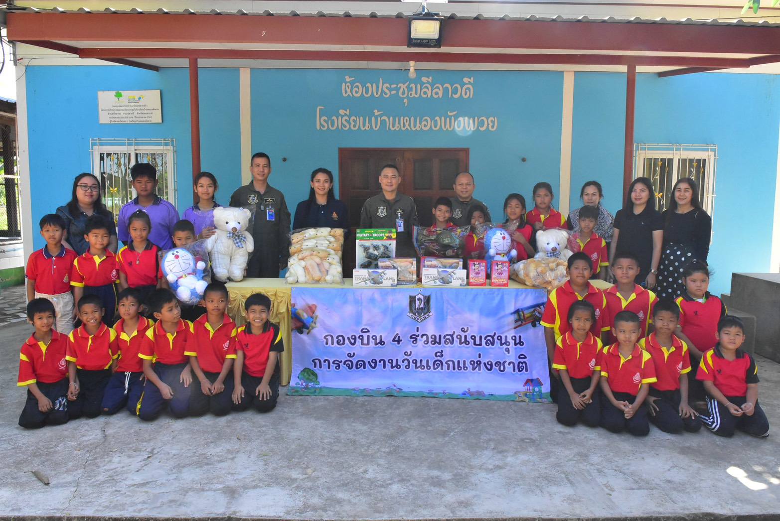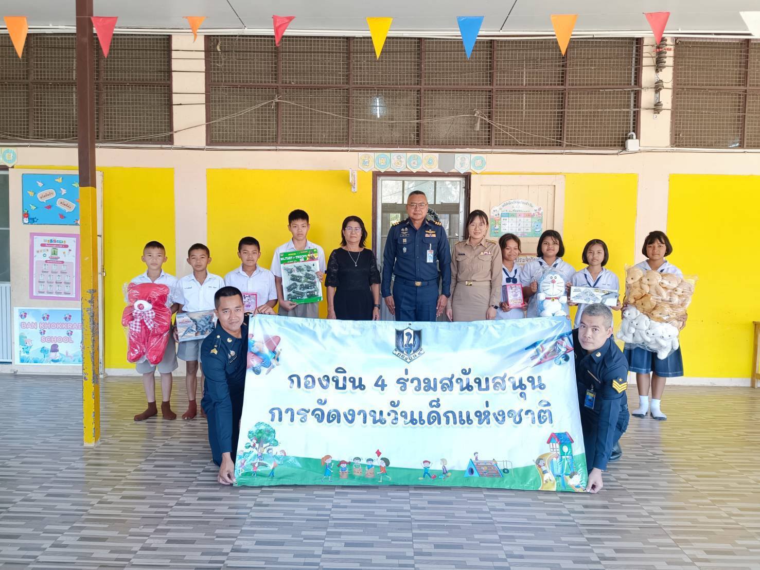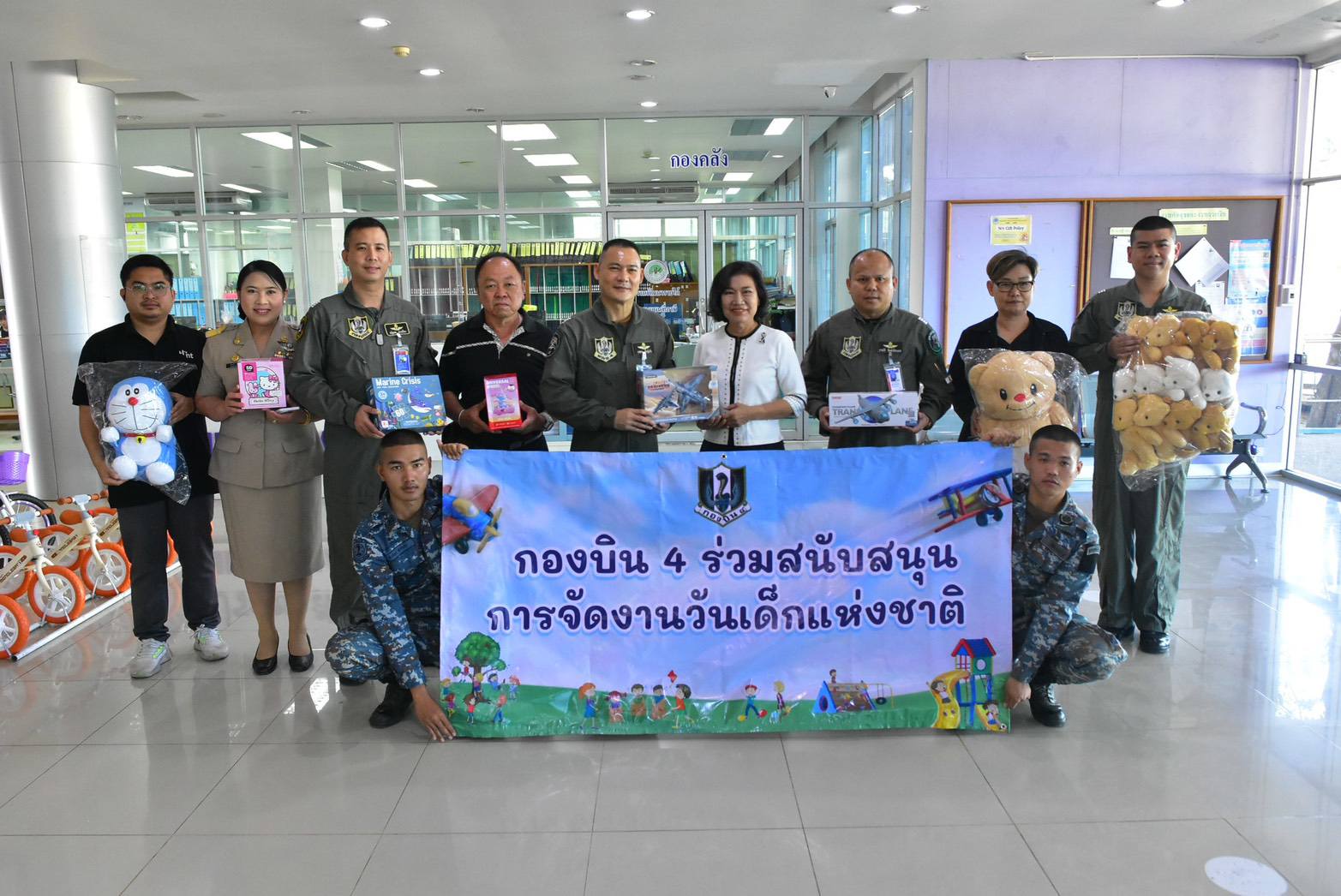นาวาอากาศเอก วรพล ดิษฐ์แก้ว ผู้บังคับการกองบิน ๔ มอบของขวัญวันเด็ก เพื่อสนับสนุนการจัดงานวันเด็กแห่งชาติ ประจำปี ๒๕๖๙ ให้กับเทศบาลเมืองตาคลี โรงเรียนต่าง ๆ ในพื้นที่อำเภอตาคลี จังหวัดนครสวรรค์ และในพื้นที่อำเภอเมือง จังหวัดชัยนาท เมื่อวันที่ ๗ มกราคม ๒๕๖๙ เพื่อส่งเสริมการเรียนรู้และสร้างขวัญกำลังใจให้แก่เด็กและเยาวชน ตามคำขวัญวันเด็กประจำปี ๒๕๖๙ "รักชาติไทย ใส่ใจโลก”