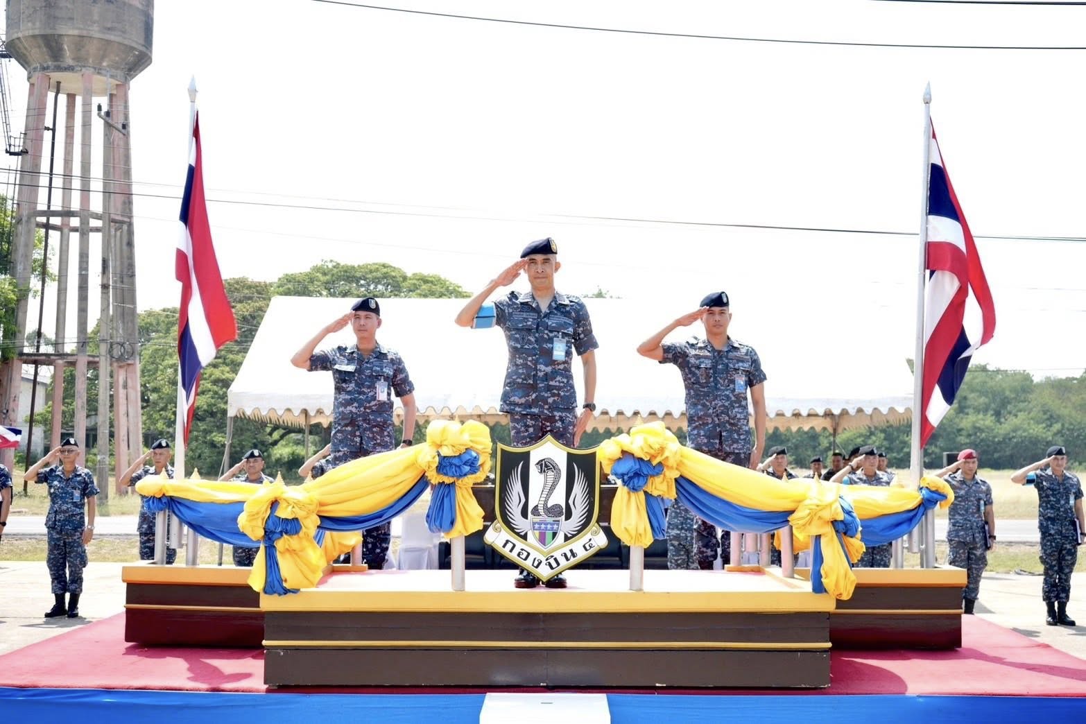นาวาอากาศเอก วรพล ดิษฐ์แก้ว ผู้บังคับการกองบิน 4 มอบหมายให้ นาวาอากาศเอก ณัฐพล ม่วงเรือง เสนาธิการกองบิน 4 ให้การต้อนรับ นาวาอากาศเอก พัฒนสันต์ โพธิ์แพทย์ ประธานคณะกรรมการตรวจสอบการฝึก และคณะ ในโอกาสเดินทางมาตรวจสอบการฝึกภาคที่ 1 ตอนที่ 2 ของทหารกองประจำการ รุ่นปี 2568 ผลัดที่ 2 ณ กองบิน 4 อำเภอตาคลี จังหวัดนครสวรรค์ เมื่อวันที่ 30 มีนาคม 2569
