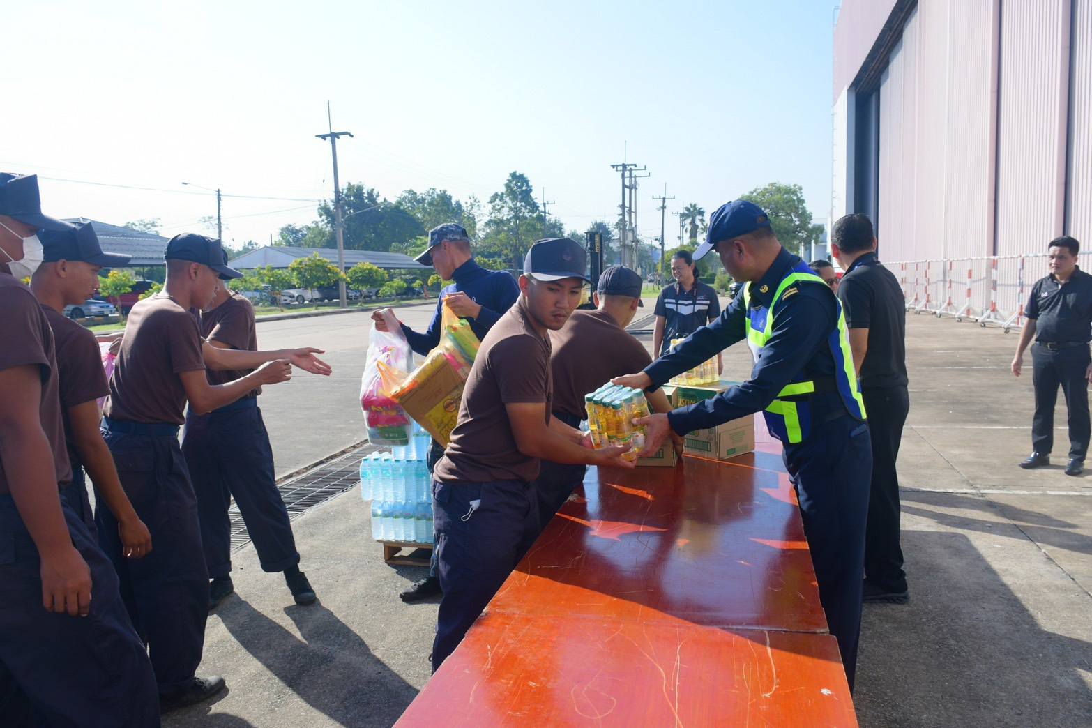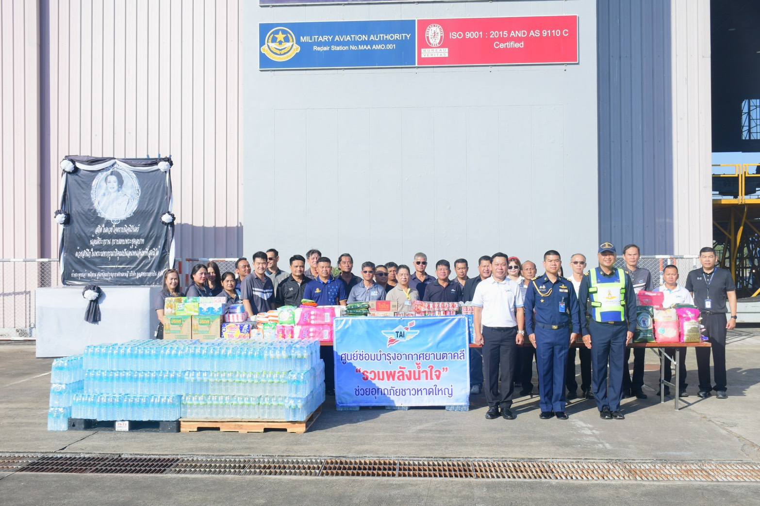นาวาอากาศเอก วรพล ดิษฐ์แก้ว ผู้บังคับการกองบิน ๔ ในฐานะ ผู้อำนวยการศูนย์บรรเทาสาธารณภัยกองบิน ๔ มอบหมายให้ นาวาอากาศโท คณิสสรณ์ บุญญานุรักษ์ หัวหน้าแผนกกิจการพลเรือน กองบังคับการกองบิน ๔ รับมอบสิ่งของเครื่องใช้ที่จำเป็น ข้าวสาร อาหารแห้ง และน้ำดื่ม จากบริษัทอุตสาหกรรมการบิน จำกัด เพื่อนำส่งไปช่วยเหลือและบรรเทาความเดือดร้อนผู้ประสบเหตุอุทกภัยในพื้นที่ภาคใต้ เมื่อวันที่ ๒ ธันวาคม ๒๕๖๘