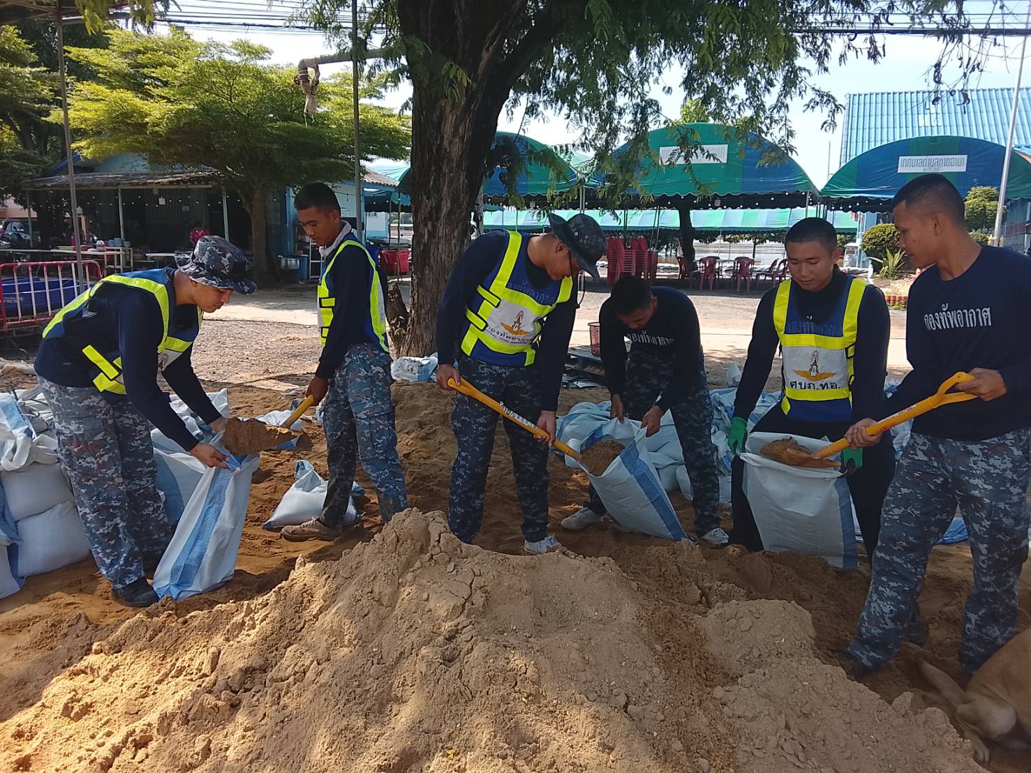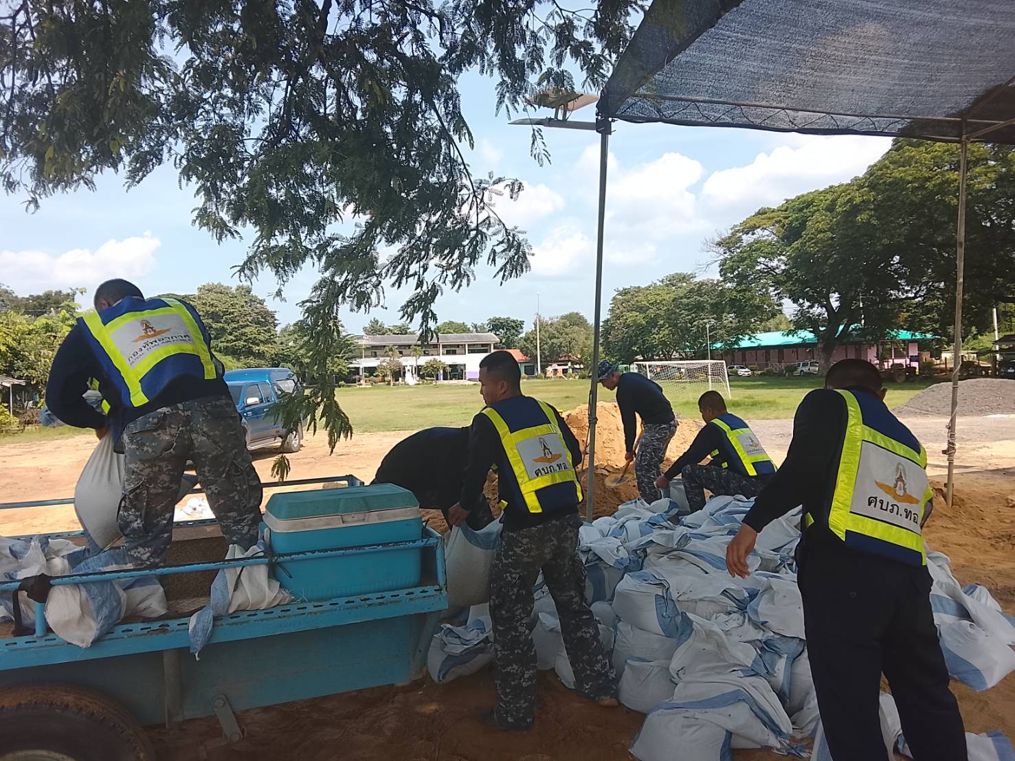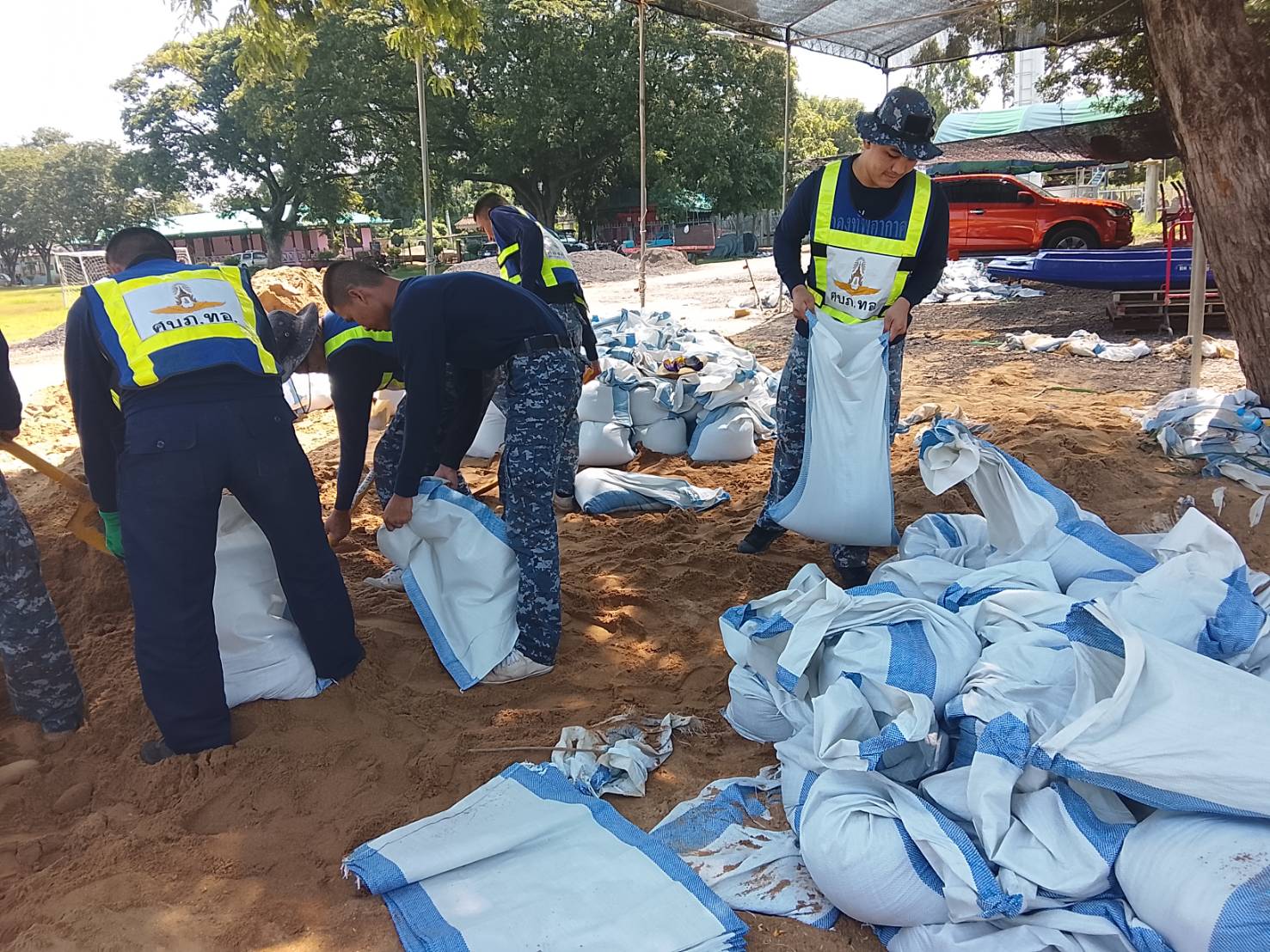 นาวาอากาศเอก วรพล ดิษฐ์แก้ว ผู้บังคับการกองบิน ๔ ในฐานะ ผู้อำนวยการศูนย์บรรเทาสาธารณภัยกองบิน ๔ มอบหมายให้ ศูนย์บรรเทาสาธารณภัยกองบิน ๔ นำกำลังพล พร้อมยานพาหนะ สนับสนุนเทศบาลตำบลโพนางดำออก และเทศบาลตำบลหาดอาษา อำเภอสรรพยา จังหวัดชัยนาท บรรจุกระสอบทรายพร้อมกับวางแนวกระสอบทราย เพื่อป้องน้ำล้นตลิ่งเข้าท่วมบ้านเรือนประชาชน ซึ่งจะก่อให้เกิดความเสียหายเป็นบริเวณกว้าง เมื่อวันที่ ๒๑ ตุลาคม ๒๕๖๘