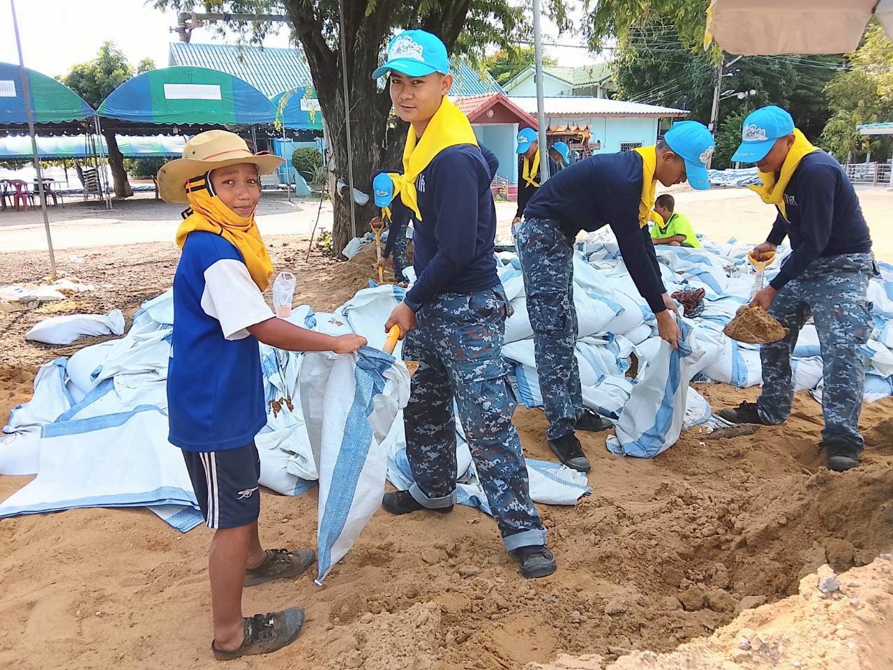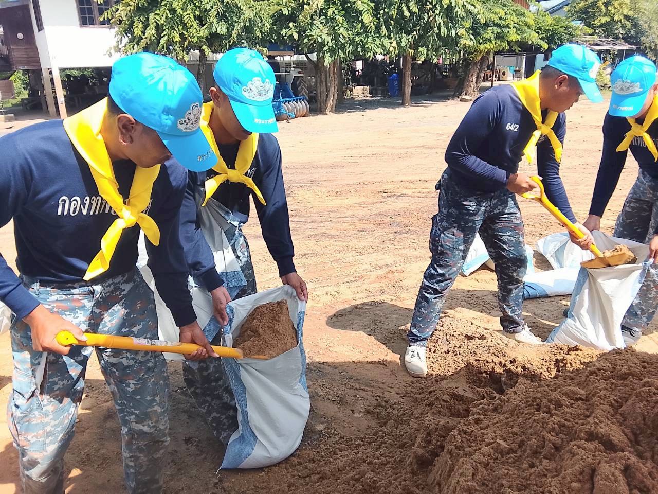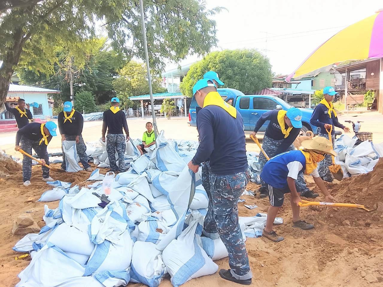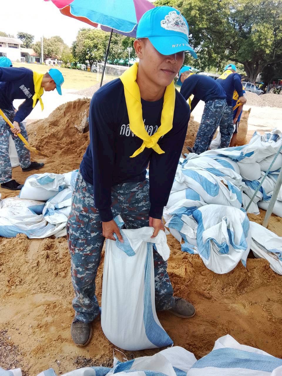 นาวาอากาศเอก วรพล ดิษฐ์แก้ว ผู้บังคับการกองบิน ๔ ในฐานะ ผู้อำนวยการศูนย์บรรเทาสาธารณภัยกองบิน ๔ มอบหมายให้ ศูนย์บรรเทาสาธารณภัยกองบิน ๔ พร้อมด้วยกำลังพลจิตอาสาพระราชทาน สนับสนุนประชาชนในพื้นที่ตำบลโพนางดำออก และตำบลหาดอาษา อำเภอสรรพยา จังหวัดชัยนาท บรรจุกระสอบทรายเพื่อเตรียมไว้สำหรับในกรณีฉุกเฉิน เนื่องจากมีระดับน้ำเพิ่มสูงขึ้นและมีโอกาสล้นตลิ่งเข้าท่วมบ้านเรือนของประชาชน เมื่อวันที่ ๒๒ ตุลาคม ๒๕๖๘