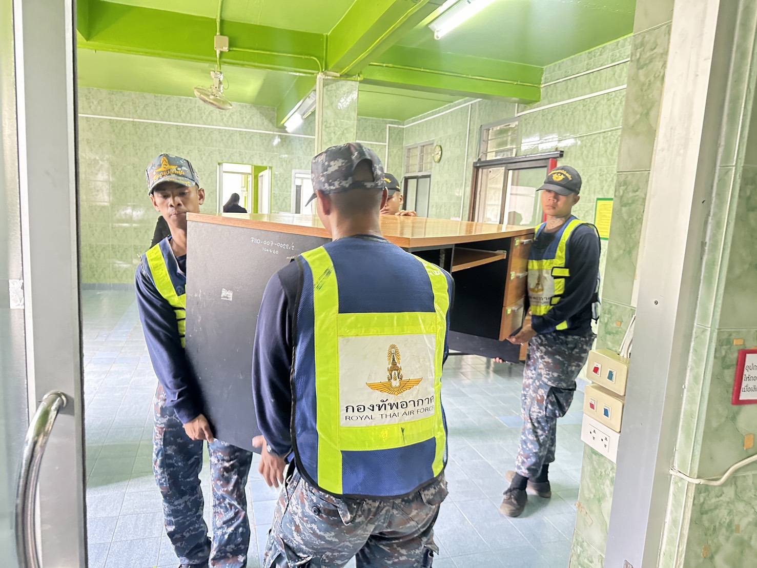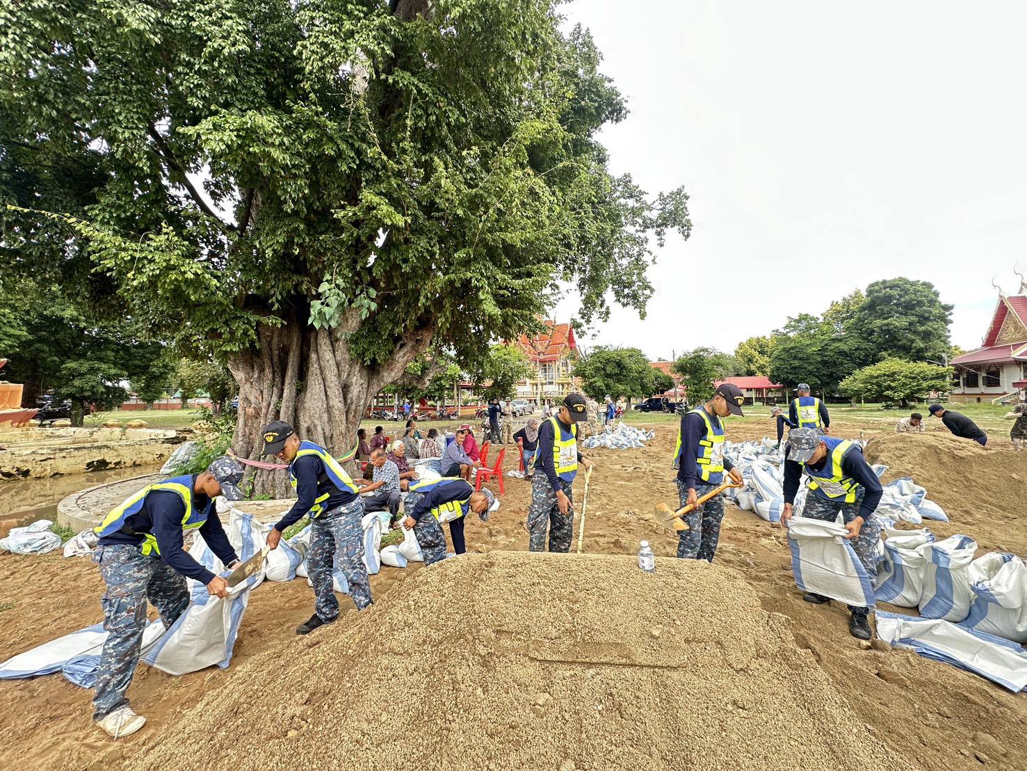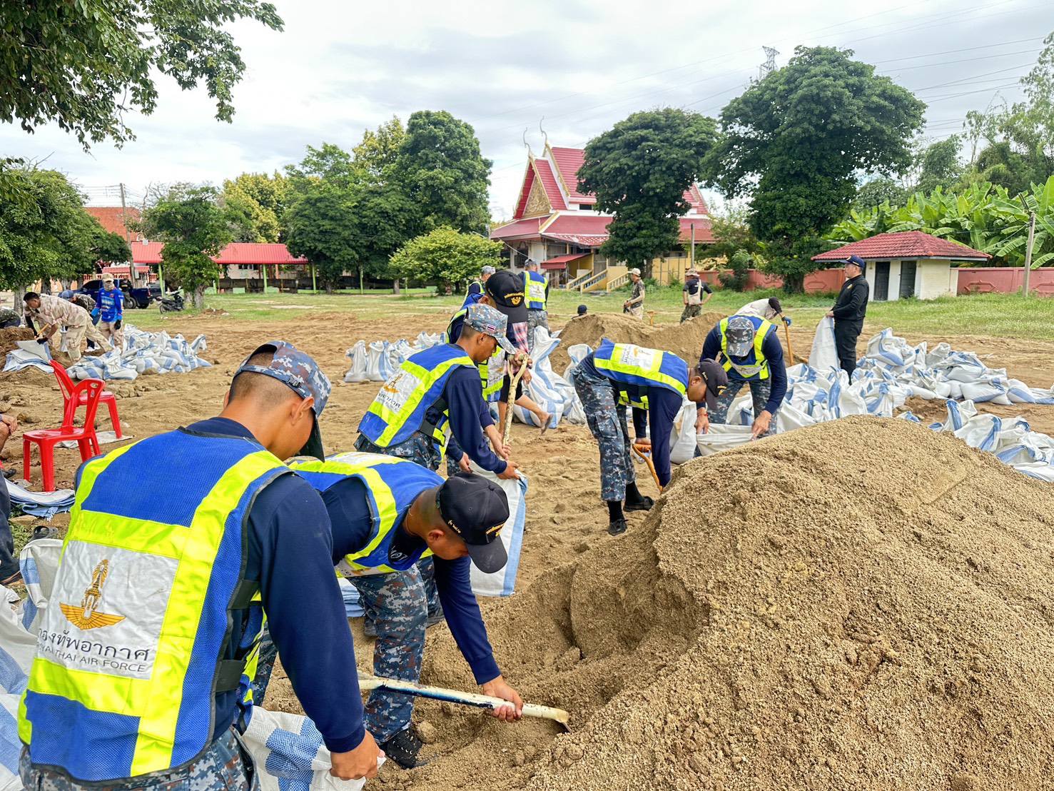 ในการนี้ นาวาอากาศเอก วรพล ดิษฐ์แก้ว ผู้บังคับการกองบิน ๔ ในฐานะผู้อำนวยการศูนย์บรรเทาสาธารณภัยกองบิน ๔ มอบหมายให้ ศูนย์บรรเทาสาธารณภัยกองบิน ๔ นำกำลังพล พร้อมยานพาหนะ ร่วมกับเทศบาลตำบลตลุก อำเภอสรรพยา จังหวัดชัยนาท และประชาชนในพื้นที่บรรจุพร้อมกับวางแนวกระสอบทราย และขนย้ายสิ่งของขึ้นที่สูง เพื่อป้องกันน้ำกลับเข้าท่วมบ้านเรือนของประชาชนสร้างความเสียหายเป็นบริเวณกว้าง จนกว่าสถานการณ์จะกลับสู่ภาวะปกติ เมื่อวันที่ ๕ พฤศจิกายน ๒๕๖๘