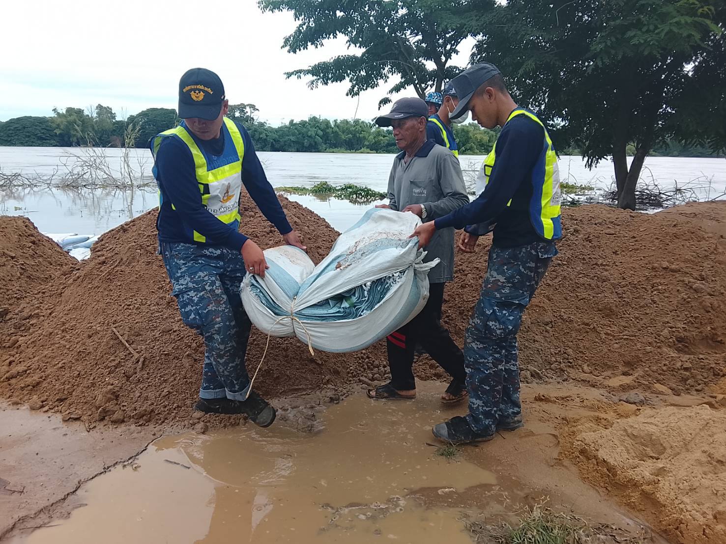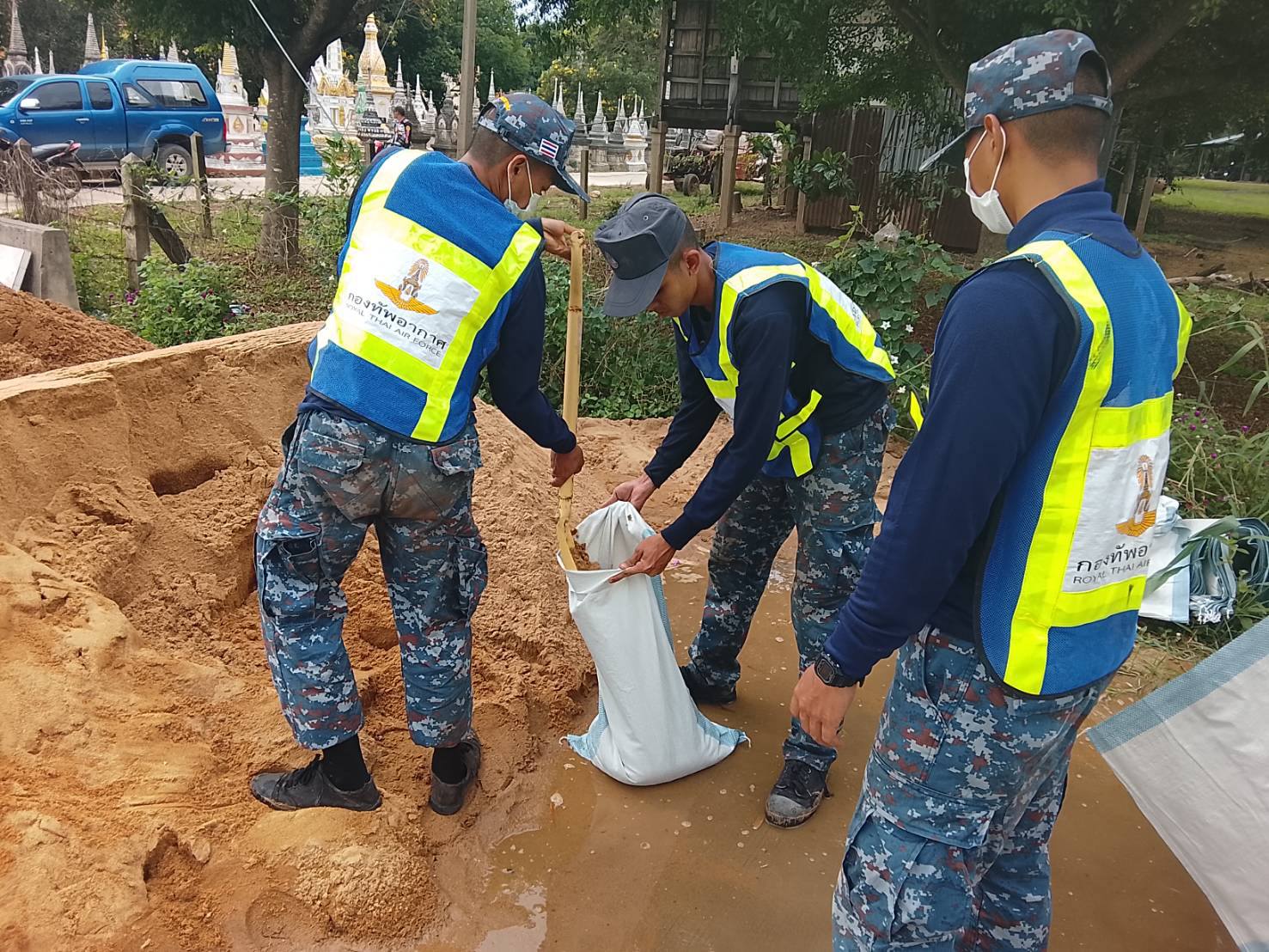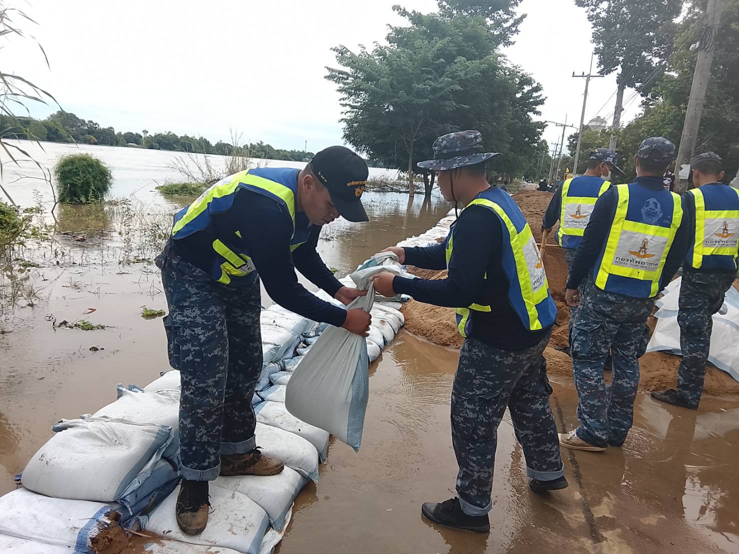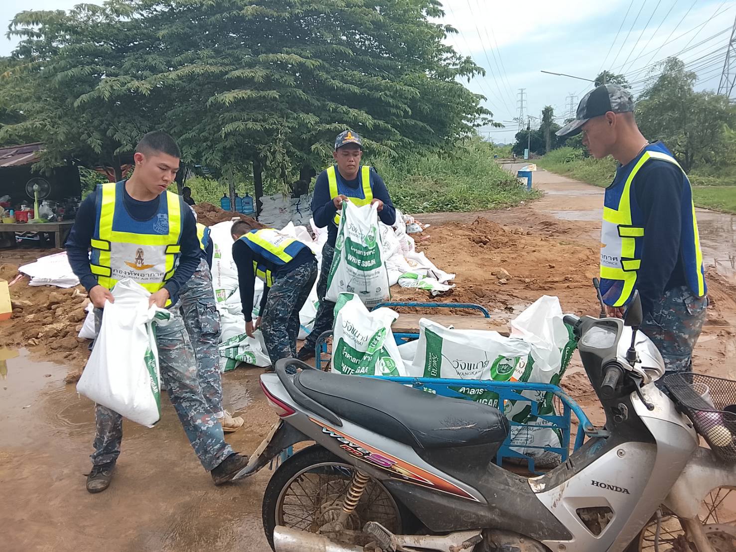 นาวาอากาศเอก วรพล ดิษฐ์แก้ว ผู้บังคับการกองบิน ๔ ในฐานะผู้อำนวยการศูนย์บรรเทาสาธารณภัยกองบิน ๔ มอบหมายให้ ศูนย์บรรเทาสาธารณภัยกองบิน ๔ นำกำลังพล พร้อมยานพาหนะ ร่วมกับเทศบาลตำบลบางหลวง เทศบาลตำบลเจ้าพระยา อำเภอสรรพยา จังหวัดชัยนาท และประชาชนในพื้นที่บรรจุพร้อมกับวางแนวกระสอบทรายเสริมคันกั้นน้ำ เพื่อป้องกันเข้าท่วมบ้านเรือนของประชาชนสร้างความเสียหายเป็นบริเวณกว้าง จนกว่าสถานการณ์จะกลับสู่ภาวะปกติ เมื่อวันที่ ๗ พฤศจิกายน ๒๕๖๘