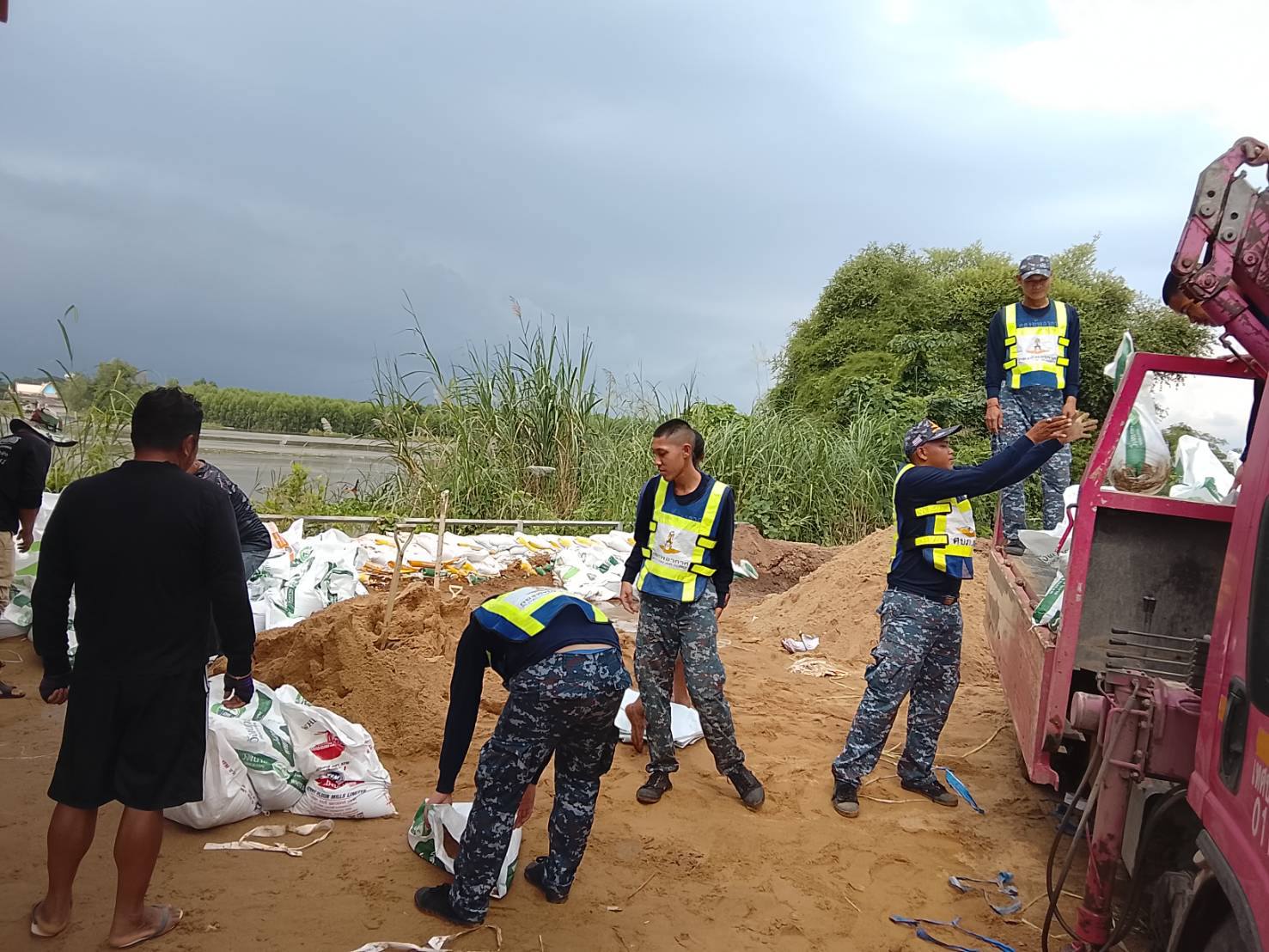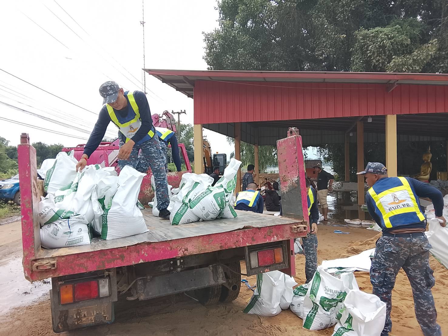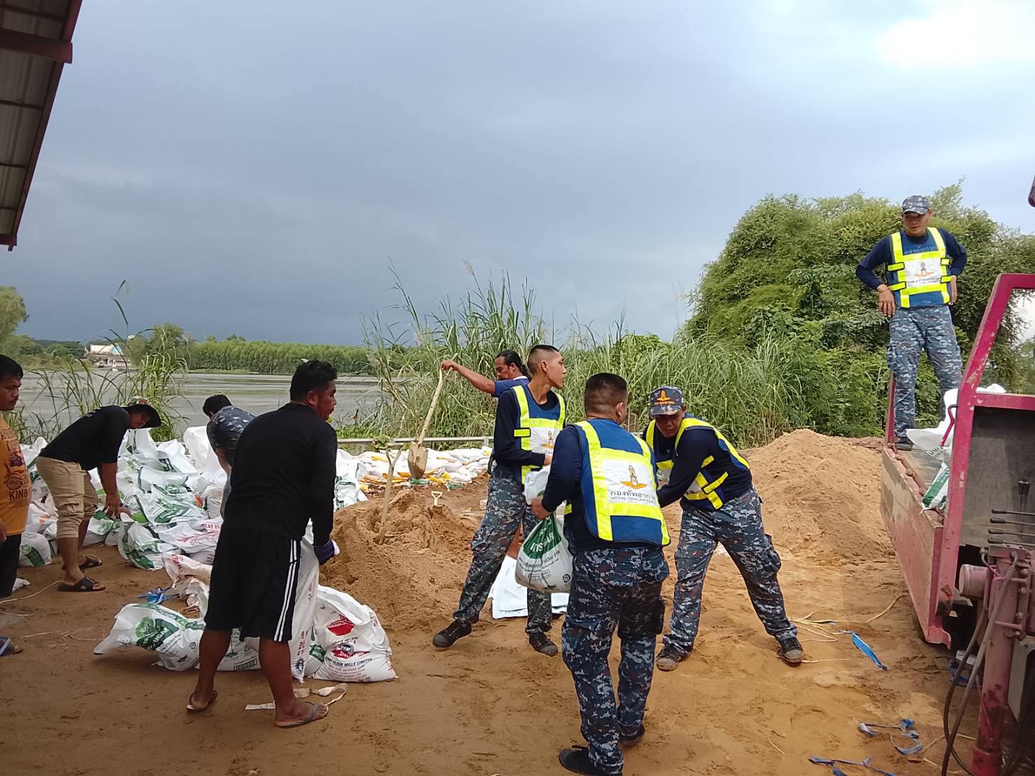 นาวาอากาศเอก วรพล ดิษฐ์แก้ว ผู้บังคับการกองบิน ๔ ในฐานะผู้อำนวยการศูนย์บรรเทาสาธารณภัยกองบิน ๔ มอบหมายให้ ศูนย์บรรเทาสาธารณภัยกองบิน ๔ นำกำลังพล พร้อมยานพาหนะ ร่วมกับเทศบาลตำบลบางหลวง เทศบาลตำบลเจ้าพระยา อำเภอสรรพยา จังหวัดชัยนาท และประชาชนในพื้นที่บรรจุพร้อมกับวางแนวกระสอบทรายเสริมคันกั้นน้ำ เพื่อป้องกันเข้าท่วมบ้านเรือนของประชาชนสร้างความเสียหายเป็นบริเวณกว้าง จนกว่าสถานการณ์จะกลับสู่ภาวะปกติ เมื่อวันที่ ๑๐ พฤศจิกายน ๒๕๖๘