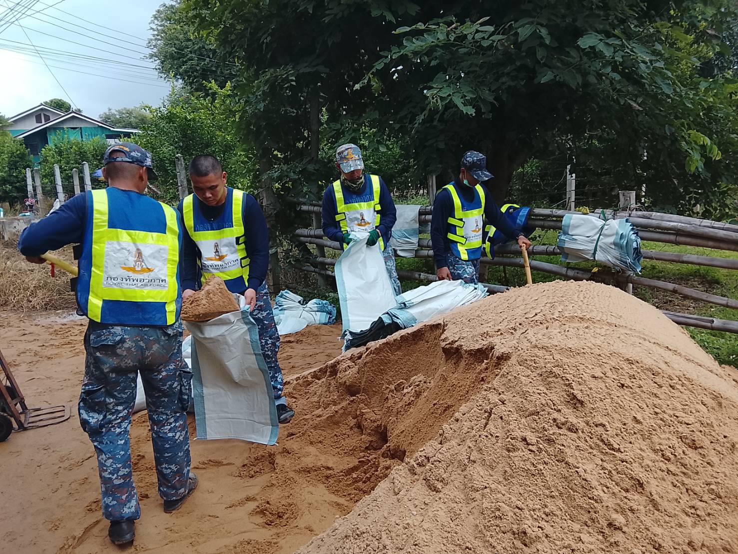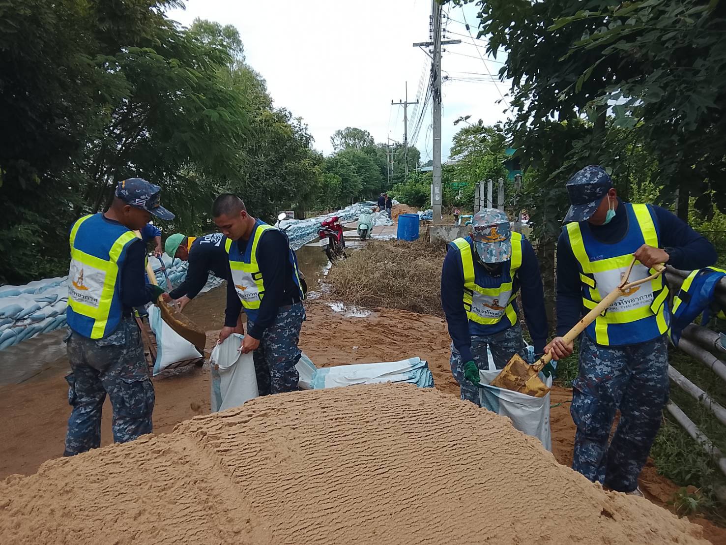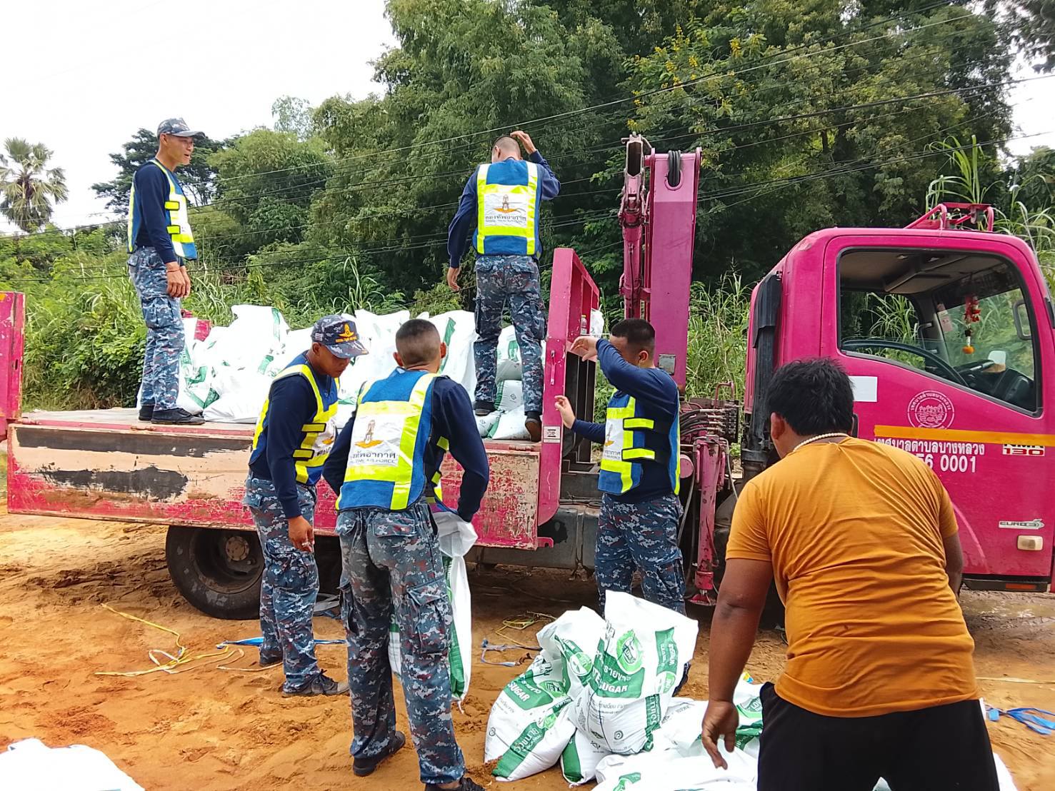 นาวาอากาศเอก วรพล ดิษฐ์แก้ว ผู้บังคับการกองบิน ๔ ในฐานะผู้อำนวยการศูนย์บรรเทาสาธารณภัยกองบิน ๔ มอบหมายให้ ศูนย์บรรเทาสาธารณภัยกองบิน ๔ นำกำลังพล พร้อมยานพาหนะ ร่วมกับเทศบาลตำบลบางหลวง เทศบาลตำบลเจ้าพระยา อำเภอสรรพยา จังหวัดชัยนาท และประชาชนในพื้นที่บรรจุพร้อมกับวางแนวกระสอบทรายเสริมคันกั้นน้ำ เพื่อป้องกันเข้าท่วมบ้านเรือนของประชาชนสร้างความเสียหายเป็นบริเวณกว้าง จนกว่าสถานการณ์จะกลับสู่ภาวะปกติ เมื่อวันที่ ๑๐ พฤศจิกายน ๒๕๖๘