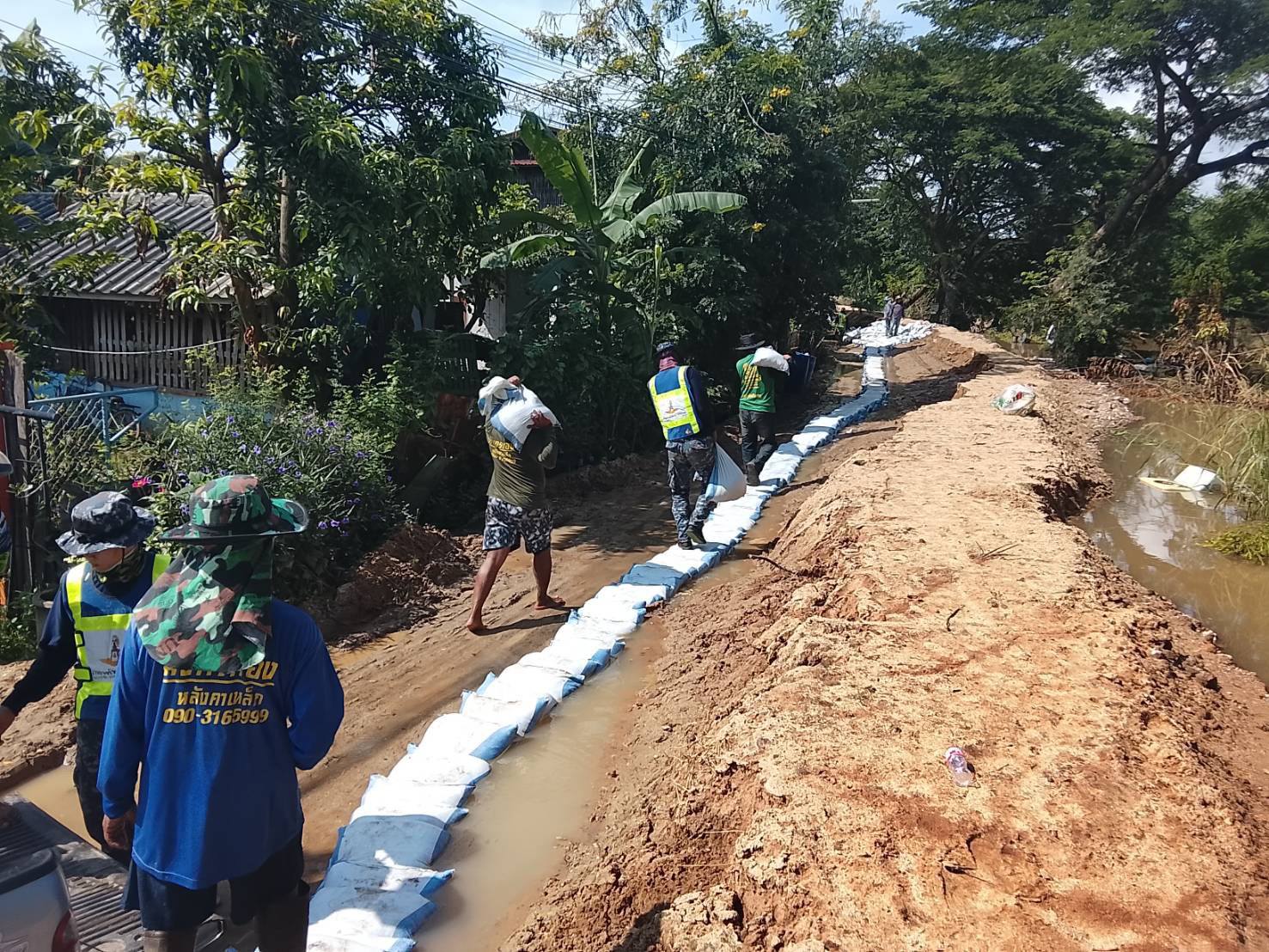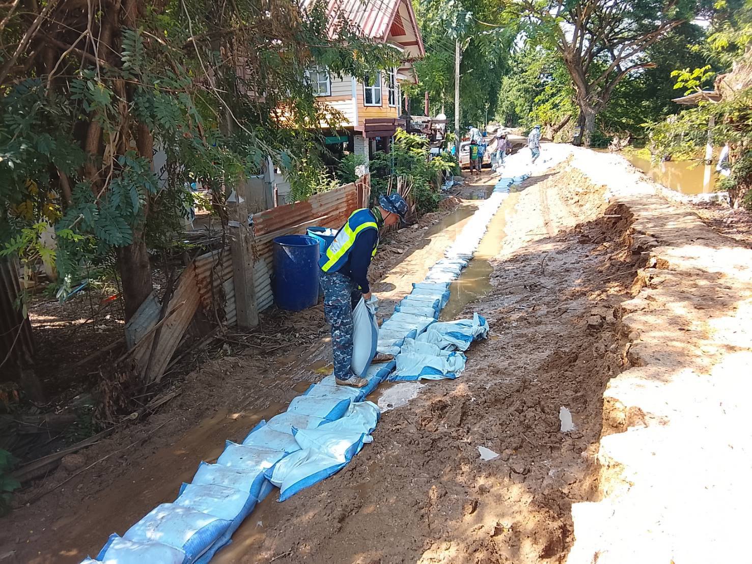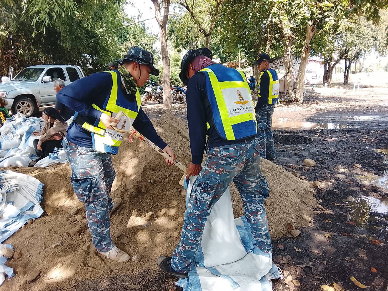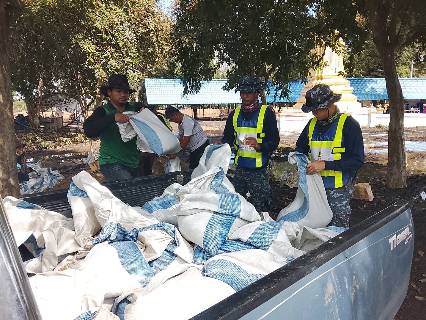 นาวาอากาศเอก วรพล ดิษฐ์แก้ว ผู้บังคับการกองบิน ๔ ในฐานะผู้อำนวยการศูนย์บรรเทาสาธารณภัยกองบิน ๔ มอบหมายให้ ศูนย์บรรเทาสาธารณภัยกองบิน ๔ นำกำลังพล พร้อมยานพาหนะ ร่วมกับเทศบาลตำบลบางหลวง เทศบาลตำบลเจ้าพระยา อำเภอสรรพยา จังหวัดชัยนาท และประชาชนในพื้นที่บรรจุพร้อมกับวางแนวกระสอบทรายเสริมคันกั้นน้ำ เพื่อป้องกันเข้าท่วมบ้านเรือนของประชาชนสร้างความเสียหายเป็นบริเวณกว้าง เมื่อวันที่ ๑๓ พฤศจิกายน ๒๕๖๘