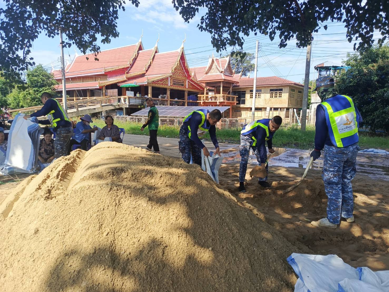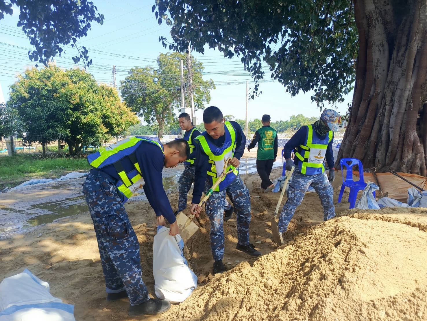 นาวาอากาศเอก วรพล ดิษฐ์แก้ว ผู้บังคับการกองบิน ๔ ในฐานะผู้อำนวยการศูนย์บรรเทาสาธารณภัยกองบิน ๔ มอบหมายให้ ศูนย์บรรเทาสาธารณภัยกองบิน ๔ นำกำลังพล พร้อมยานพาหนะ ร่วมกับเทศบาลตำบลเจ้าพระยา อำเภอสรรพยา จังหวัดชัยนาท และประชาชนในพื้นที่บรรจุพร้อมกับวางแนวกระสอบทรายเสริมคันกั้นน้ำ เพื่อป้องกันเข้าท่วมบ้านเรือนของประชาชนสร้างความเสียหายเป็นบริเวณกว้าง เมื่อวันที่ ๑๕ พฤศจิกายน ๒๕๖๘