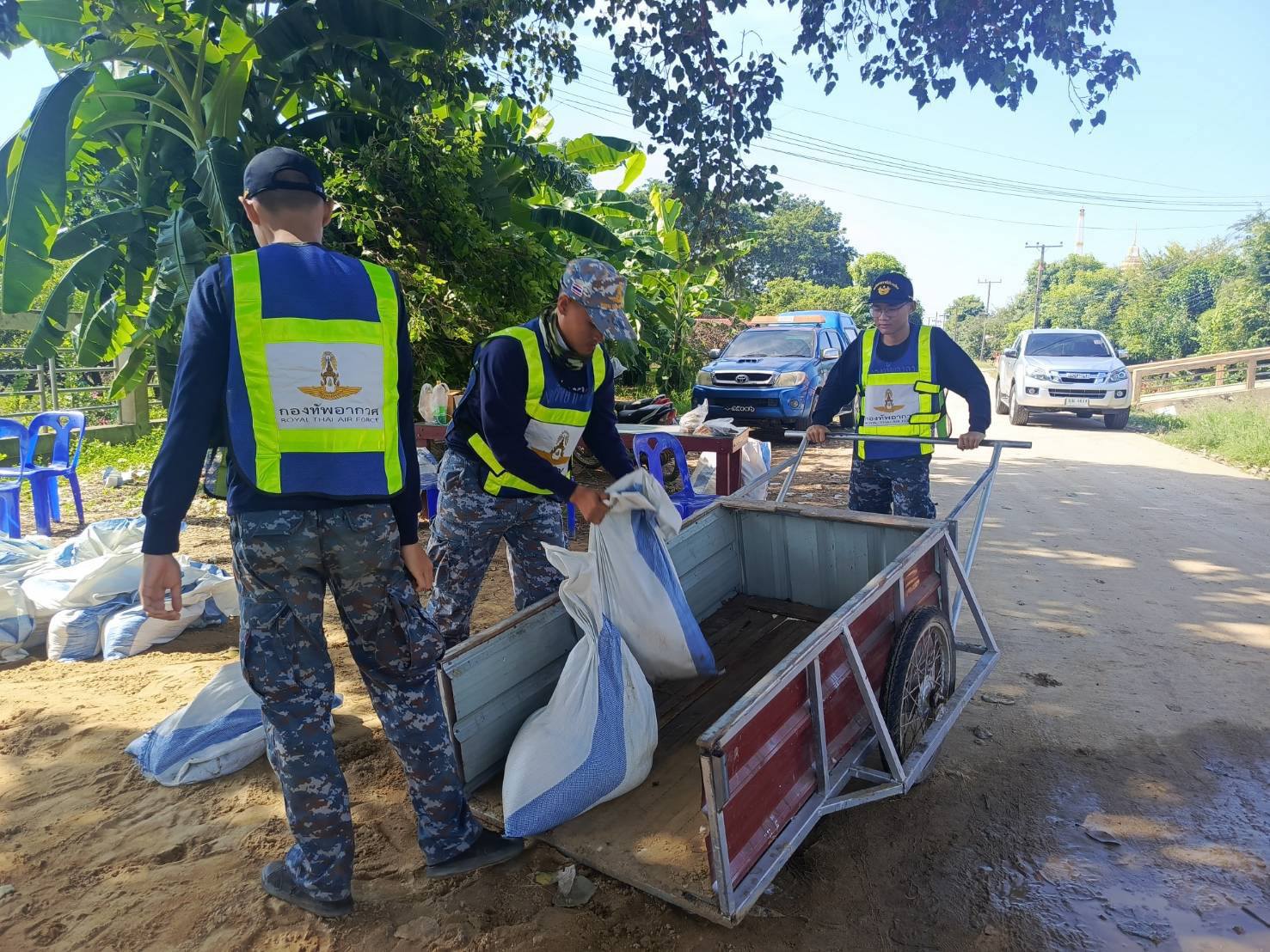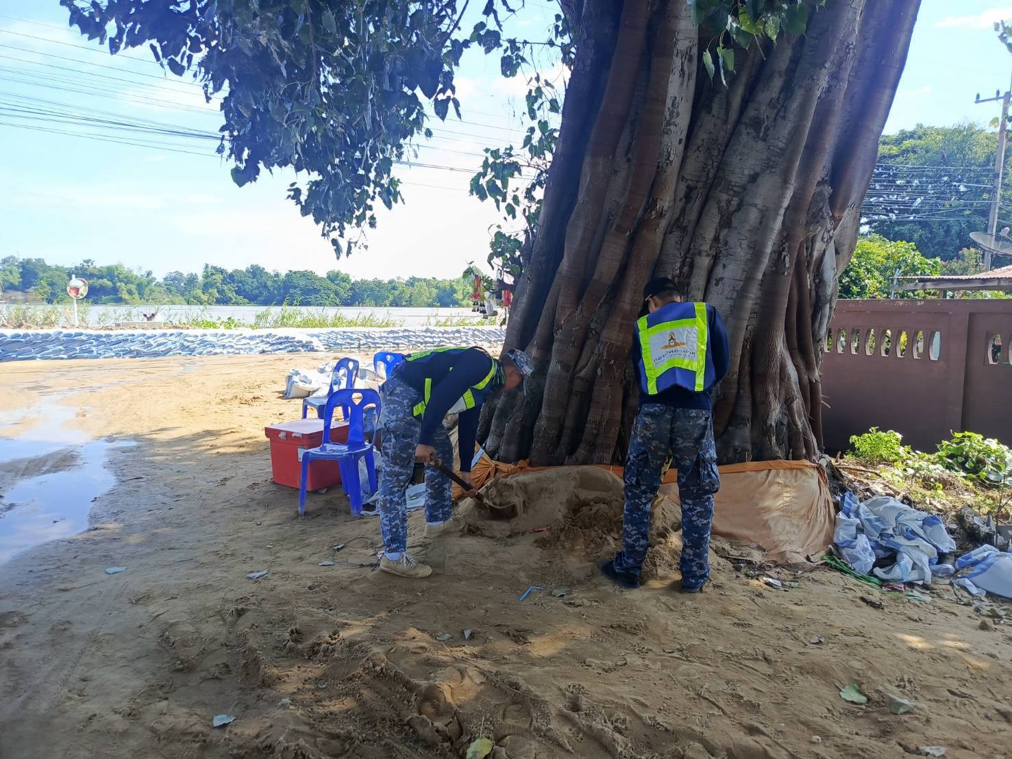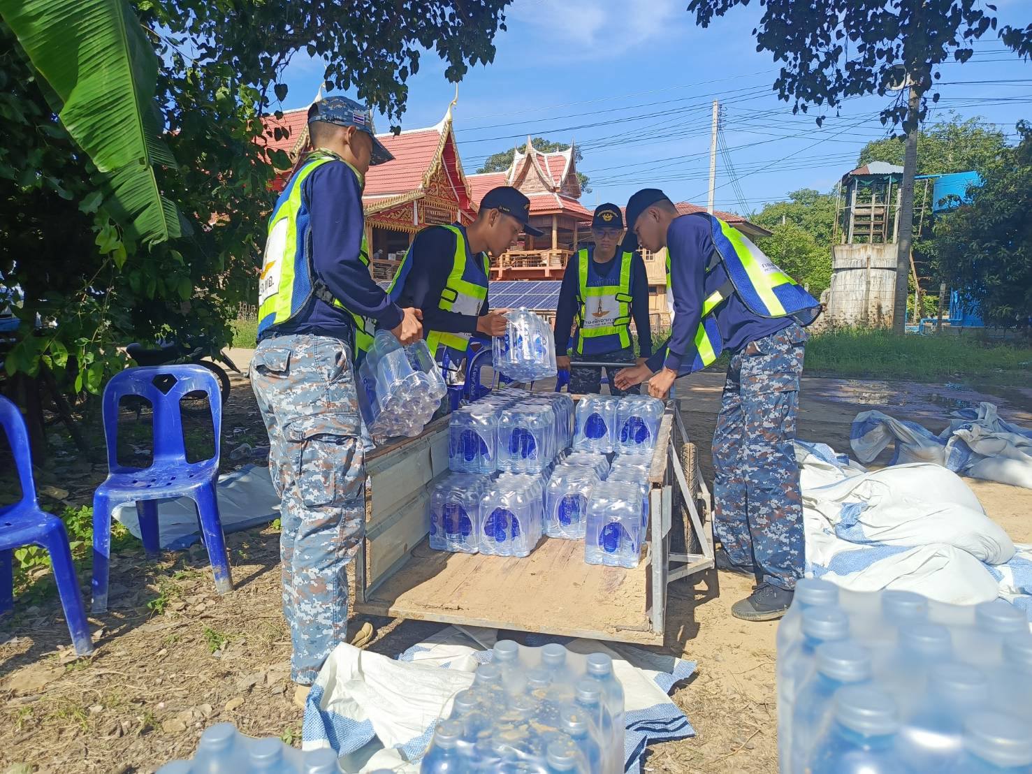 นาวาอากาศเอก วรพล ดิษฐ์แก้ว ผู้บังคับการกองบิน ๔ ในฐานะผู้อำนวยการศูนย์บรรเทาสาธารณภัยกองบิน ๔ มอบหมายให้ ศูนย์บรรเทาสาธารณภัยกองบิน ๔ นำกำลังพล พร้อมยานพาหนะ ร่วมกับเทศบาลตำบลเจ้าพระยา อำเภอสรรพยา จังหวัดชัยนาท และประชาชนในพื้นที่บรรจุพร้อมกับวางแนวกระสอบทรายเสริมคันกั้นน้ำ การช่วยขนย้ายสิ่งของ เพื่อบรรเทาความเดือดร้อนของประชาชน เมื่อวันที่ ๑๖ พฤศจิกายน ๒๕๖๘