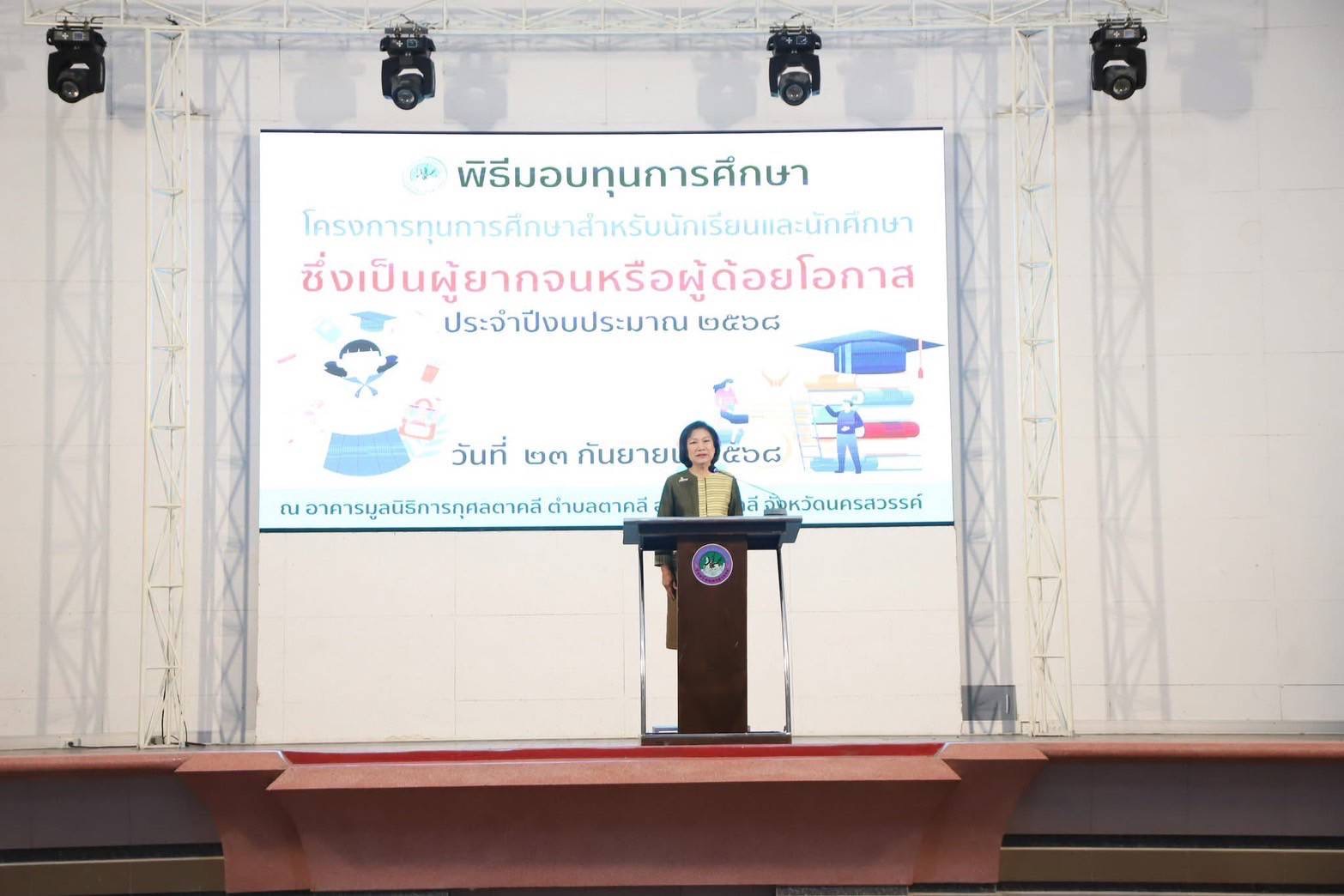 นาวากาศเอก วรพล ดิษฐ์แก้ว ผู้บังคับการกองบิน ๔ มอบหมายให้ นาวาอากาศเอก ภิญโญ ต๊อดแก้ว ร่วมมอบทุนการศึกษา ของเทศบาลเมืองตาคลี เพื่อให้เยาวชนในเขตเทศบาลที่ขาดแคลนได้รับโอกาสด้านการศึกษา ณ อาคารมูลนิธิการกุศลตาคลี อำเภอตาคลี จังหวัดนครสวรรค์ เมื่อวันที่ ๒๓ กันยายน ๒๕๖๘
