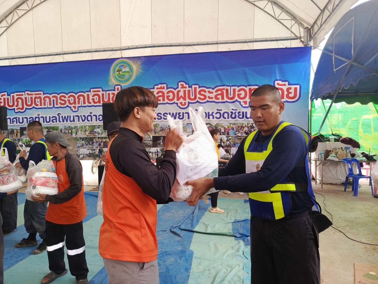 นาวาอากาศเอก วรพล ดิษฐ์แก้ว ผู้บังคับการกองบิน ๔ ในฐานะ ผู้อำนวยการศูนย์บรรเทาสาธารณภัยกองบิน ๔ มอบหมายให้ ศูนย์บรรเทาสาธารณภัยกองบิน ๔ นำกำลังพล พร้อมยานพาหนะ สนับสนุนเทศบาลตำบลโพนางดำออก ในการจัดเตรียมสถานที่สำหรับมอบเครื่องอุปโภค - บริโภค ให้กับประชาชนที่ได้รับความเดือดร้อนจากเหตุอุทกภัย ณ ศูนย์ปฏิบัติการฉุกเฉินช่วยเหลือผู้ประสบภัย เทศบาลตำบลโพนางดำออก อำเภอสรรพยา จังหวัดชัยนาท เมื่อวันที่ ๑๓ ตุลาคม ๒๕๖๘