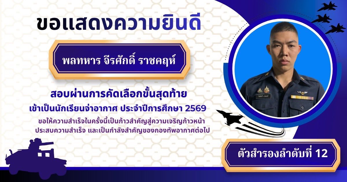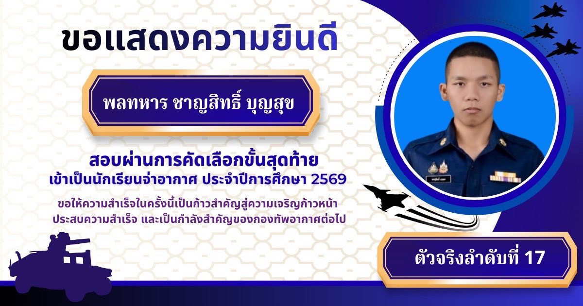 เริ่มเขียน “ความพยายาม นำมาซึ่งความสำเร็จ”ขอแสดงความยินดีกับทหารกองประจำการกองพันทหารอากาศโยธิน กองบิน 4ที่สอบติดเป็นนักเรียนจ่าอากาศ ประจำปี 2569จำนวน 4 นาย ดังนี้