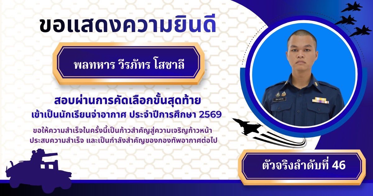 2. พลทหาร วีรภัทร โสชาลีสอบได้ตัวจริง ลำดับที่ 46
