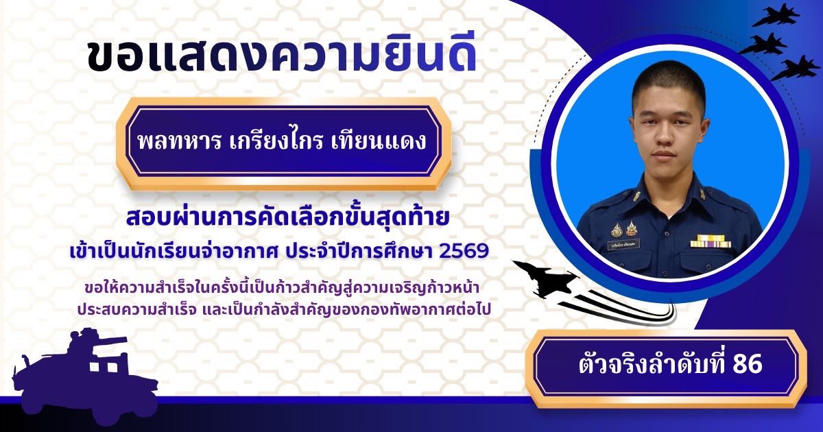 3. พลทหาร เกรียงไกร เทียนแดงสอบได้ตัวจริง ลำดับที่ 86