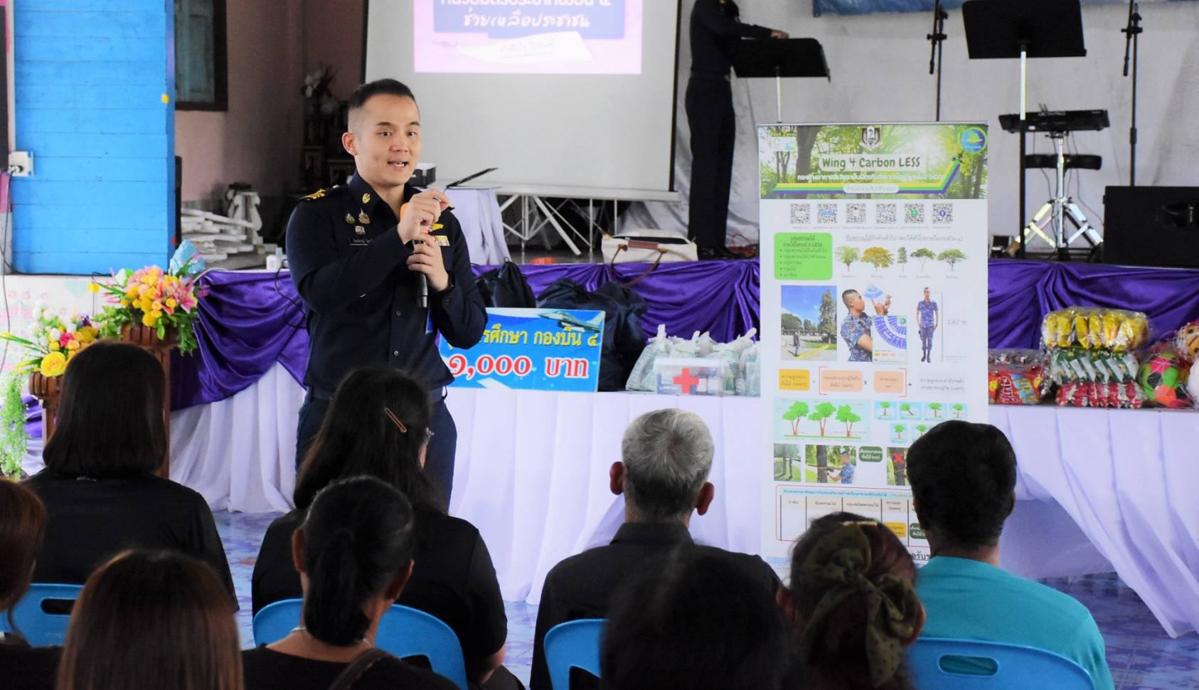 กองบิน ๔ ดำเนินโครงการ “Wing 4 Carbon LESS – กองทัพอากาศสีเขียว เป็นมิตรกับสิ่งแวดล้อม“ เพื่อเสริมสร้างจิตสำนึกด้านการอนุรักษ์สิ่งแวดล้อม ส่งเสริมความร่วมมือกับชุมชน โดยได้จัดกิจกรรมร่วมกับประชาชนบ้านหนองเต็งรัง ณ รร.บ้านหนองเต็งรัง ตำบลหนองโพ อำเภอตาคลี จังหวัดนครสวรรค์ เมื่อวันที่ ๑๔ พฤศจิกายน ๒๕๖๘