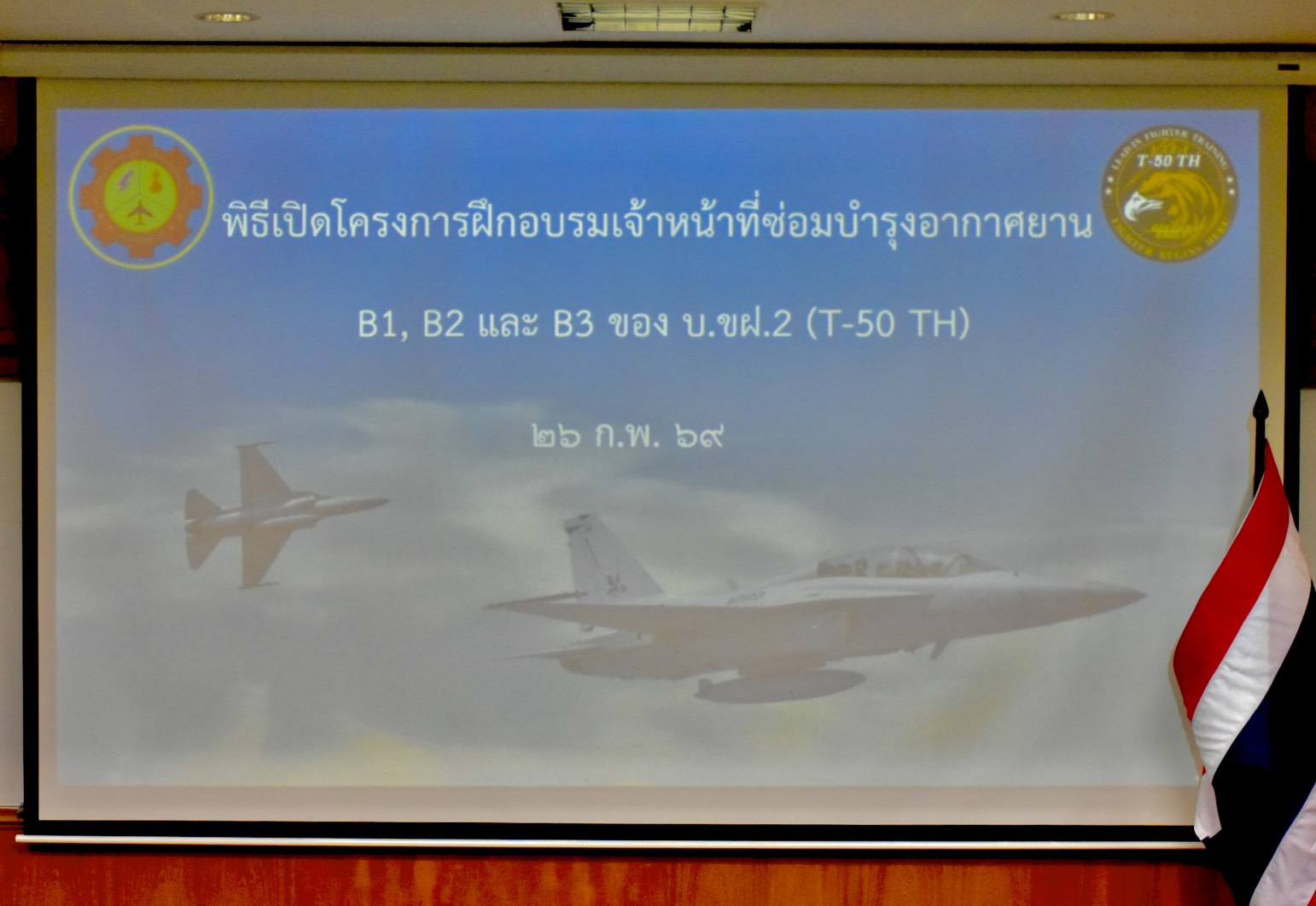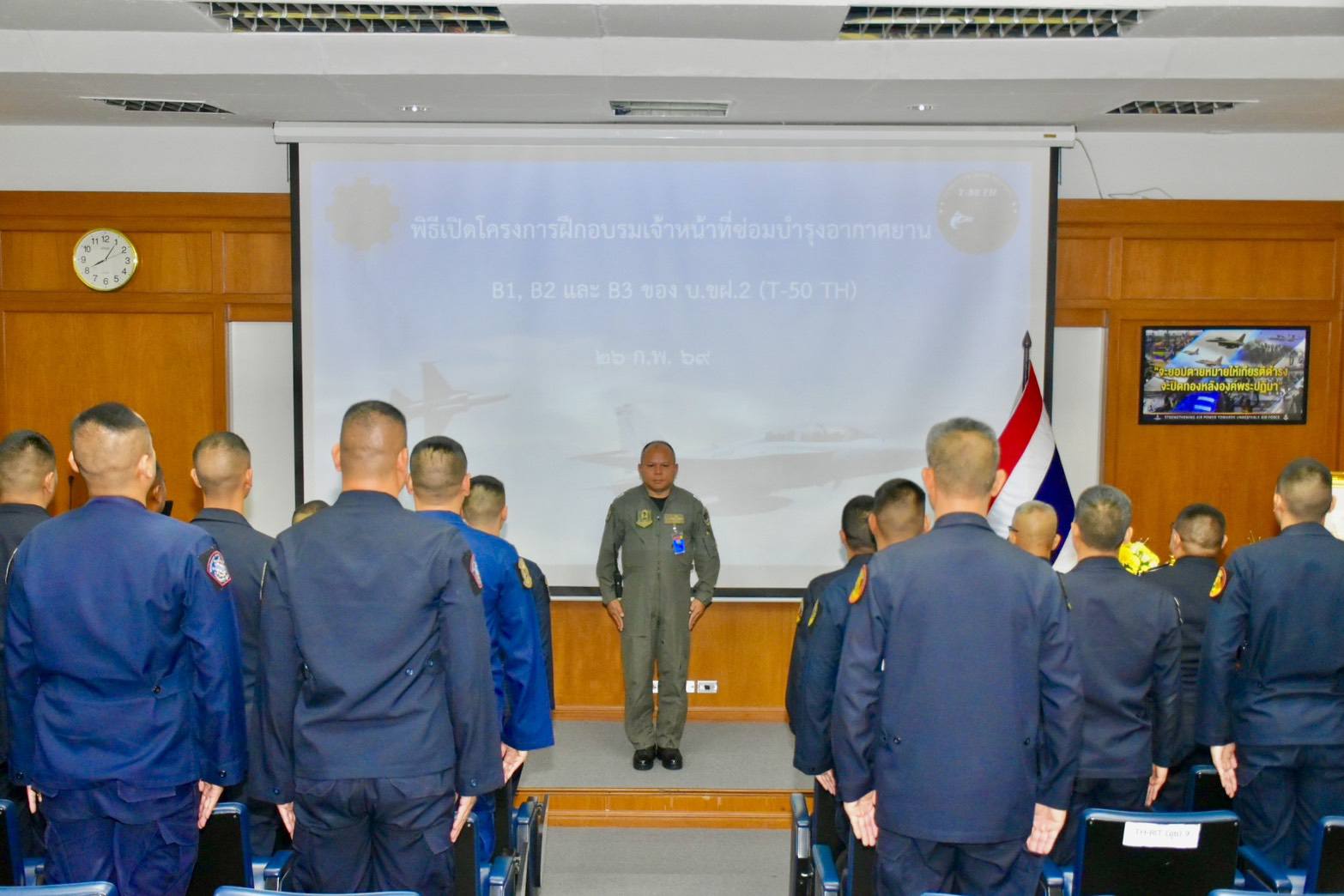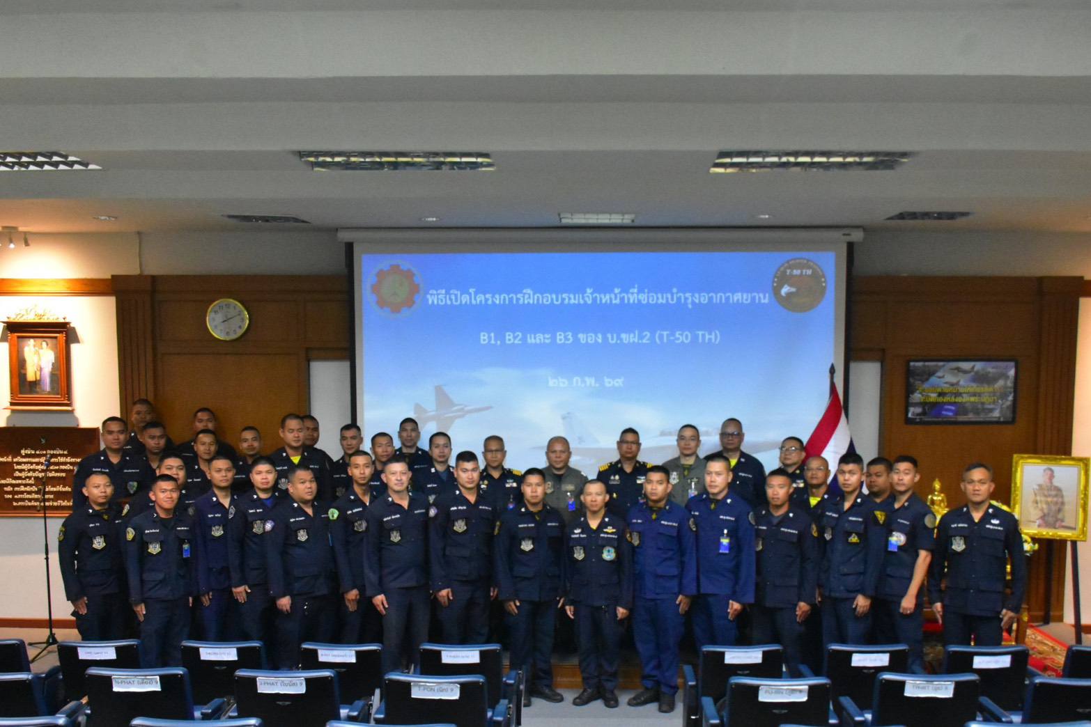 นาวาอากาศเอก วรพล ดิษฐ์แก้ว ผู้บังคับการกองบิน ๔ มอบหมายให้ นาวาอากาศเอก อาณัติ สิงห์เมืองพล รองผู้บังคับการกองบิน ๔ เป็นประธานในพิธีเปิดโครงการฝึกอบรมเจ้าหน้าที่ซ่อมบำรุงอากาศยานระดับ B1, B2 และ B3 ของเครื่องบินขับไล่ฝึกแบบที่ ๒ (T-50 TH) ณ ฝูงบิน ๔๐๑ กองบิน ๔ อำเภอตาคลี จังหวัดนครสวรรค์ เมื่อวันที่ ๒๖ กุมภาพันธ์ ๒๕๖๙