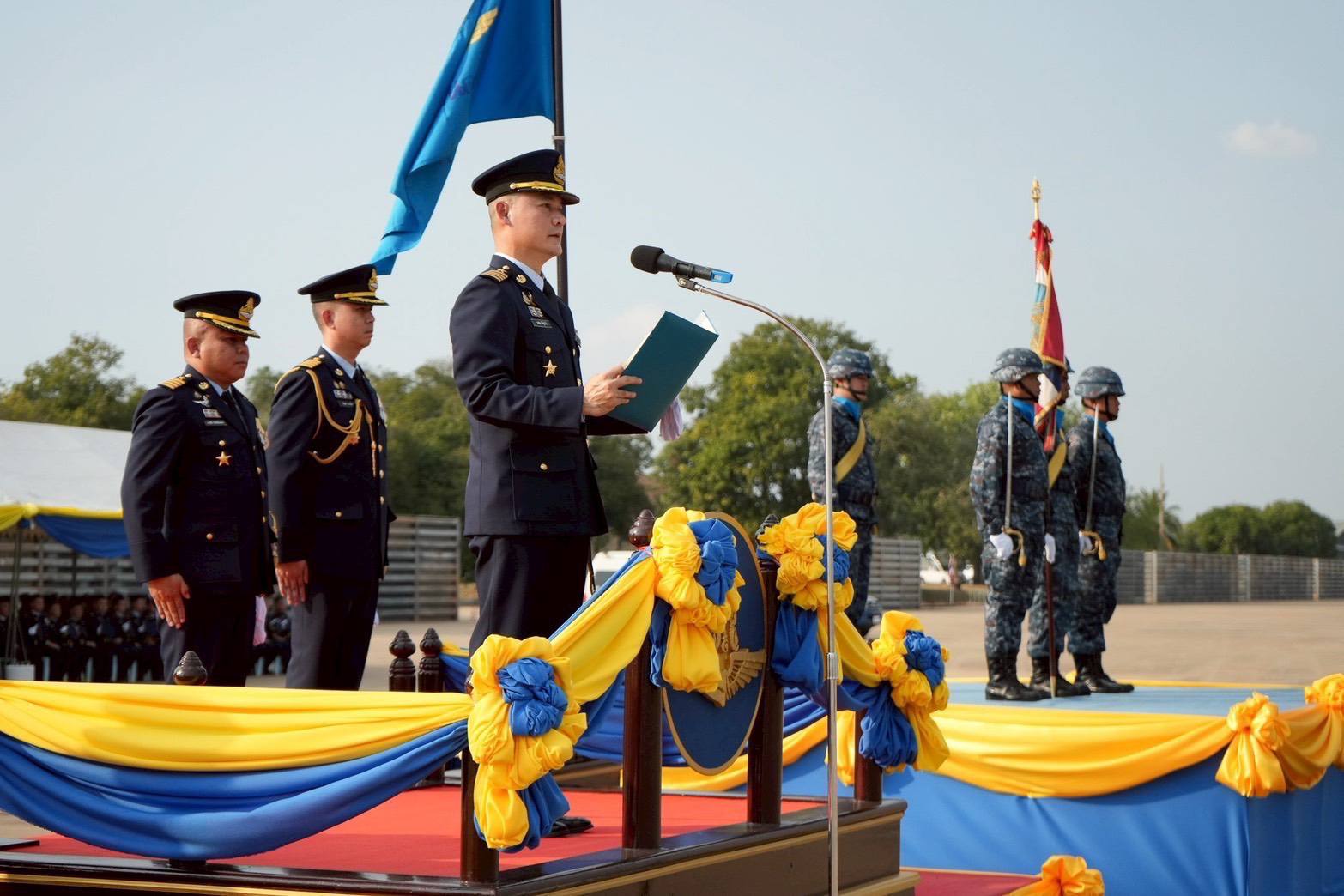 นาวาอากาศเอก วรพล ดิษฐ์แก้ว ผู้บังคับการกองบิน ๔ นำข้าราชการ ทหารกองประจำการ ประกอบพิธีกระทำสัตย์ปฏิญาณตนต่อธงชัยเฉลิมพล เนื่องในวันกองทัพไทย ประจำปี ๒๕๖๙ โดยจัดกำลังพลจากกองพันทหารอากาศโยธินกองบิน ๔ รวมถึงนายทหารสัญญาบัตร นายทหารชั้นประทวน และทหารกองประจำการ ที่ยังไม่เคยเข้าร่วมพิธีฯ ได้เข้าร่วมพิธีฯ ซึ่งเป็นธรรมเนียมปฏิบัติบุคคลที่เข้ามารับราชการทหารต้องเข้าร่วมในการปฏิญาณตนต่อธงชัยเฉลิมพล จึงจะถือว่าเป็นทหารโดยสมบูรณ์ และยังได้รับเกียรติจากหัวหน้าส่วนราชการในพื้นที่ เข้าร่วมในพิธีฯ ณ กองบิน ๔ อำเภอตาคลี จังหวัดนครสวรรค์ เมื่อวันที่ ๑๘ มกราคม ๒๕๖๙