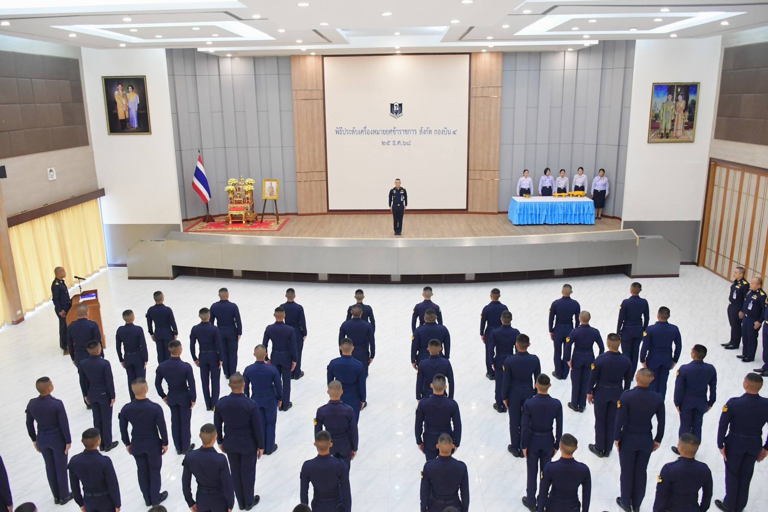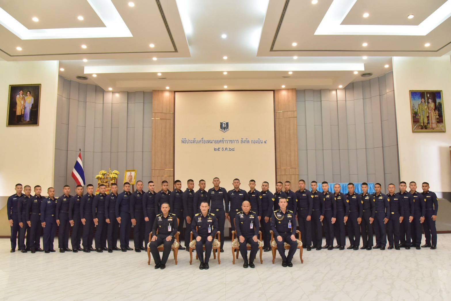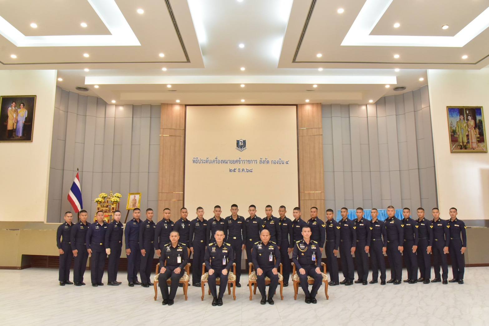 นาวาอากาศเอก วรพล ดิษฐ์แก้ว ผู้บังคับการกองบิน ๔ เป็นประธานในพิธีประดับเครื่องหมายยศนายทหารชั้นประทวน สังกัดกองบิน ๔ ที่ได้รับการเลื่อนยศที่สูงขึ้น พร้อมกับร่วมแสดงความยินดีในโอกาสนี้ ณ อาคารรณนภา กองบิน ๔ อำเภอตาคลี จังหวัดนครสวรรค์ เมื่อวันที่ ๒๕ ธันวาคม ๒๕๖๘