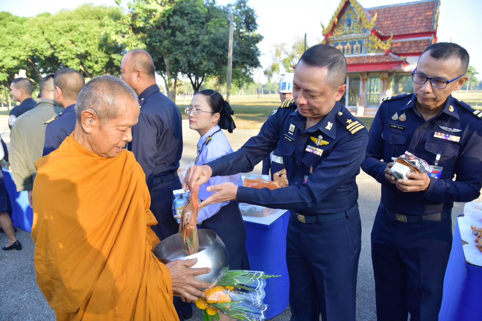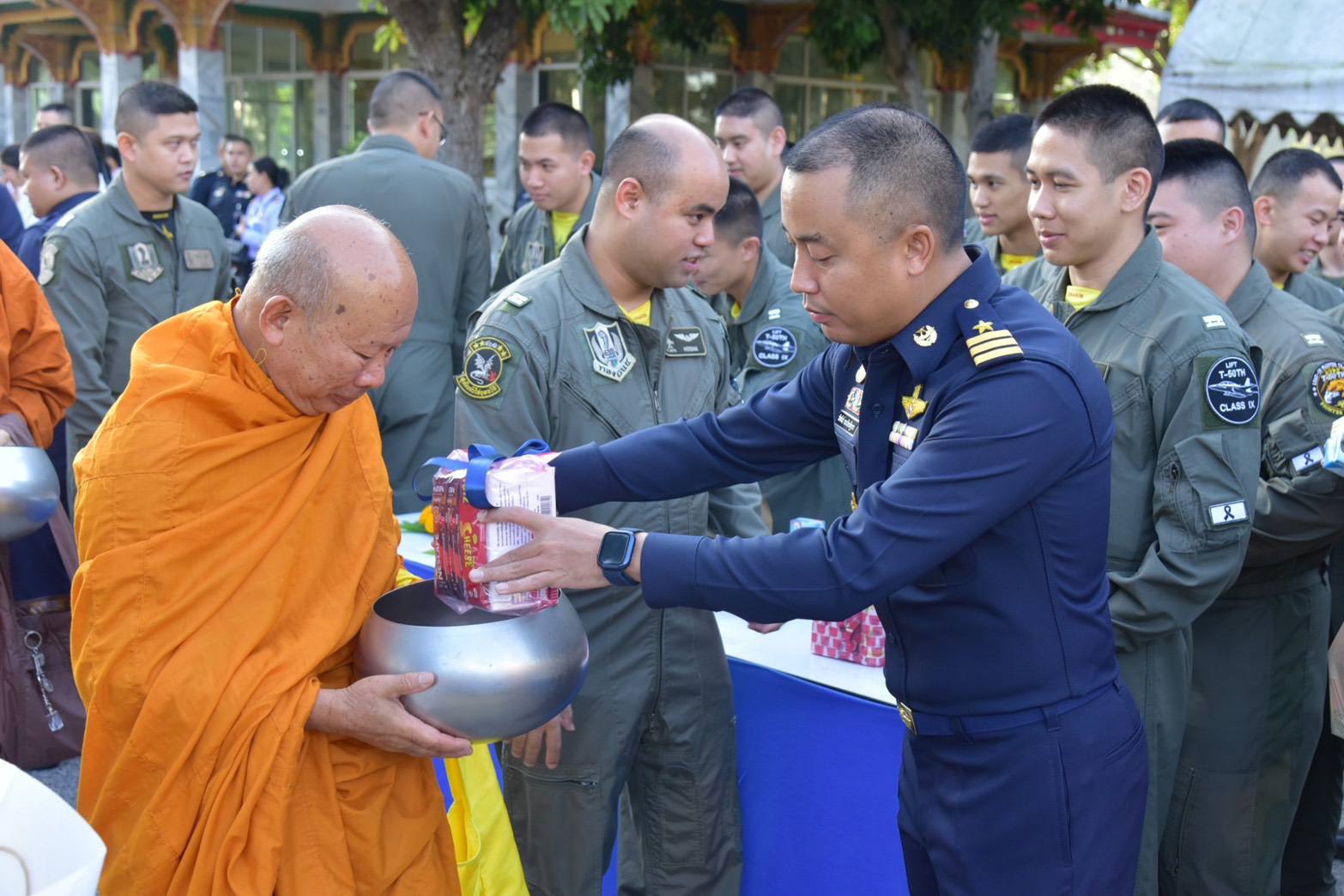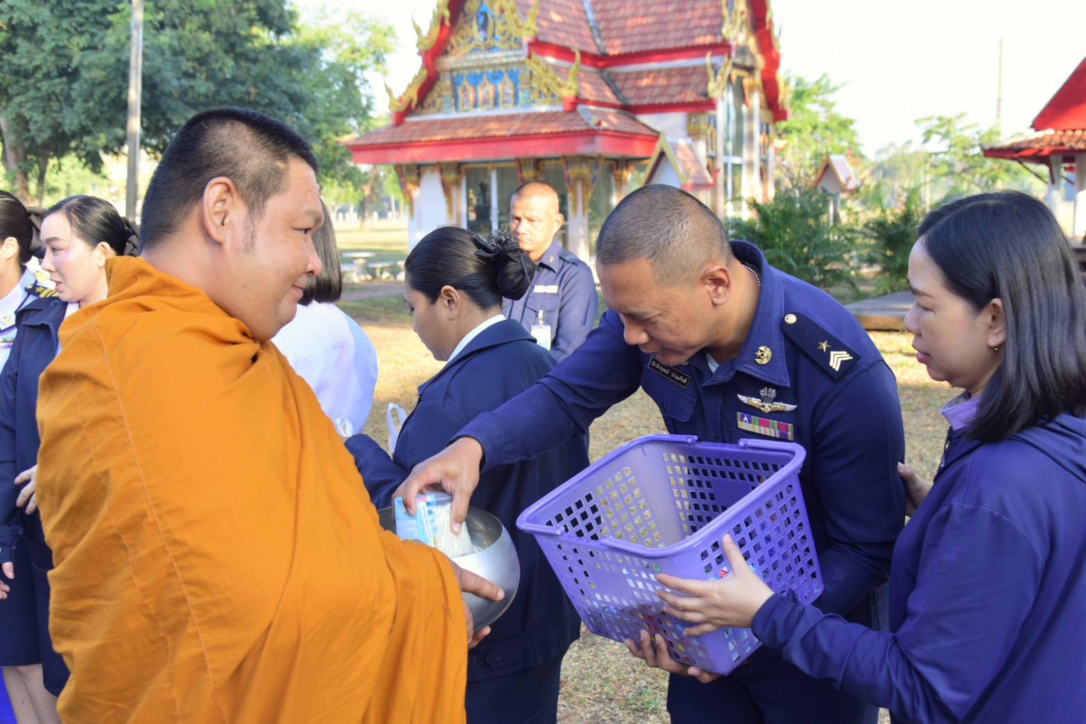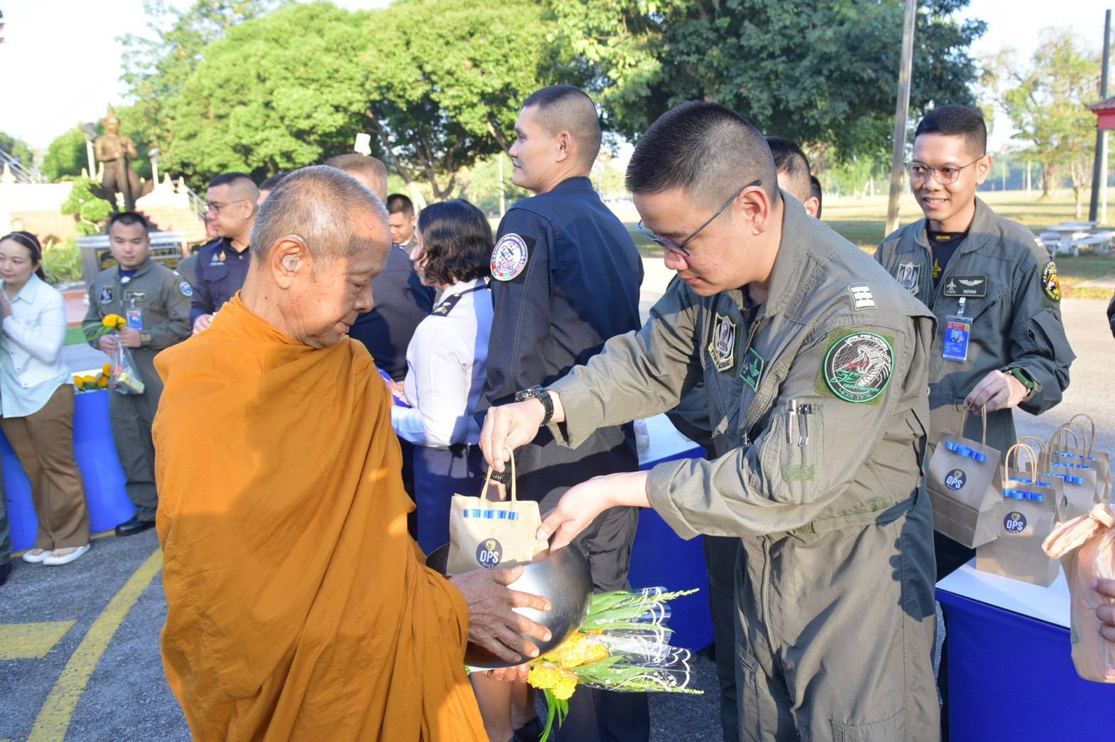 นาวาอากาศเอก วรพล ดิษฐ์แก้ว ผู้บังคับการกองบิน ๔ พร้อมด้วย ข้าราชการ ลูกจ้าง พนักงานราชการ ทหารกองประจำการ สมาชิกชมรมคู่สมรสทหารอากาศกองบิน ๔ และครอบครัว ประกอบพิธีทำบุญตักบาตรข้าวสารอาหารแห้ง เพื่อความเป็นสิริมงคล เนื่องในโอกาสวันขึ้นปีใหม่ พุทธศักราช ๒๕๖๙ ณ วิหารพระพุทธจตุรากาศยานประธาน (หลวงพ่อเพชร) กองบิน ๔ อำเภอตาคลี จังหวัดนครสวรรค์ เมื่อวันที่ ๒๙ ธันวาคม ๒๕๖๘
