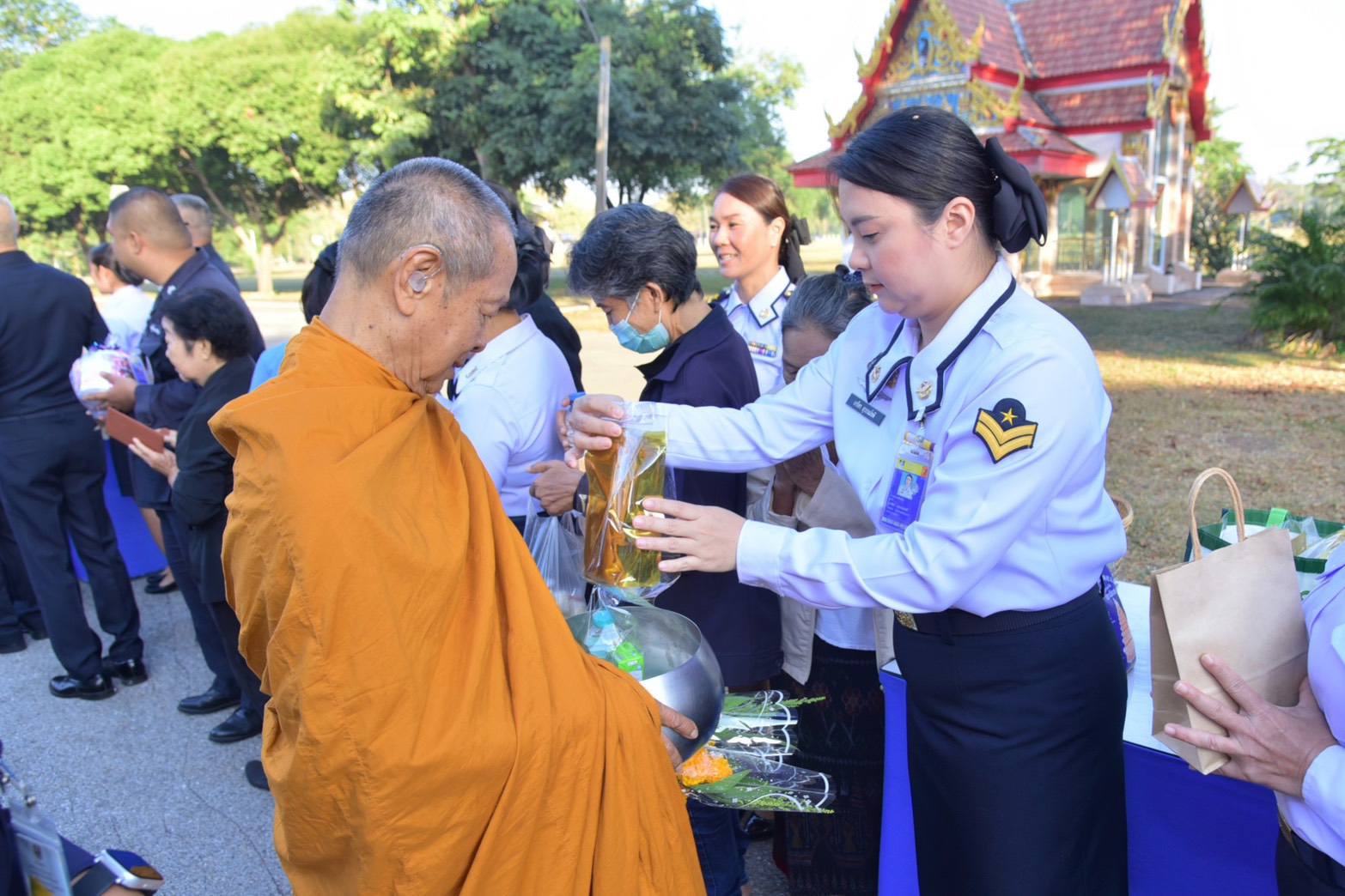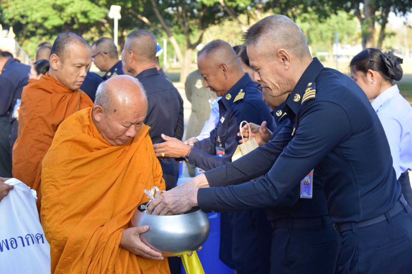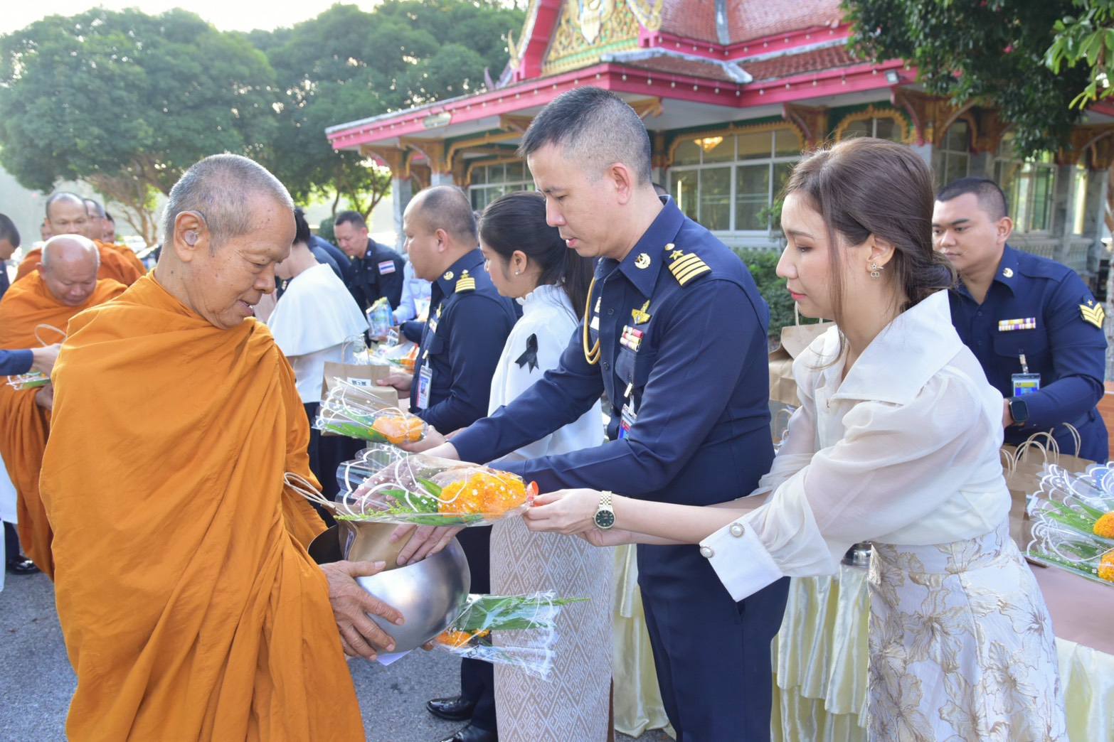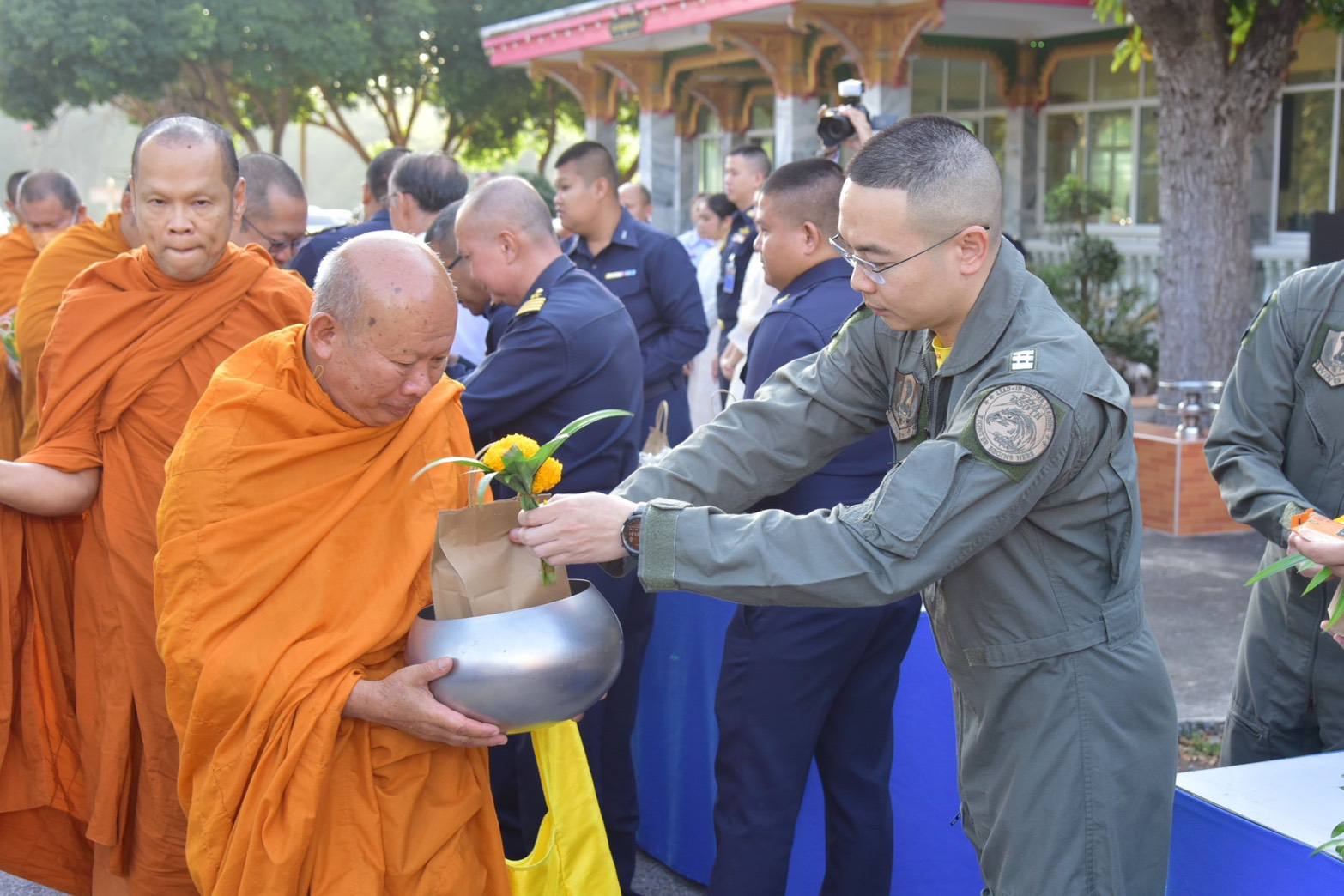 นาวาอากาศเอก วรพล ดิษฐ์แก้ว ผู้บังคับการกองบิน ๔ พร้อมด้วย ข้าราชการ ลูกจ้าง พนักงานราชการ ทหารกองประจำการ สมาชิกชมรมคู่สมรสทหารอากาศกองบิน ๔ และครอบครัว ประกอบพิธีทำบุญตักบาตรข้าวสารอาหารแห้ง เพื่อความเป็นสิริมงคล เนื่องในโอกาสวันขึ้นปีใหม่ พุทธศักราช ๒๕๖๙ ณ วิหารพระพุทธจตุรากาศยานประธาน (หลวงพ่อเพชร) กองบิน ๔ อำเภอตาคลี จังหวัดนครสวรรค์ เมื่อวันที่ ๒๙ ธันวาคม ๒๕๖๘