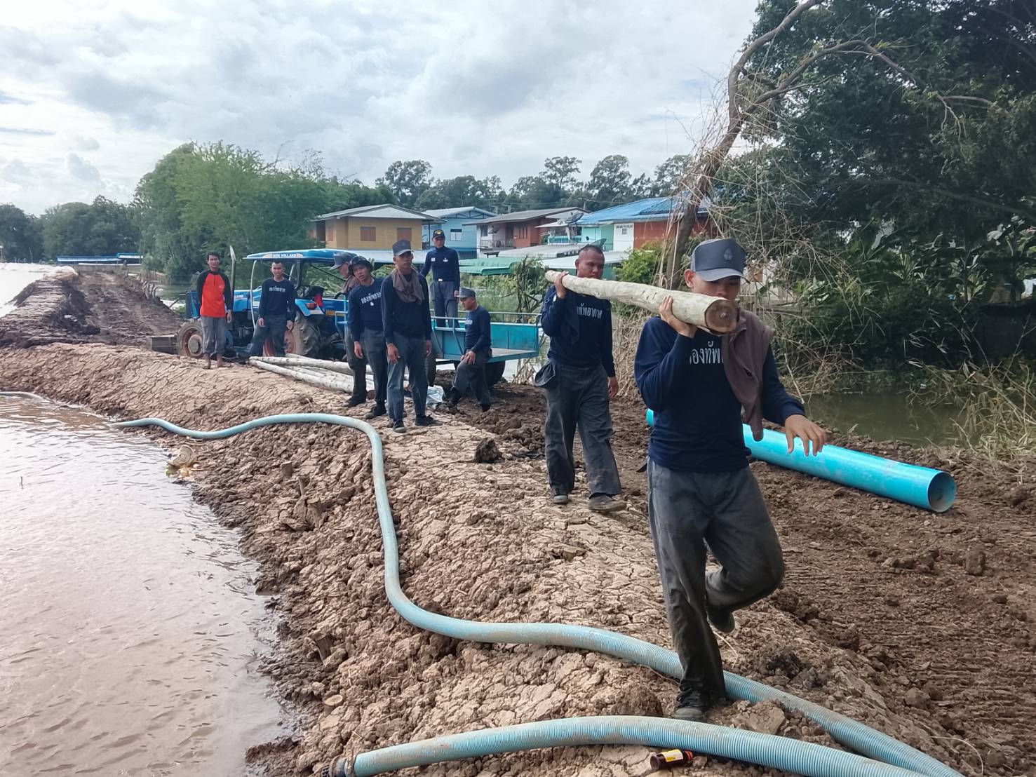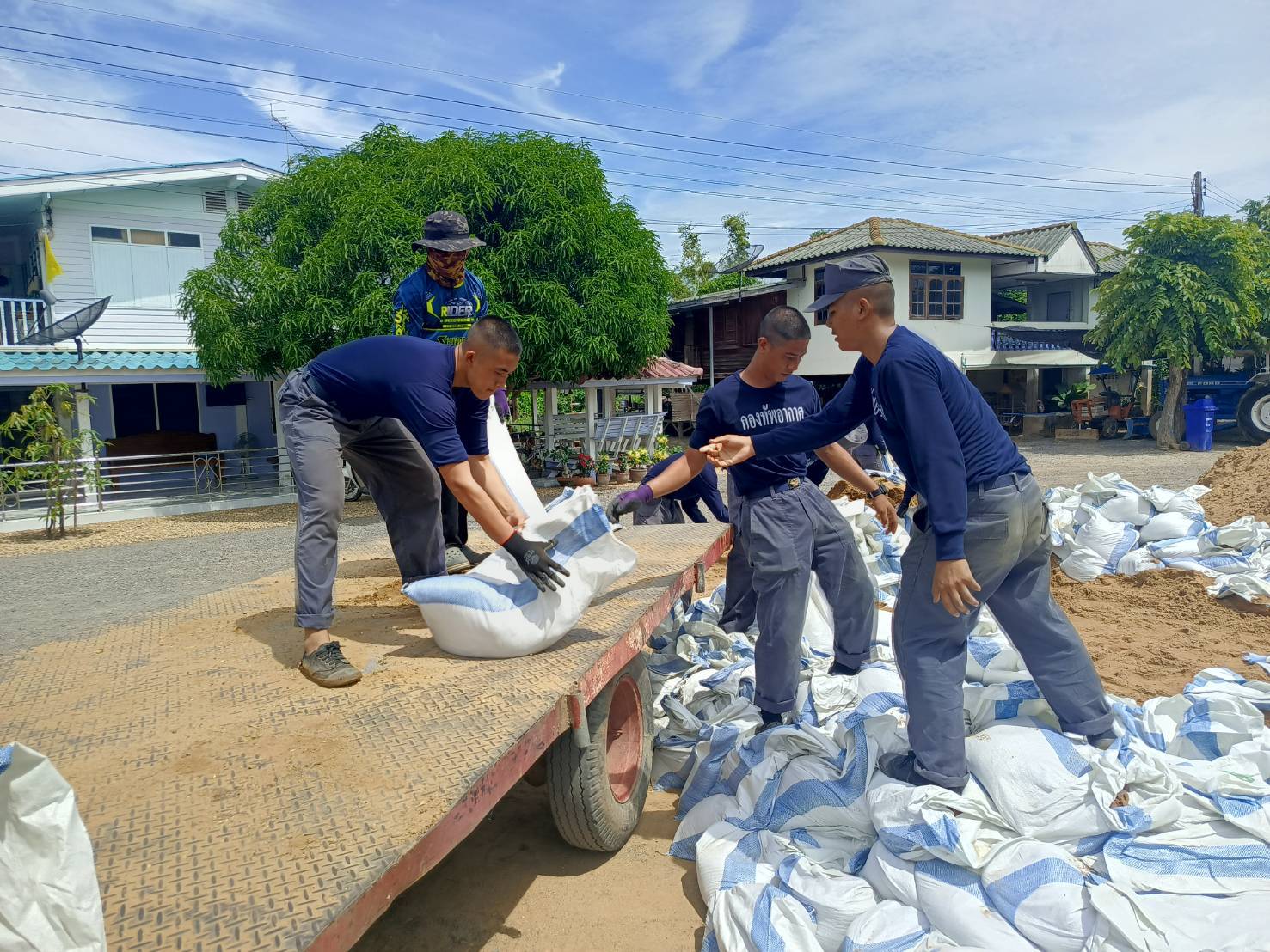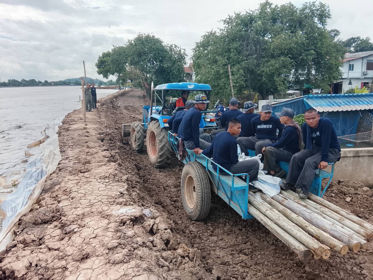 นาวาอากาศเอก วรพล ดิษฐ์แก้ว ผู้บังคับการกองบิน ๔ ในฐานะ ผู้อำนวยการศูนย์บรรเทาสาธารณภัยกองบิน ๔ มอบหมายให้ ศูนย์บรรเทาสาธารณภัยกองบิน ๔ นำเจ้าหน้าที่ พร้อมกำลังพล และยานพาหนะ ให้การช่วยเหลือประชาชนในพื้นที่ตำบลโพนางดำออก ตำบลบางหลวง และตำบลตลุก ในการขนย้ายอุปกรณ์และติดตั้งเสาเข็มกันคันดินถล่ม รวมถึงบรรจุกระสอบทราย วางแนวกระสอบทราย และทำคันดินกั้นน้ำ เนื่องจากระดับน้ำยังมีแนวโน้มจะล้นตลิ่ง เข้าท่วมบ้านเรือนของประชาชน โดยศูนย์บรรเทาสาธารณภัยกองบิน ๔ ยังคงให้การช่วยเหลือประชาชนอย่างต่อเนื่อง จนกว่าสถานการณ์จะกลับเข้าสู่ภาวะปกติ เมื่อวันที่ ๒๔ กันยายน ๒๕๖๘