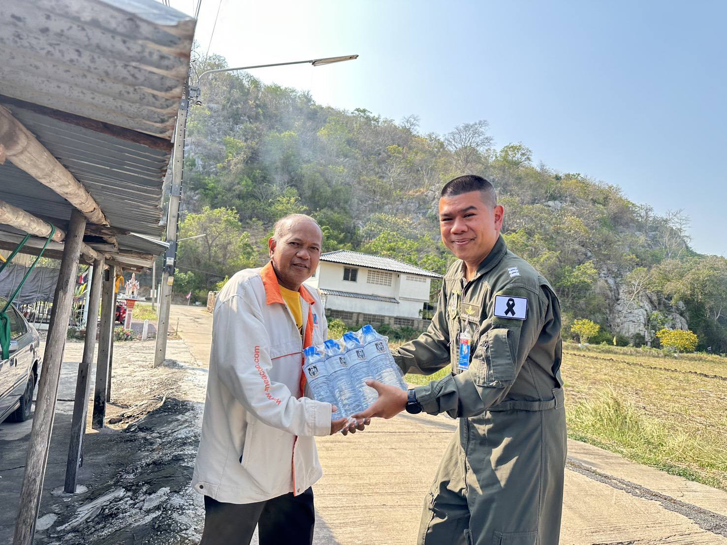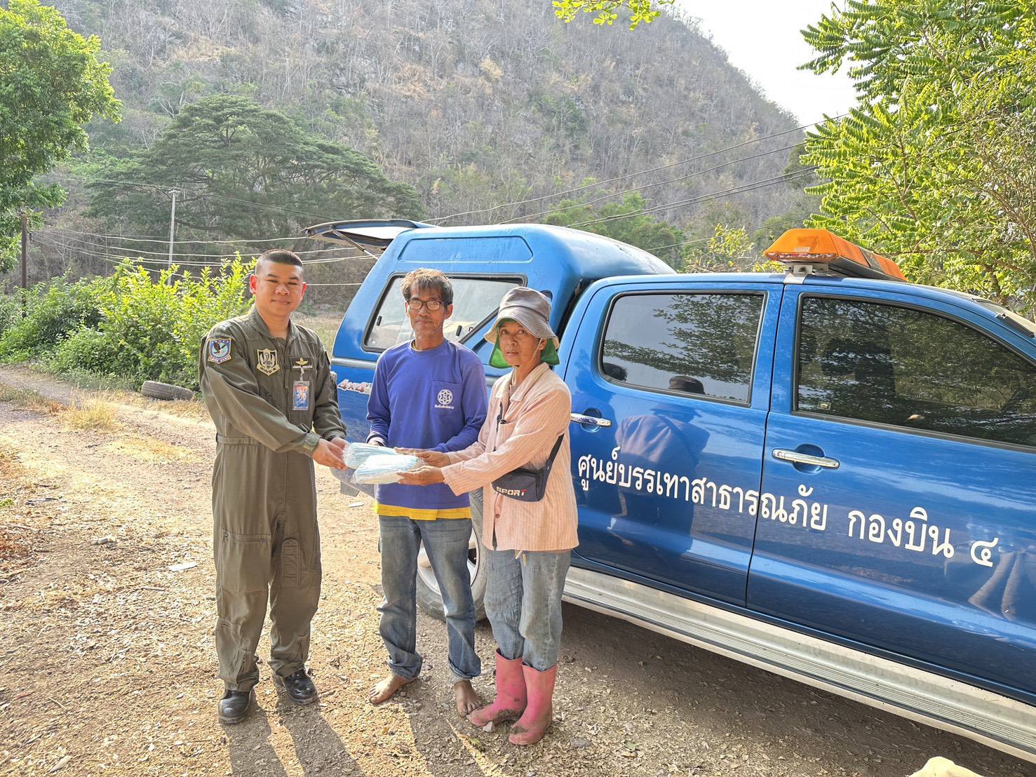 นาวาอากาศเอก วรพล ดิษฐ์แก้ว ผู้บังคับการกองบิน ๔ ในฐานะผู้อำนวยการศูนย์บรรเทาสาธารณภัยกองบิน ๔ มอบหมายให้ ศูนย์บรรเทาสาธารณภัยกองบิน ๔ ลงพื้นที่มอบน้ำดื่มและหน้ากากอนามัยให้แก่ประชาชนบริเวณหมู่ที่ ๕ หมู่ที่ ๖ และพื้นที่วัดเขาฝา รวมถึงประชาชนโดยรอบ ตำบลช่องแค อำเภอตาคลี จังหวัดนครสวรรค์ เพื่อบรรเทาผลกระทบจากฝุ่นละอองขนาดเล็ก PM2.5 และสถานการณ์ภัยแล้งที่ส่งผลต่อการดำรงชีวิตของประชาชน เมื่อวันที่ ๙ มีนาคม ๒๕๖๙