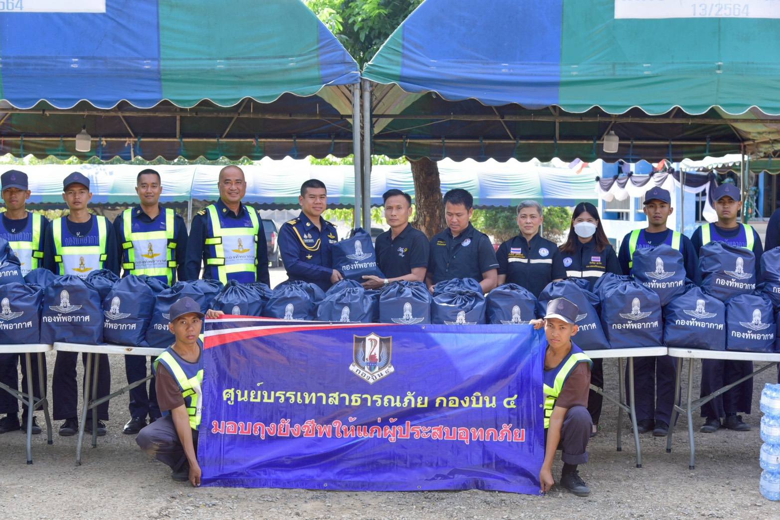 นาวาอากาศเอก วรพล ดิษฐ์แก้ว ผู้บังคับการกองบิน ๔ ในฐานะผู้อำนวยการศูนย์บรรเทาสาธารณภัยกองบิน ๔ มอบหมายให้ นาวาอากาศโท คณิสสรณ์ บุญญานุรักษ์ หัวหน้าแผนกกิจการพลเรือน กองบังคับการกองบิน ๔ นำกำลังพล พร้อมยานพาหนะ ลงพื้นที่มอบถุงยังชีพและน้ำดื่มให้กับประชาชนผู้ประสบเหตุอุทกภัย โดยได้พูดคุยสอบถามความเป็นอยู่ เพื่อสร้างขวัญและกำลังใจให้ประชาชน เมื่อวันที่ ๙ ธันวาคม ๒๕๖๘