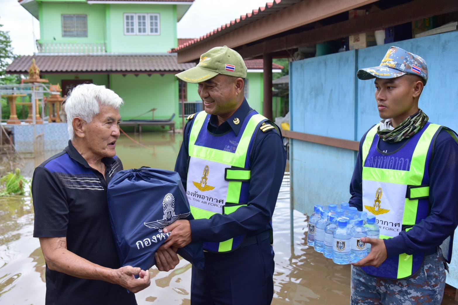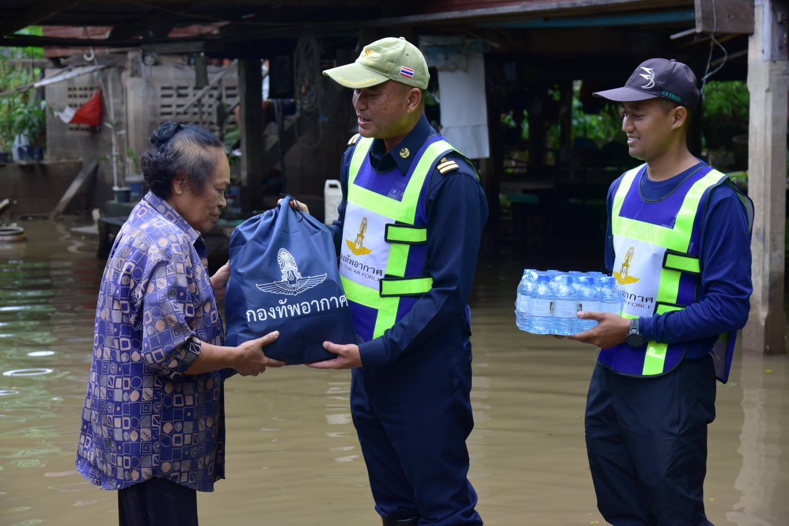 นาวาอากาศเอก วรพล ดิษฐ์แก้ว ผู้บังคับการกองบิน ๔ ในฐานะ ผู้อำนวยการศูนย์บรรเทาสาธารณภัยกองบิน ๔ มอบหมายให้ ศูนย์บรรเทาสาธารณภัยกองบิน ๔ นำถุงยังชีพพร้อมกับน้ำดื่ม มอบให้กับประชาชนผู้ประสบอุทกภัย และช่วยฟื้นฟูสถานที่สำคัญของชุมชน ในพื้นที่ตำบลบางหลวง อำเภอสรรพยา จังหวัดชัยนาท เมื่อวันที่ ๑๘ พฤศจิกายน ๒๕๖๘
