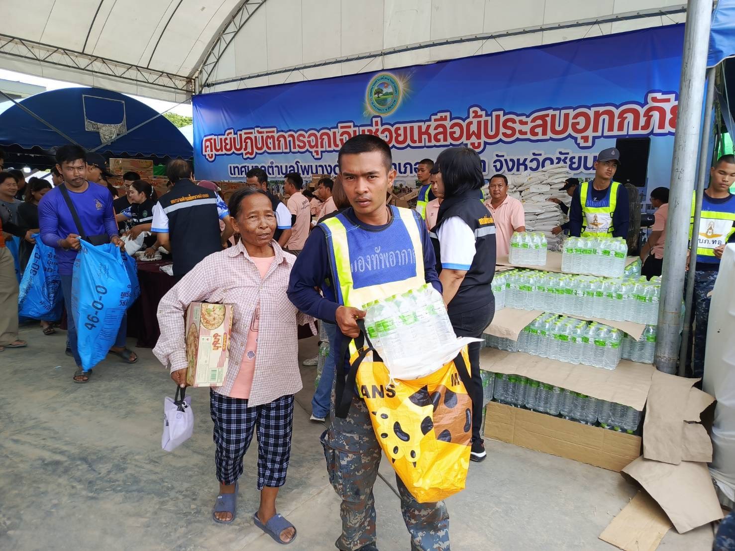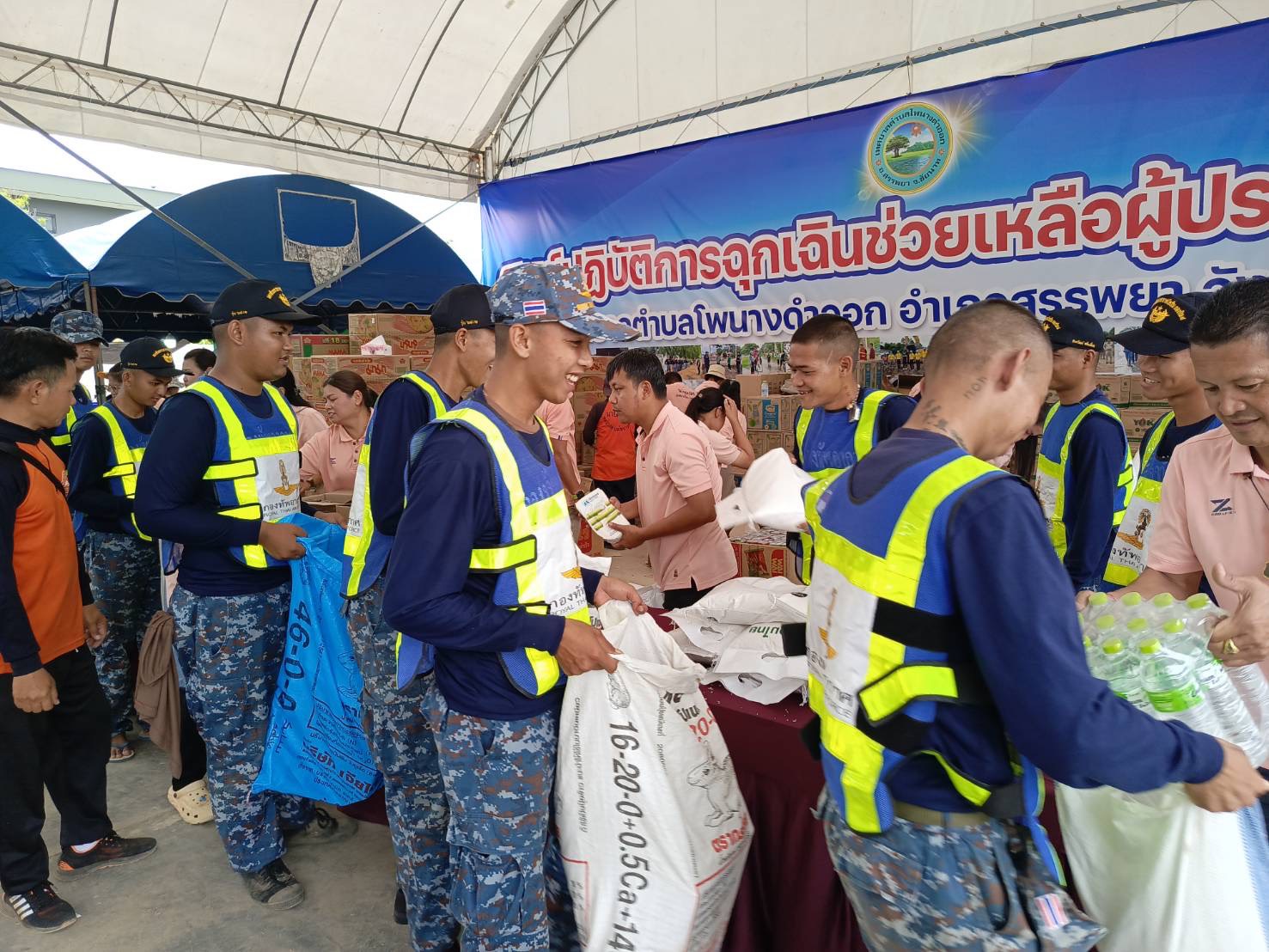 นาวาอากาศเอก วรพล ดิษฐ์แก้ว ผู้บังคับการกองบิน ๔ ในฐานะ ผู้อำนวยการศูนย์บรรเทาสาธารณภัยกองบิน ๔ มอบหมายให้ ศูนย์บรรเทาสาธารณภัยกองบิน ๔ นำกำลังพล พร้อมยานพาหนะ สนับสนุนเทศบาลตำบลโพนางดำออก ในการมอบถุงยังชีพให้กับประชาชนที่ได้รับความเดือดร้อนจากเหตุอุทกภัย ณ ศูนย์ปฏิบัติการฉุกเฉินช่วยเหลือผู้ประสบภัย เทศบาลตำบลโพนางดำออก อำเภอสรรพยา จังหวัดชัยนาท เมื่อวันที่ ๙ ตุลาคม ๒๕๖๘