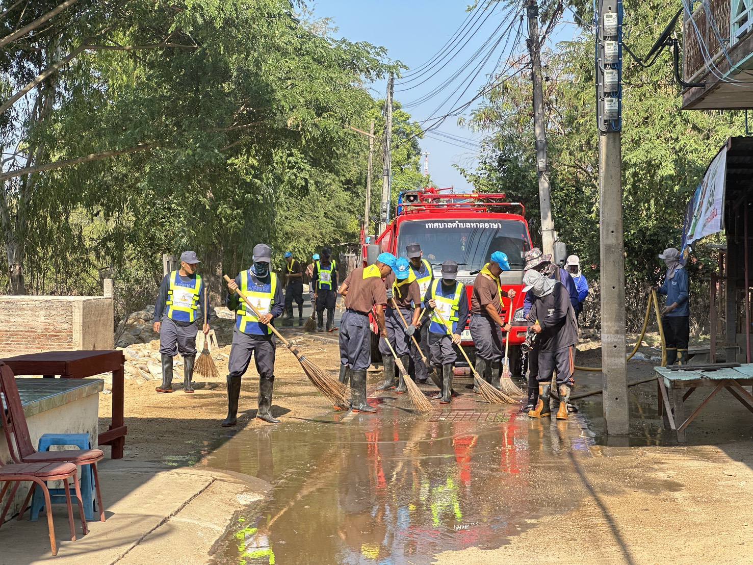 นาวาอากาศเอก วรพล ดิษฐ์แก้ว ผู้บังคับการกองบิน ๔ ในฐานะ ผู้อำนวยการศูนย์บรรเทาสาธารณภัยกองบิน ๔ มอบหมายให้ ศูนย์บรรเทาสาธารณภัยกองบิน ๔ และจิตอาสาพระราชทาน ร่วมกับเทศบาลตำบลหาดอาษา พร้อมกับประชาชนในพื้นที่ ทำกิจกรรมฟื้นฟูทำความสะอาดบ้านเรือนประชาชน พื้นที่สาธารณะ รวมถึงสถานที่สำคัญต่าง ๆ ในชุมชนที่ถูกน้ำท่วมขัง ให้กลับคืนสู่สภาพปกติ สะอาดและปลอดภัยต่อชีวิตความเป็นอยู่ของประชาชนโดยเร็วที่สุด เมื่อวันที่ ๘ ธันวาคม ๒๕๖๘